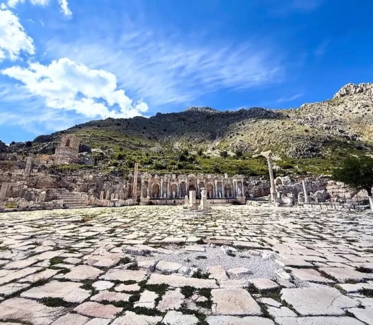 Kentin en belirgin yapısı, suları günümüzde de çağlayan Antoninler Çeşmesi’dir. Kalıntılar arasında kent meydanına açılan iki anıtsal kemer, agoranın dört köşesinde yükselen onursal sütunlar, belediye binası, kent konseyi binası, kilise ve dans eden kızlar kabartmaları ile tanınan heroon dikkat çekicidir. Kentin antik kütüphanesi ile tiyatrosunun kalıntıları da günümüze ulaşmıştır.