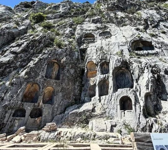 Sagalassos, Anadolu'nun en iyi korunagelmiş antik kentlerinden biridir. Kente girişte, saray büyüklüğünde bir kent konağının avlusu ve salonları yer alır. Kentin alt kısmına büyük Roma İmparatorluk Hamamı hâkimdir. Aşağı agora etrafında, agora çeşmesi ile Apollo Klarios Tapınağı’nın ve Hadrian Çeşmesi’nin kalıntıları yer alır. Yukarı agora etrafında pek çok anıt açığa çıkarılmış ve onarılarak ayağa kaldırılmıştır.