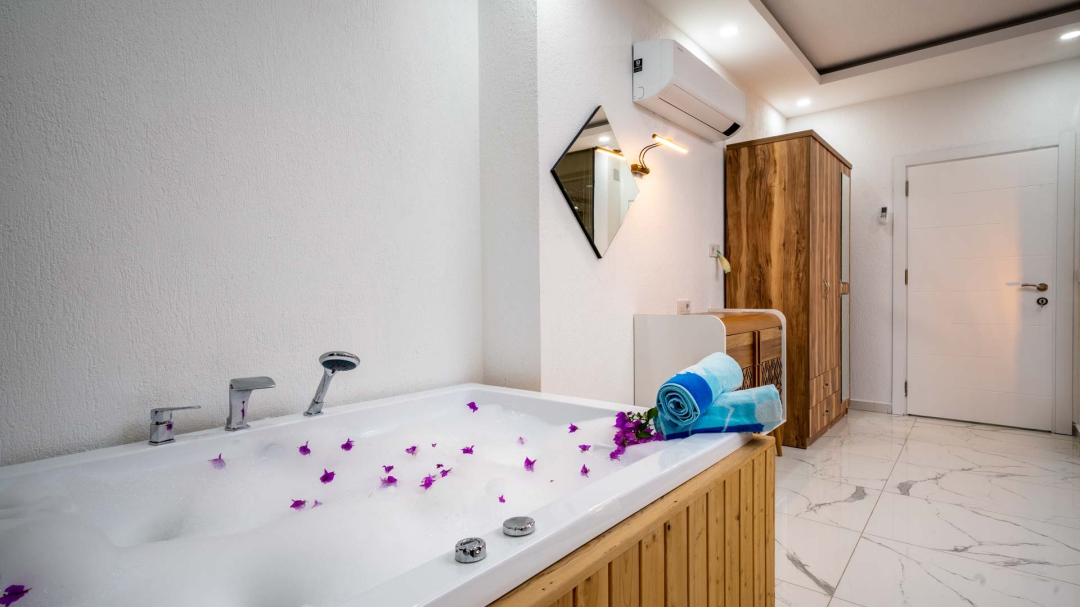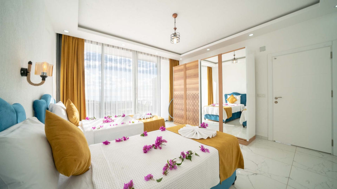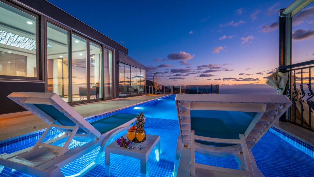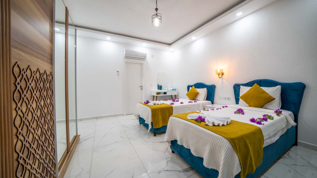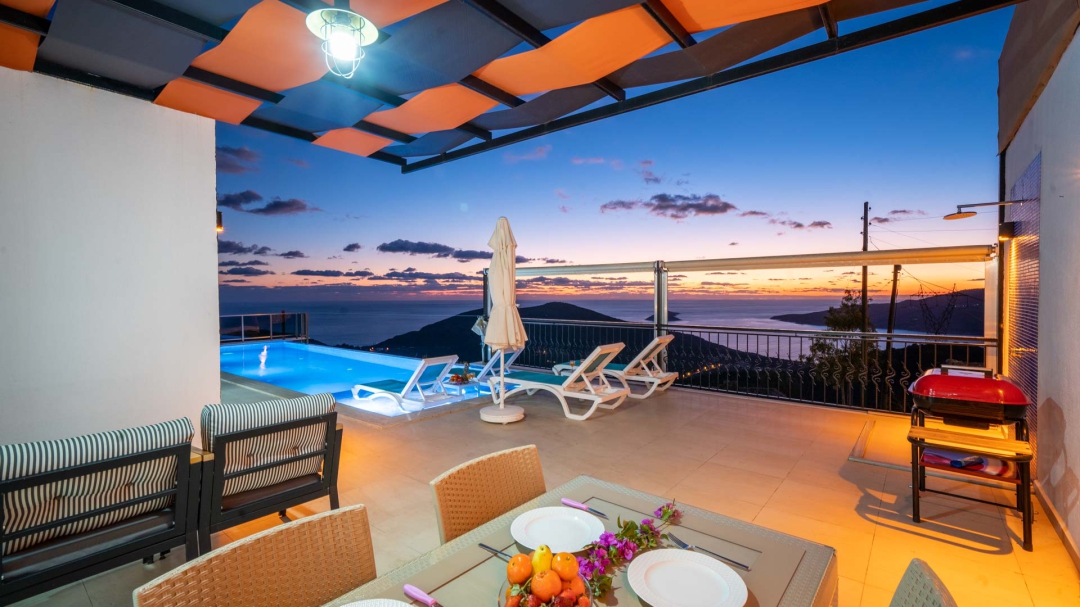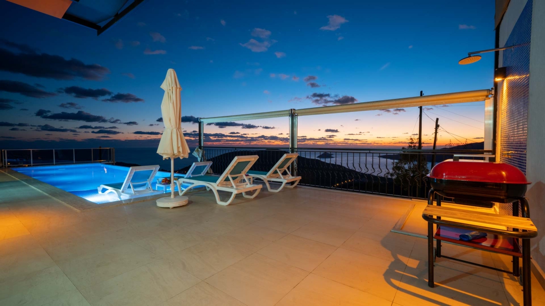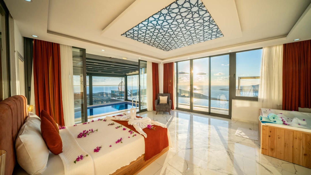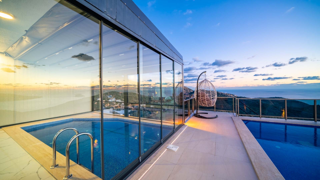Kördere bölgesinde yer alan daire, özel havuz ve kapalı havuza sahiptir. Misafirlerine muhteşem bir deniz manzarası sunabilecek lokasyondadır. Misafirlerinin güzel vakit geçirmesi adına masa tenisi, langırt gibi donanımlarla zenginleştirilmiştir.