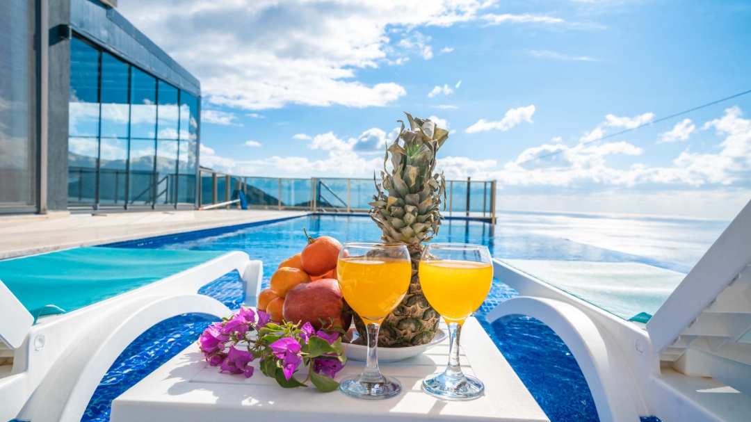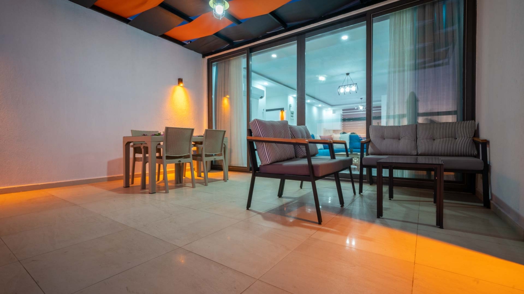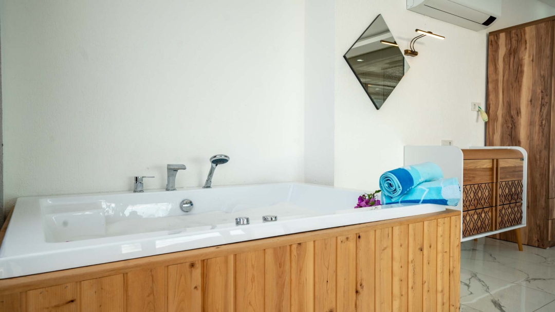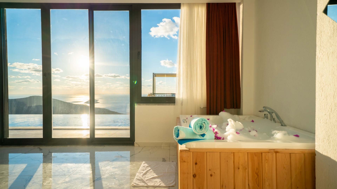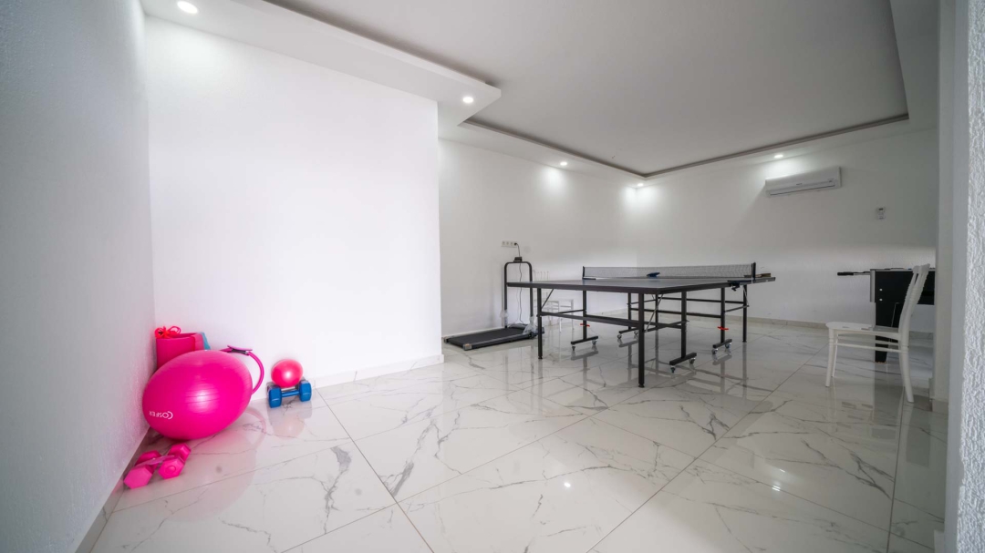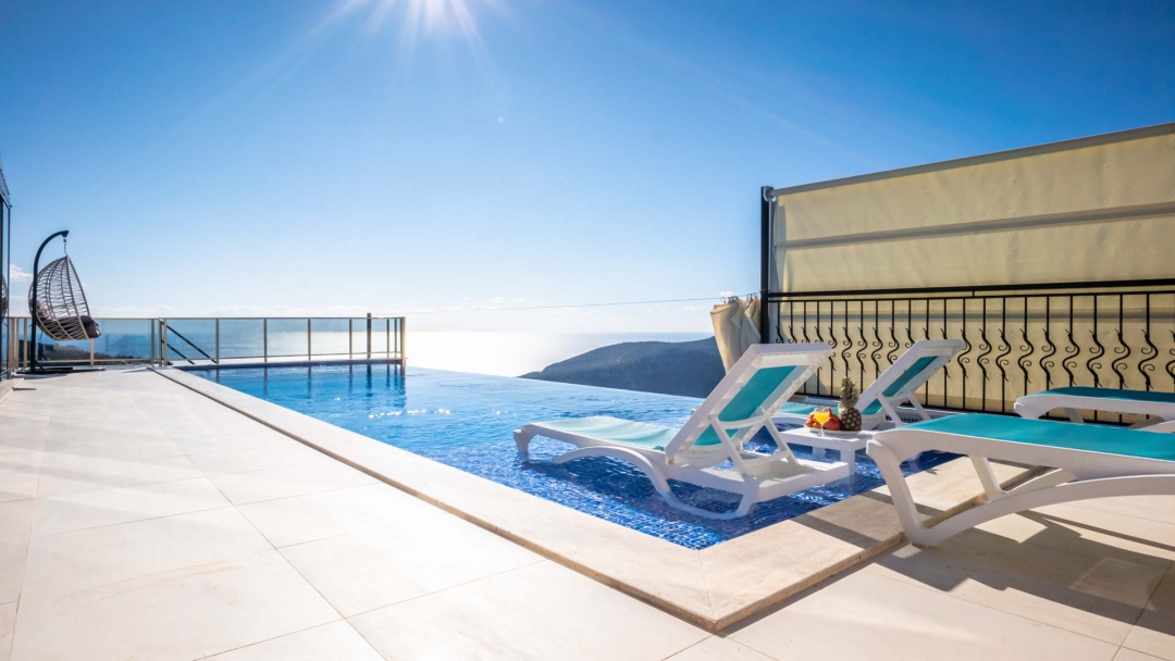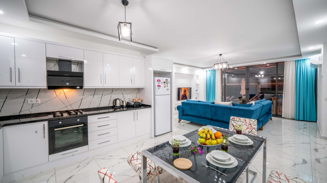 Kördere bölgesinde yer alan daire, özel havuz ve kapalı havuza sahiptir. Misafirlerine muhteşem bir deniz manzarası sunabilecek lokasyondadır. Misafirlerinin güzel vakit geçirmesi adına masa tenisi, langırt gibi donanımlarla zenginleştirilmiştir.