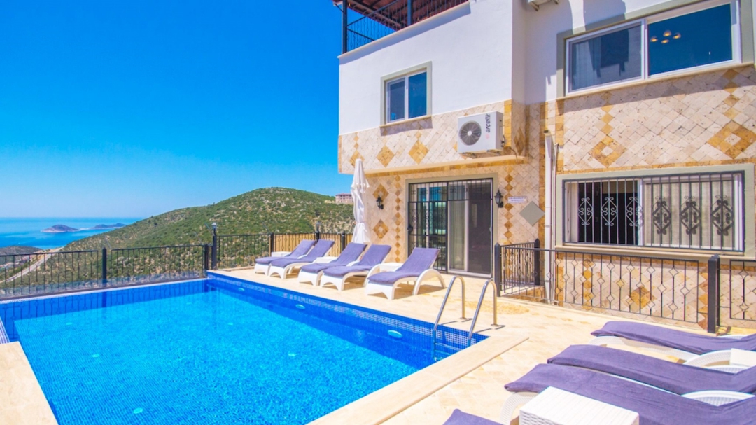 Akbel'de yer alan villanın havuz alanı korunaklıdır. Geniş aile ve arkadaş grupları için uygundur. 9 yatak odalı yapı 18 kişiye kadar konaklama kapasitesi sunar. Deniz manzarası vardır.