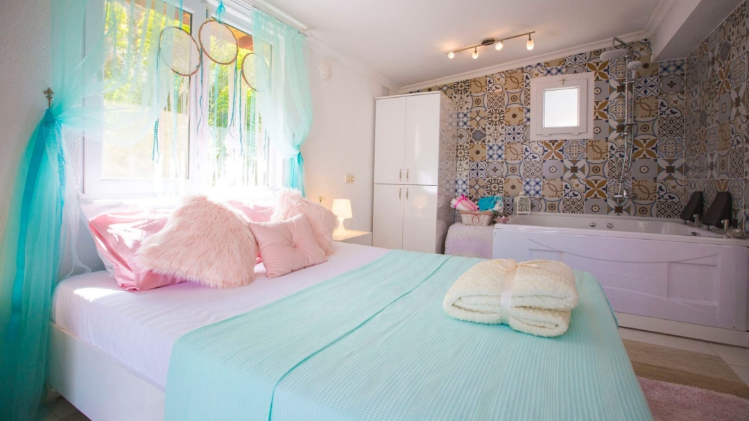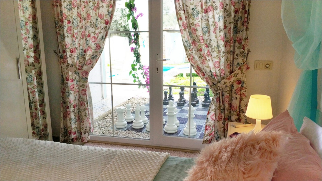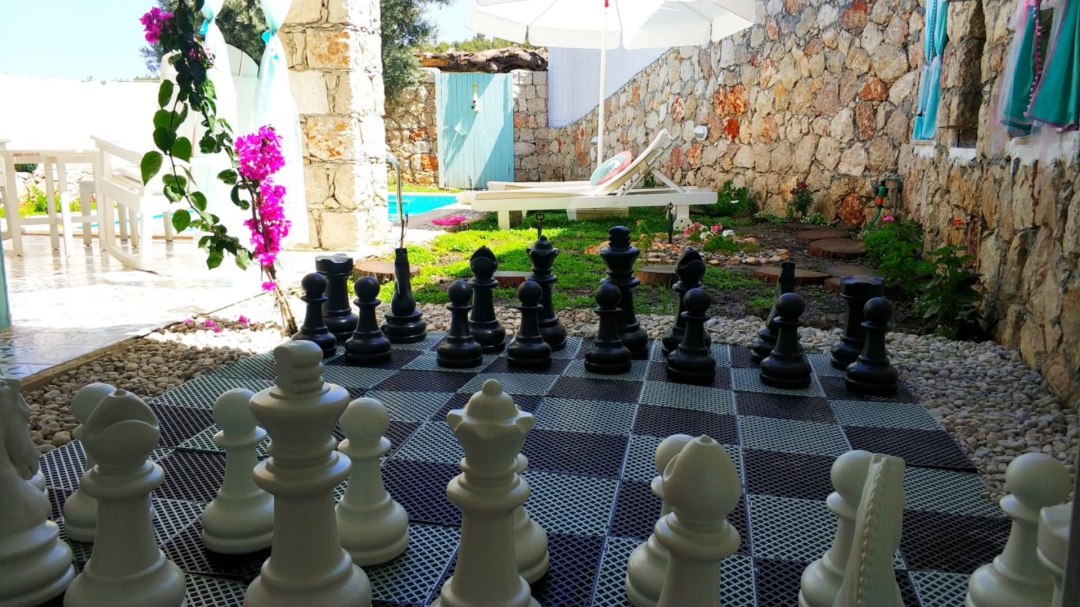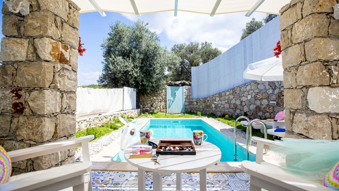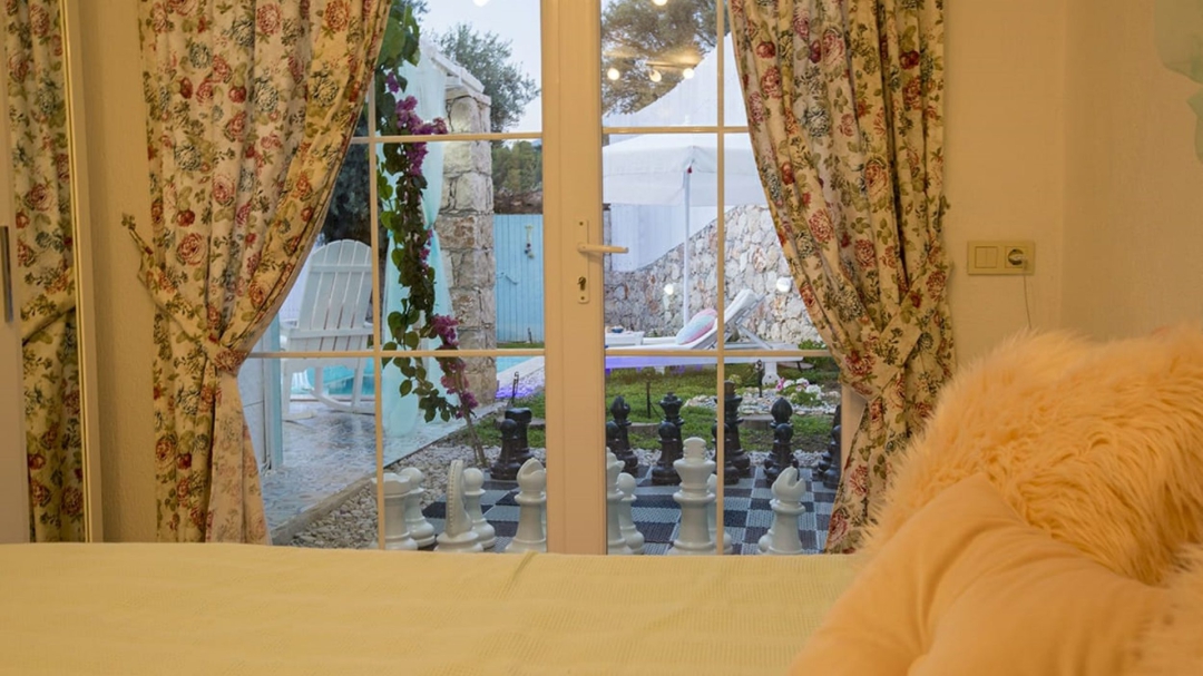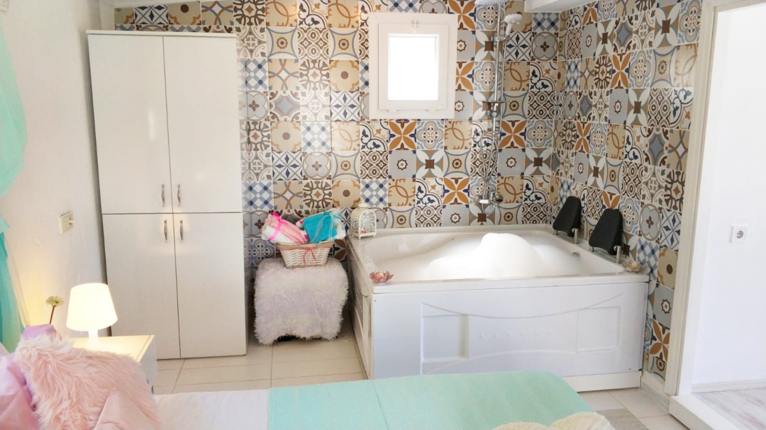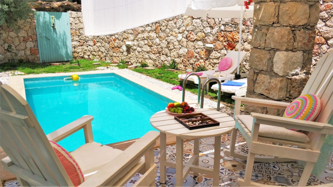 Balayı konseptindeki yapı, Akbel bölgesinde konumlanır. Havuz alanı korunaklıdır. Dış havuzu ısıtmalıdır. Kendine has çizgiler taşıyan yapı jakuzilidir.