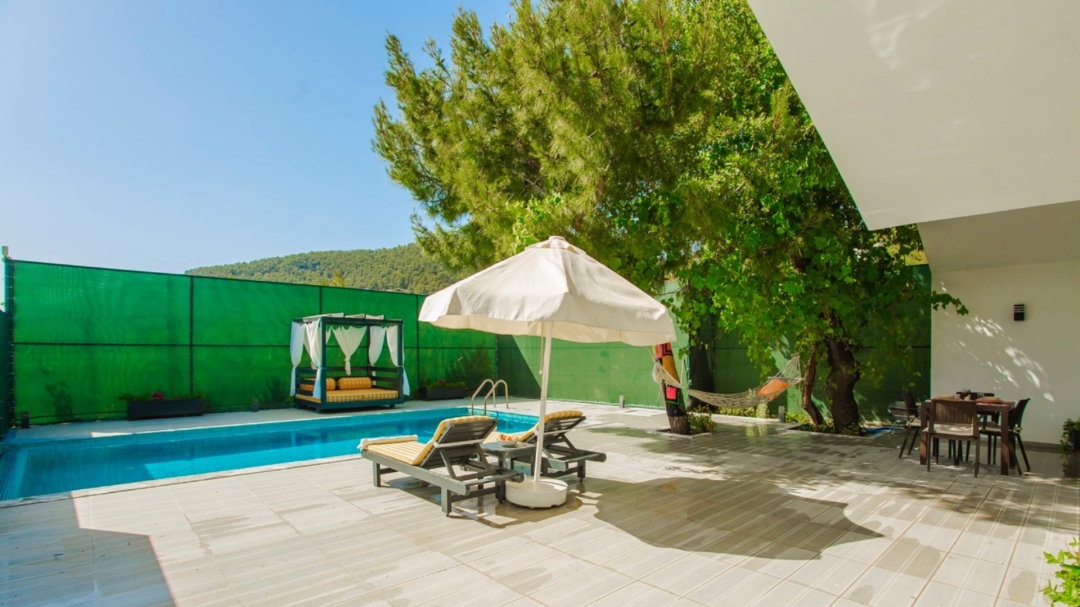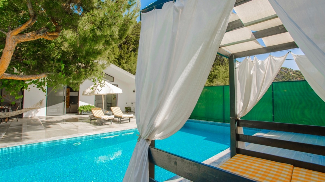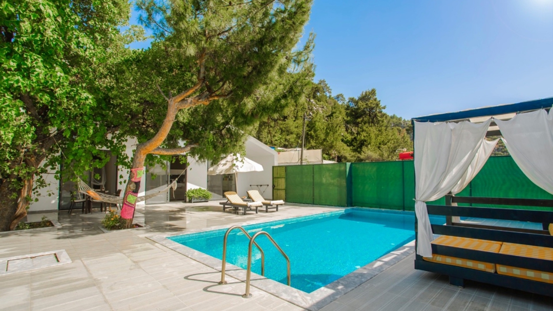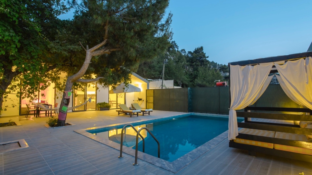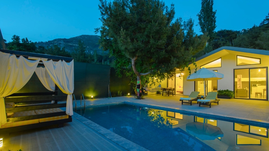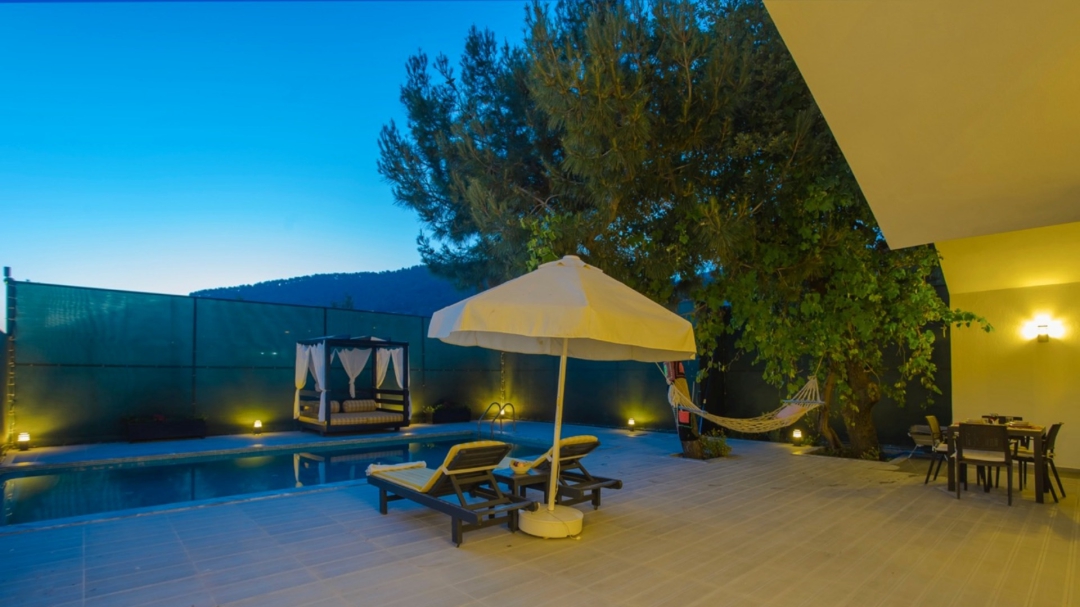 Kalkan'ın bol oksijenli bölgesinde, İslamlar Köyü'nde konumlanan villa, tek yatak odalı bir seçenektir. Havuz alanı yabancı gözlerden izoledir. Yüksek tavan detayı, iç mekana oldukça ferah bir hava katar. Balayı çiftleri için uygun konsepttedir. Yatak odasında jakuzi de mevcuttur. Kalkan merkeze yaklaşık 9-10 kilometre uzaklıkta konumlanır. İki kişi için yeterli donanıma sahiptir.