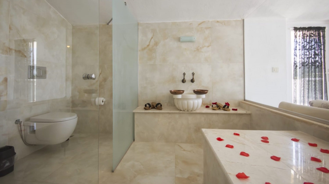 4 kişiye kadar konaklama kapasitesine sahip bu villada, misafirlerinin hoş vakit geçirebilmesi için türk hamamı, jakuzi, etkinlik alanı gibi donanımlar bulunur. Havuz alanı korunaklıdır. Balayı çiftleri ve çekirdek aileler için uygundur.
