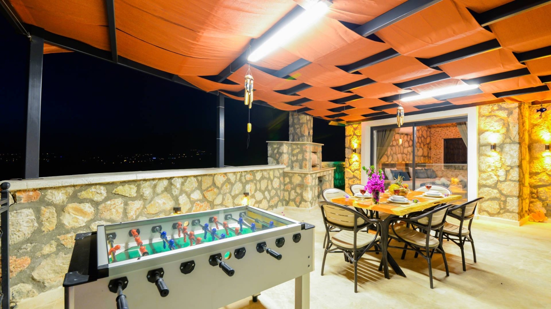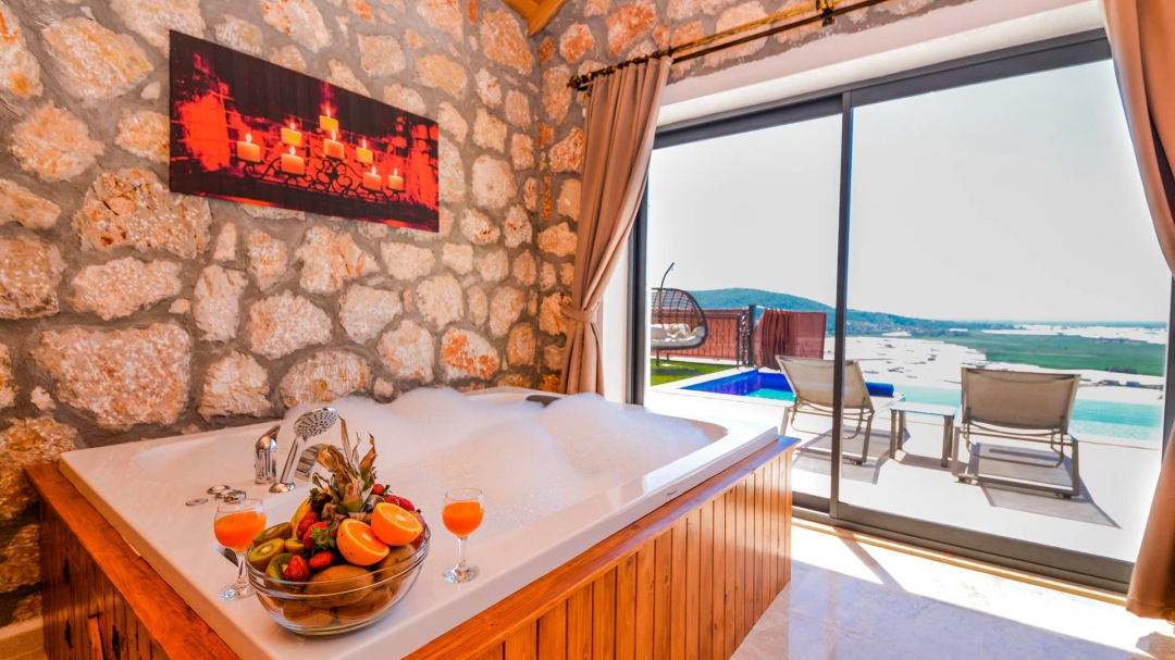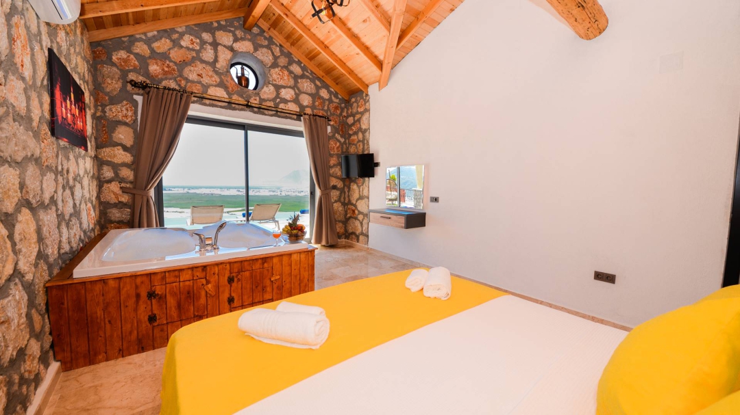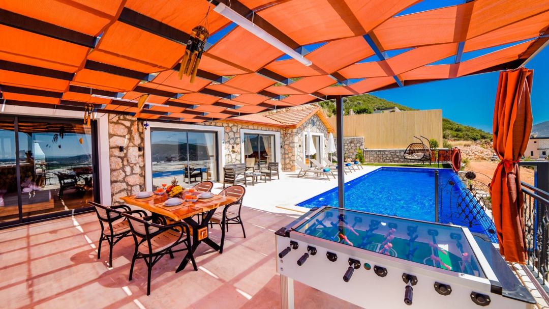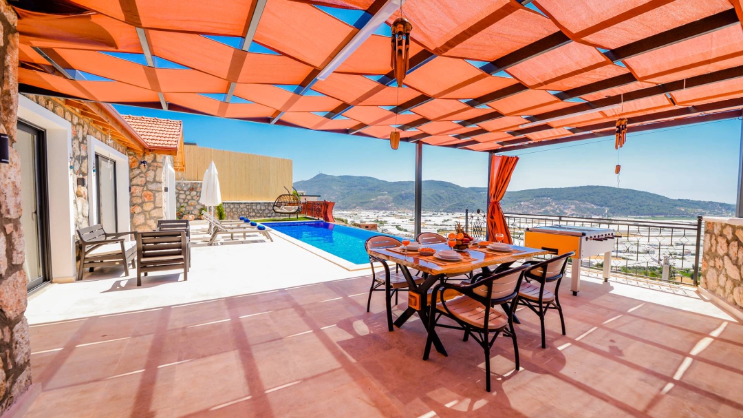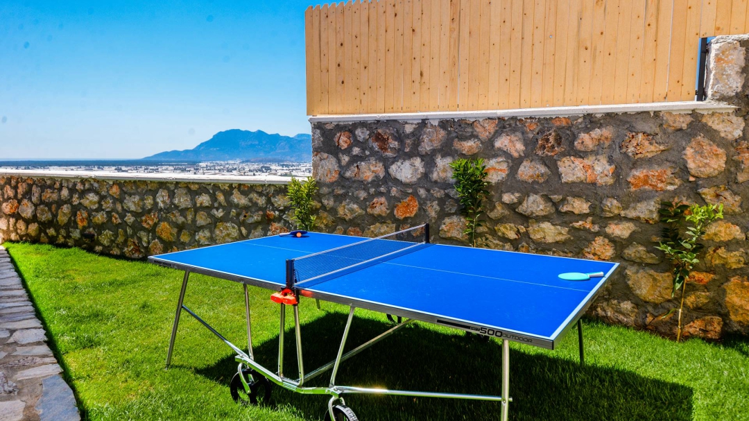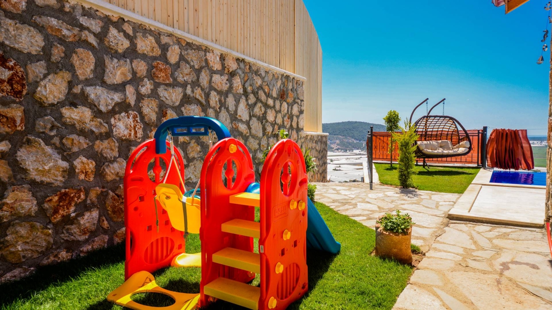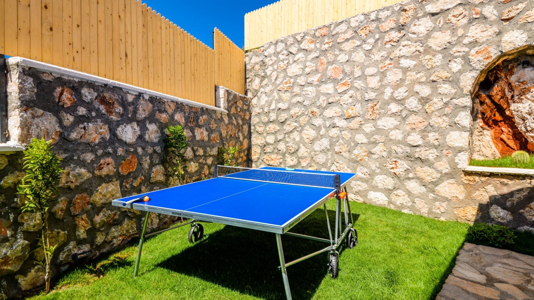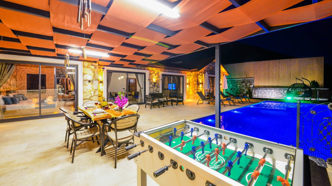 Havuz alanı korunaklı villa seçeneğinin havuz terasına, doğa manzarası eşlik eder. Masa tenisi, langırt gibi donanımlar eğlenceli vakit geçirebilmeniz adına villada bulunmaktadır. Oldukça kullanışlı ve ferah yapı 2 yatak odalıdır. Ana yatak odasında jakuzi vardır.