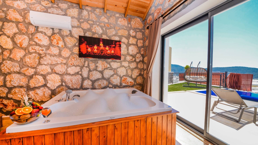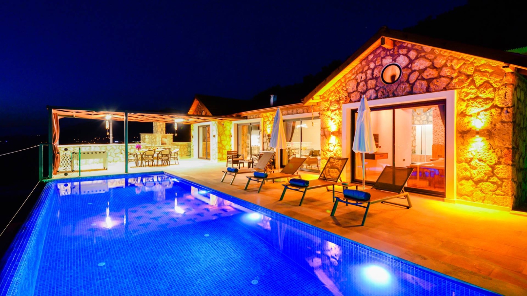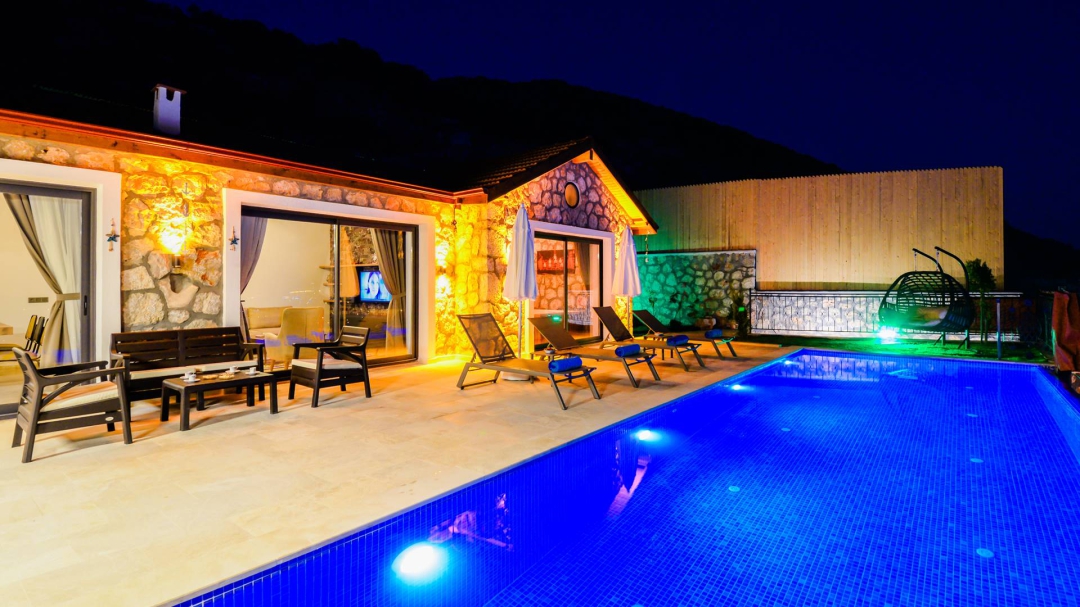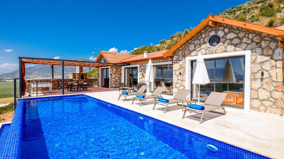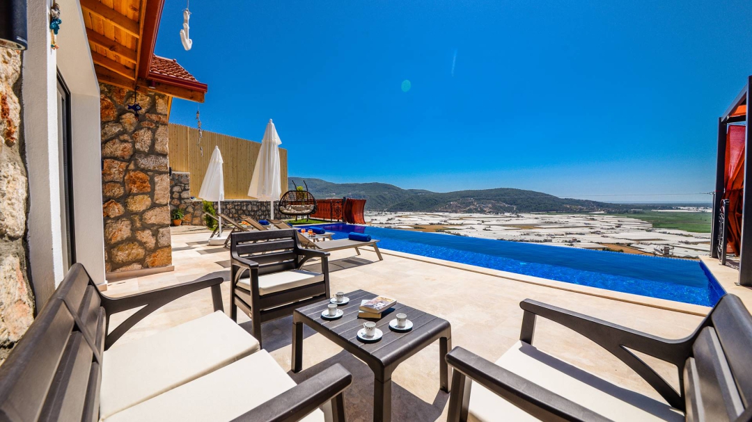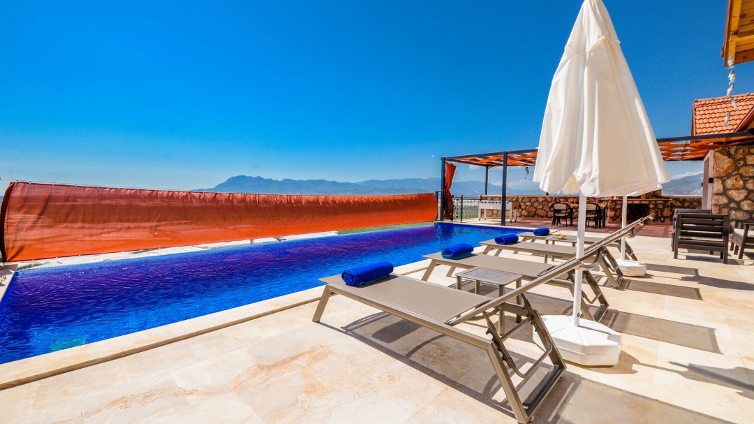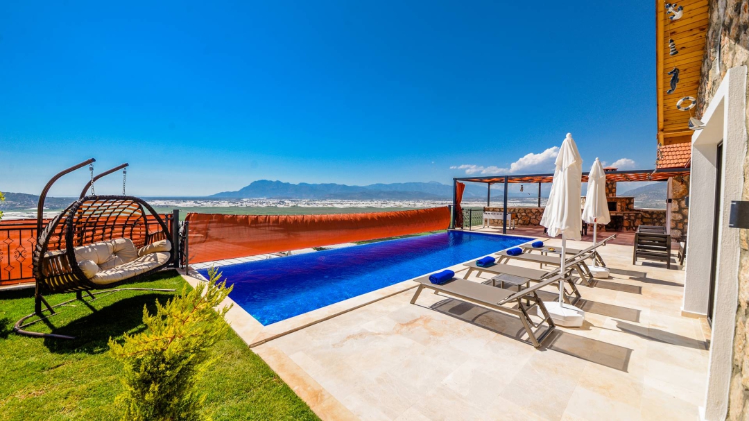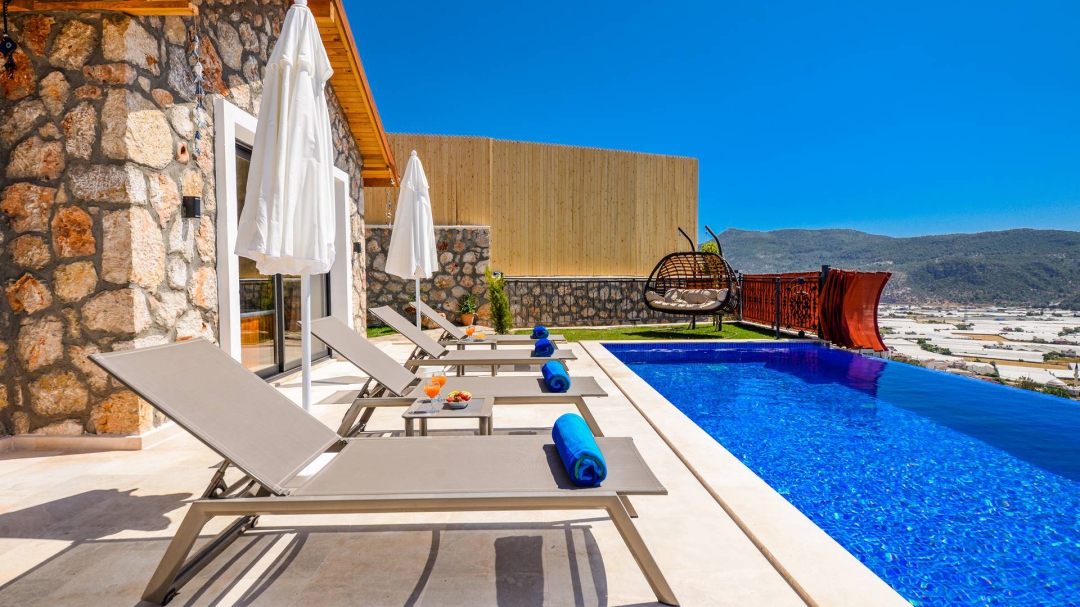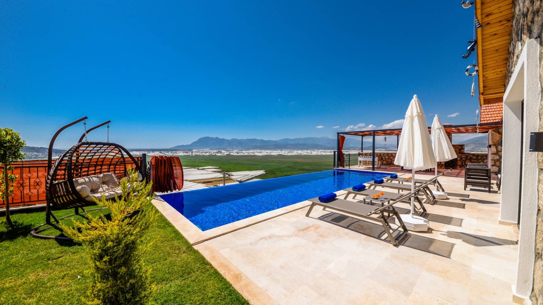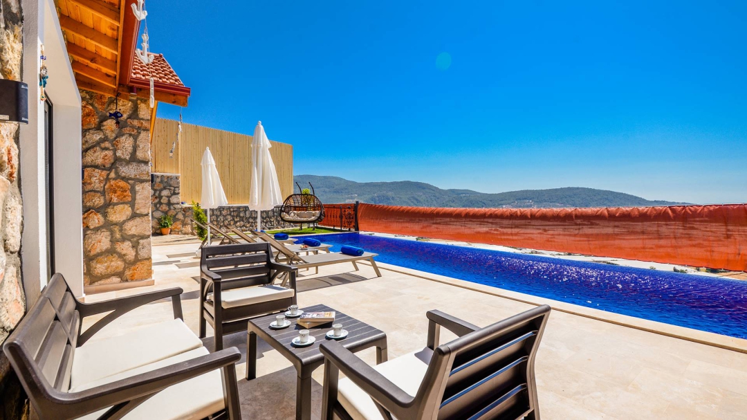 Havuz alanı korunaklı villa seçeneğinin havuz terasına, doğa manzarası eşlik eder. Masa tenisi, langırt gibi donanımlar eğlenceli vakit geçirebilmeniz adına villada bulunmaktadır. Oldukça kullanışlı ve ferah yapı 2 yatak odalıdır. Ana yatak odasında jakuzi vardır.