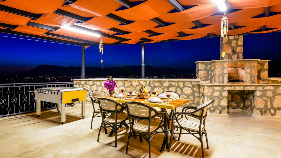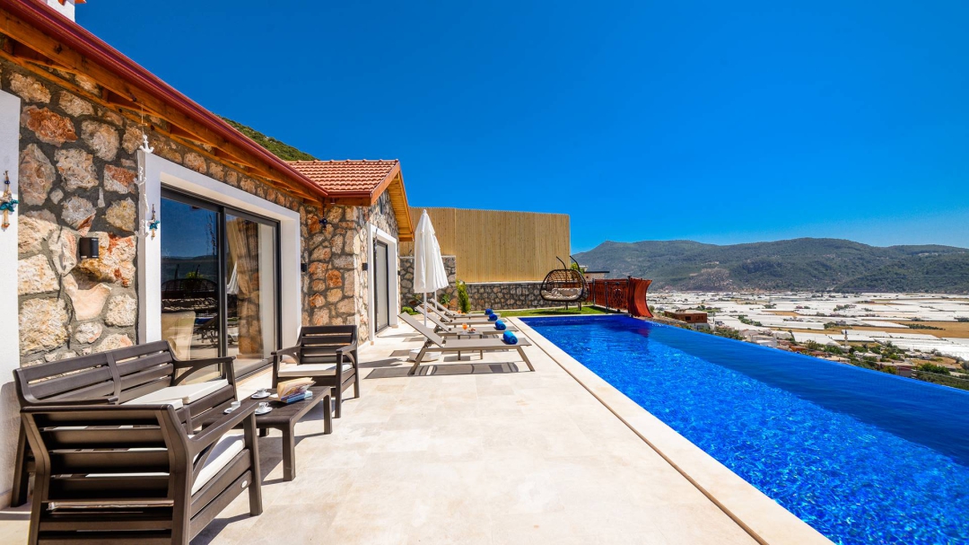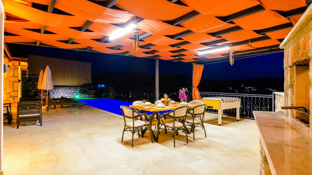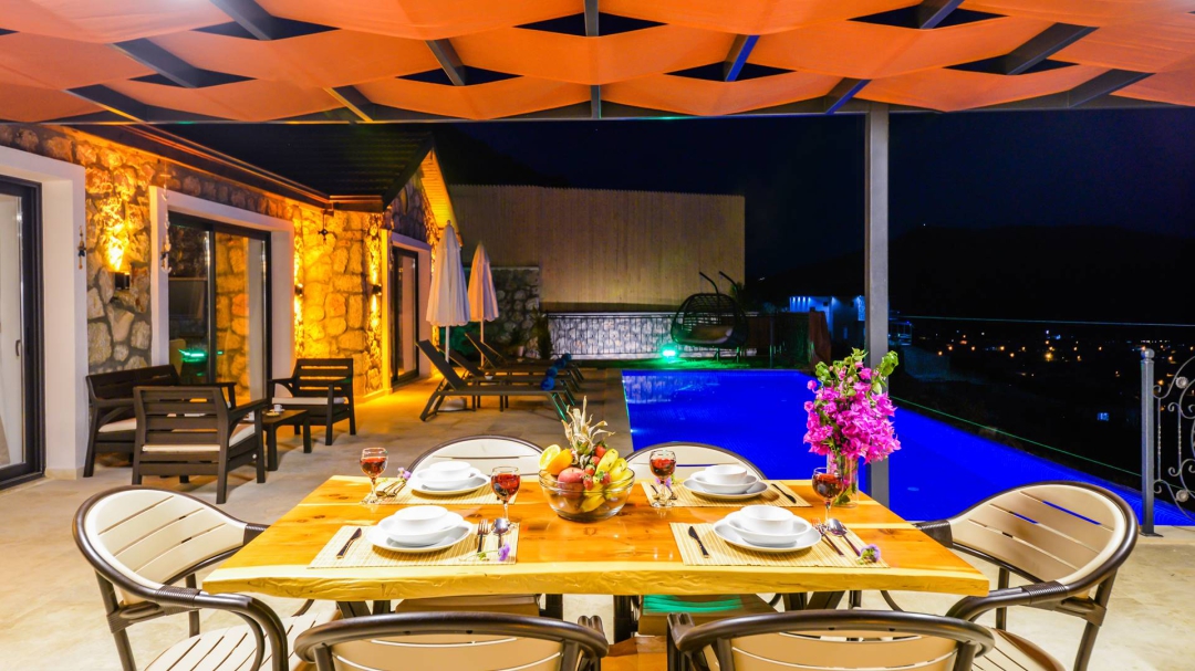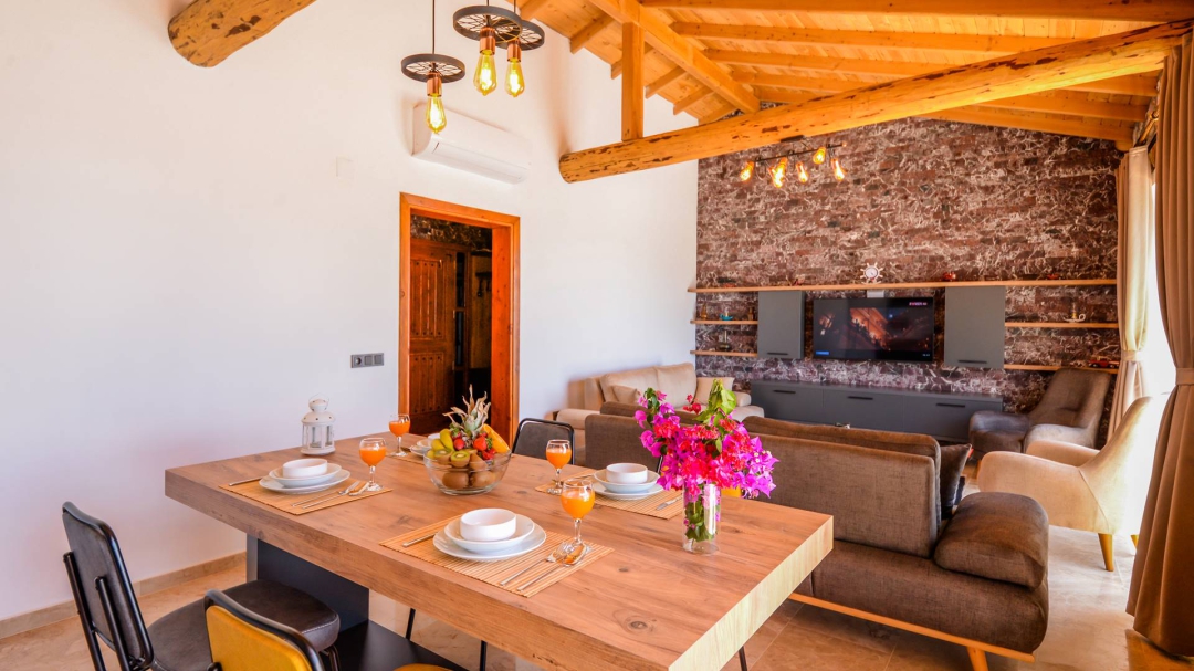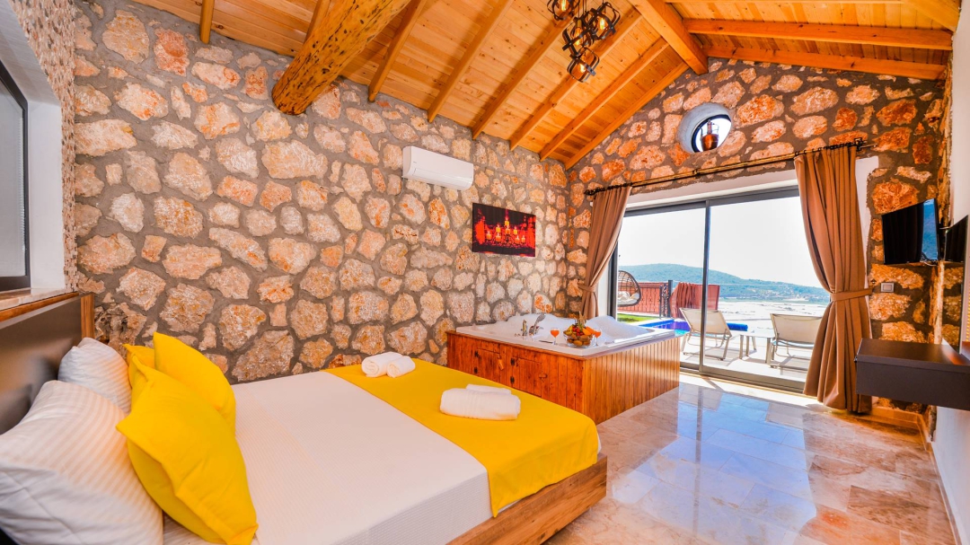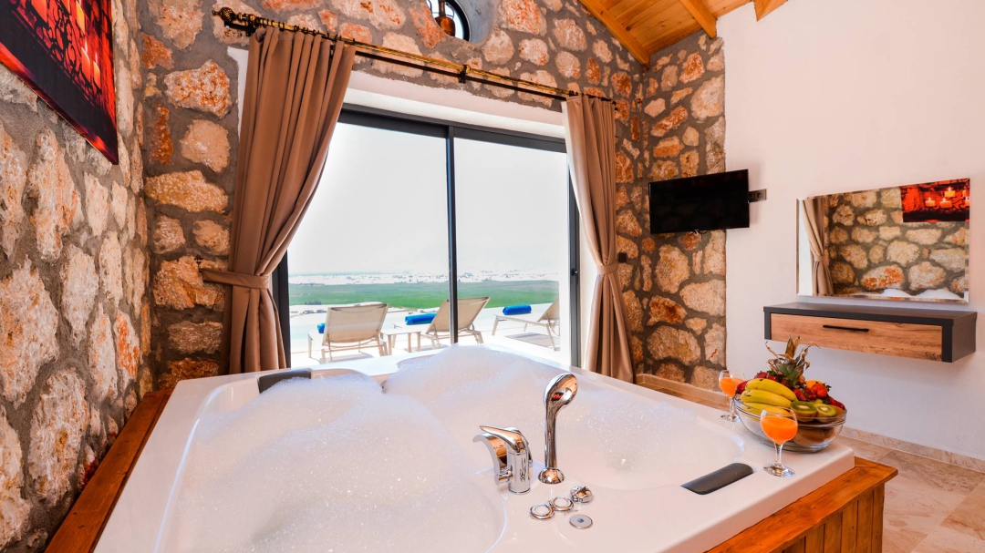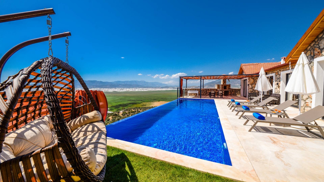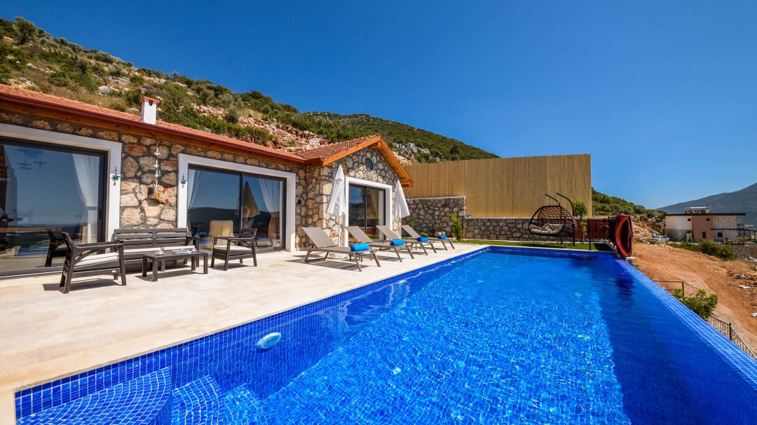 Havuz alanı korunaklı villa seçeneğinin havuz terasına, doğa manzarası eşlik eder. Masa tenisi, langırt gibi donanımlar eğlenceli vakit geçirebilmeniz adına villada bulunmaktadır. Oldukça kullanışlı ve ferah yapı 2 yatak odalıdır. Ana yatak odasında jakuzi vardır.