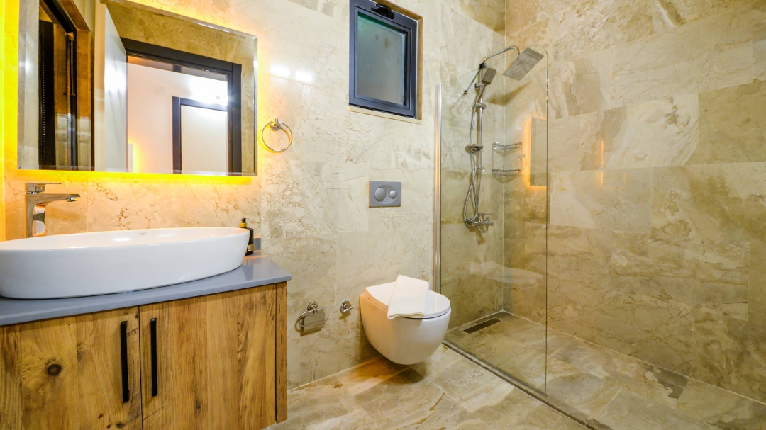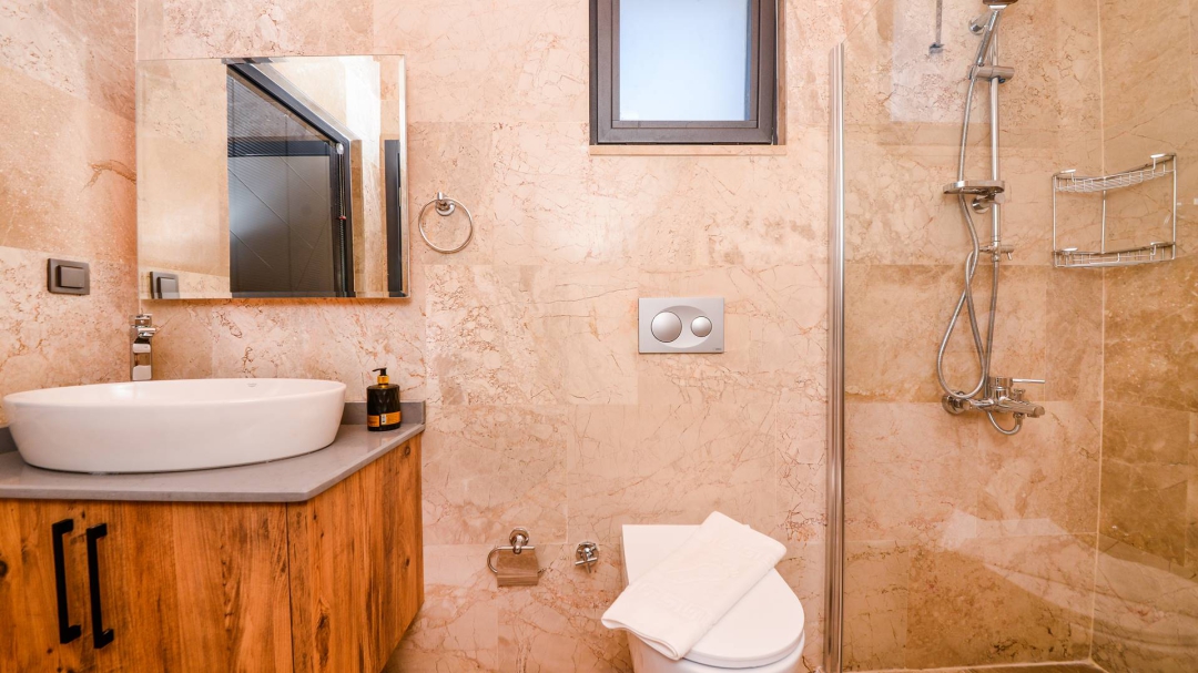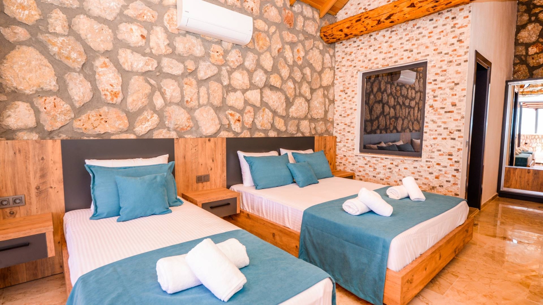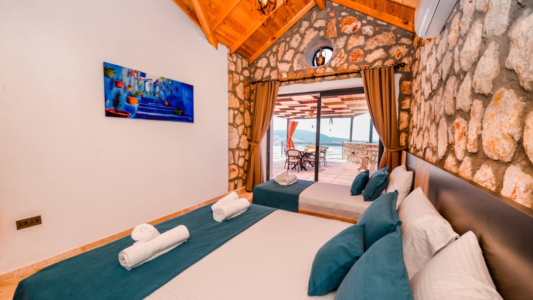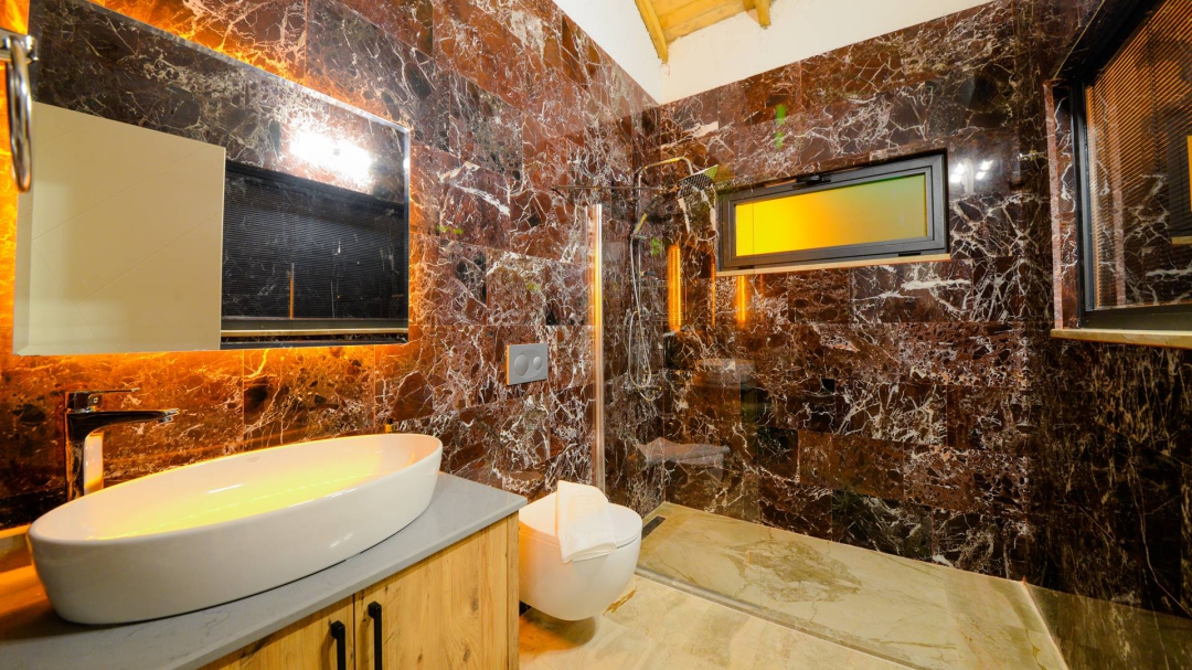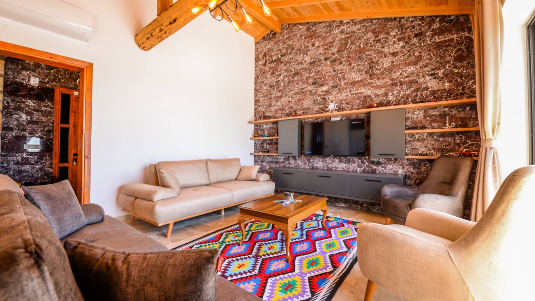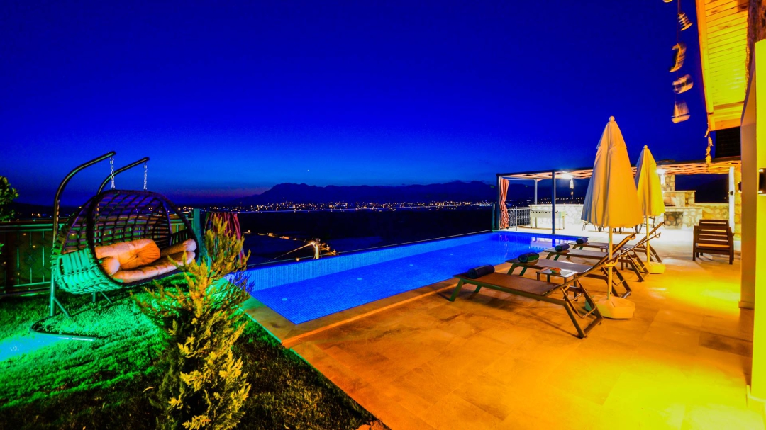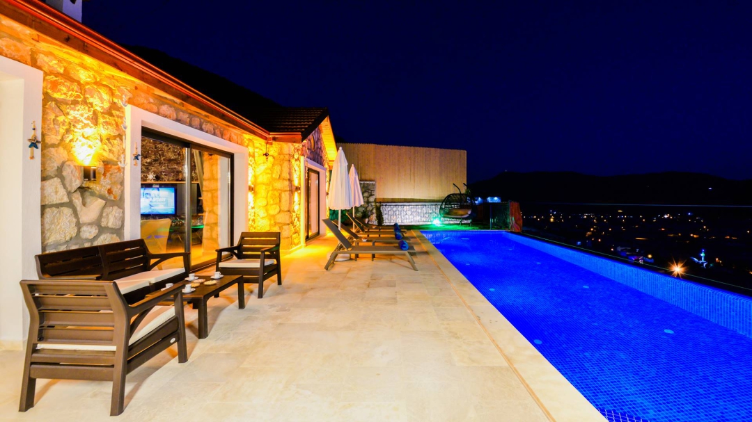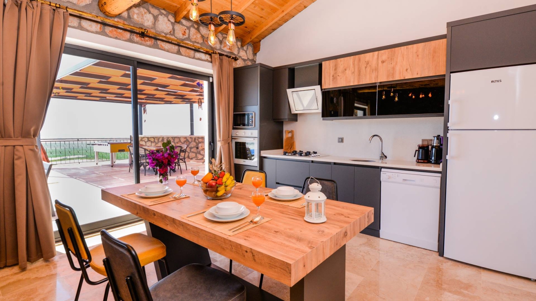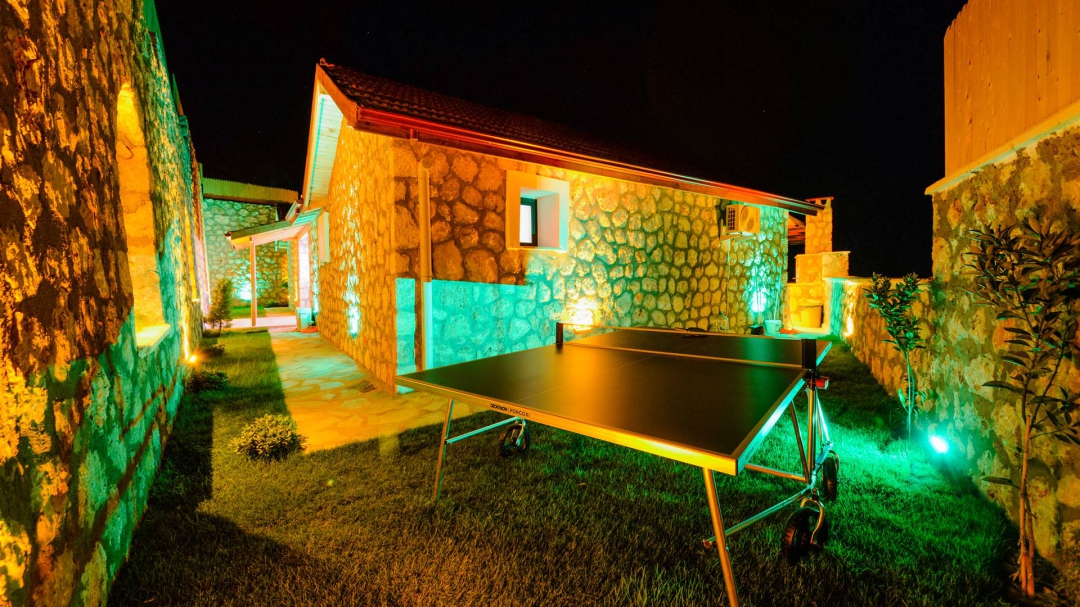 Havuz alanı korunaklı villa seçeneğinin havuz terasına, doğa manzarası eşlik eder. Masa tenisi, langırt gibi donanımlar eğlenceli vakit geçirebilmeniz adına villada bulunmaktadır. Oldukça kullanışlı ve ferah yapı 2 yatak odalıdır. Ana yatak odasında jakuzi vardır.