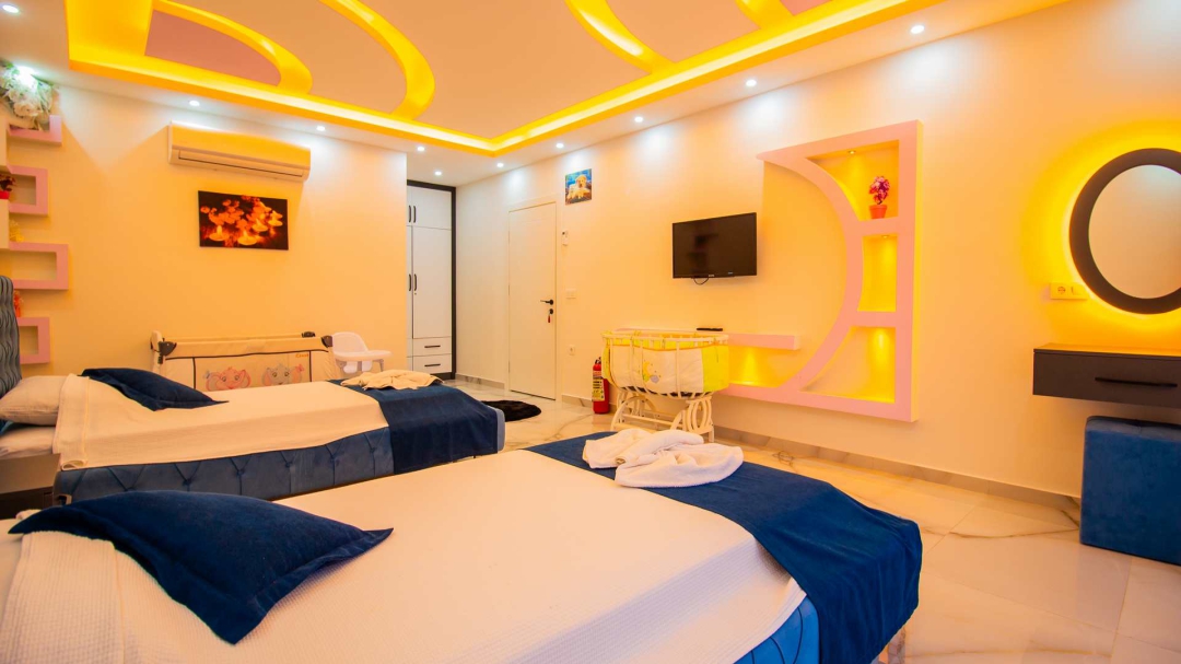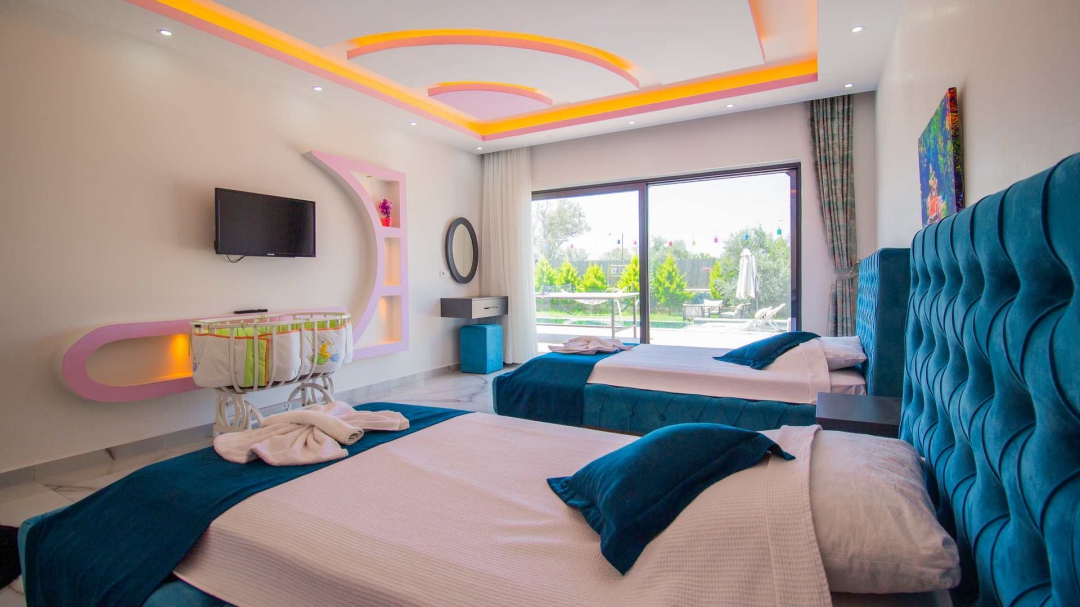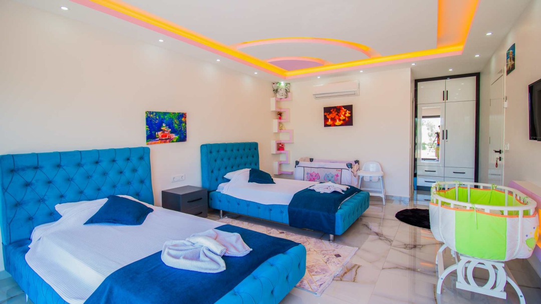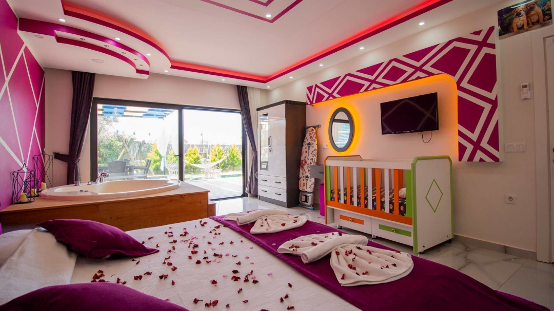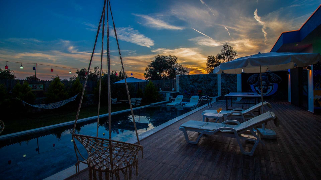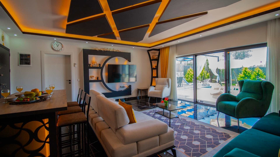 Kalkan Çayköy mevkiinde yer alan özel havuzu tam korunaklı villamızdır. Canlı renkler ile şık bir şekilde dizayn edilen villamızda misafirlerimizin konforu açısından her detay düşünülmüştür. Görsel bir şölen sunan geniş havuz terası, yemyeşil bahçesi ve eğlence imkanlarıyla birlikte villamızda, keyifli bir tatilin kapısı sizler için açılacaktır.Çayköy mevkiinde yer alan villamız Kalkan merkeze yaklaşık 15-20 dakika mesafededir. Doğa içerisinde konumu sayesinde şehir hayatından uzak sessiz, sakin bir tatil geçirmek isteyen misafirlerimiz için oldukça uygun bir seçenektir. Saklıkent Milli Parkına, yaygın adıyla da Saklıkent Kanyon'una araçla maksimum yarım saatlik mesafede yer almaktadır.Villamızdaki masa tenisi, mini kaydırak ve iki adet salıncak sayesinde eğlenceli anlar sizleri beklemektedir.