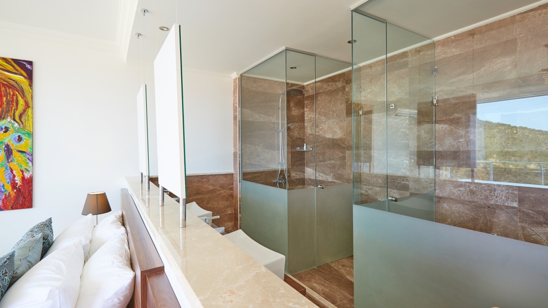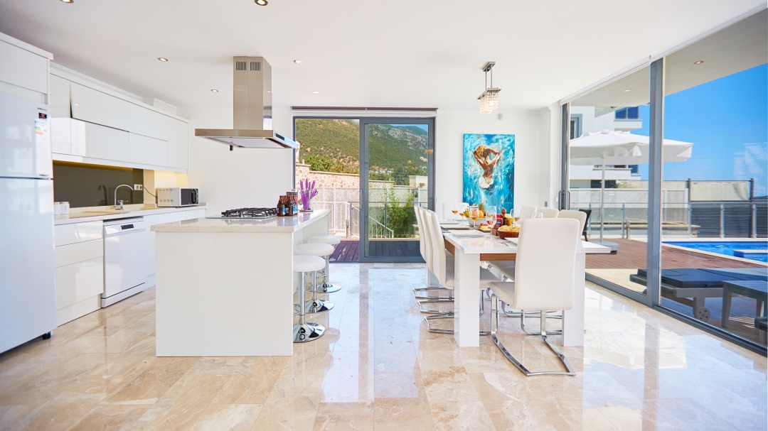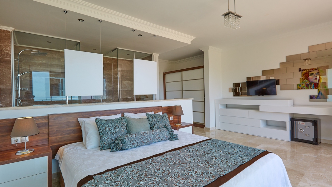 Kalabalık aile ve arakdaş guruplarıyla rahatlıkla kalabileceğiniz villamız 10 kişilik bir konaklama kapasitesine sahiptir. Merkeze yakın olan villa,Ortaalan da konumlanmaktadır. Villada, geniş bir havuz terası, tümü en suit 5 yatak odası vardır.