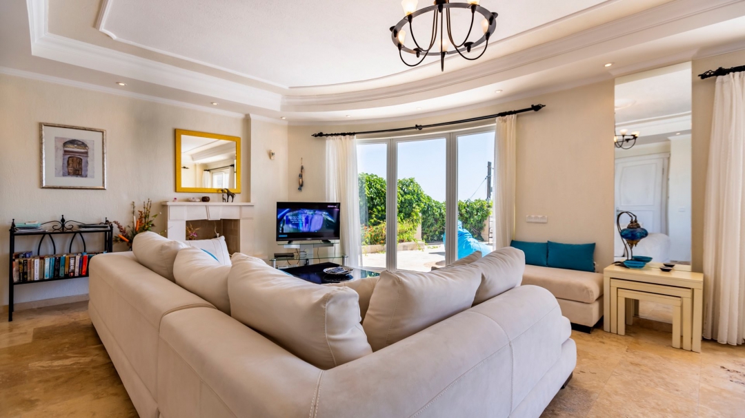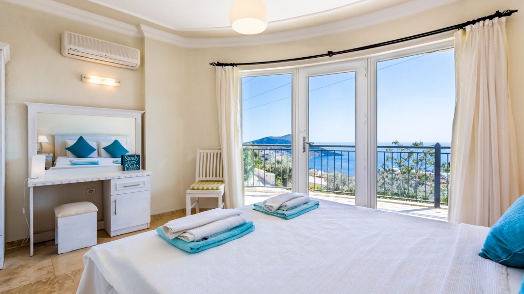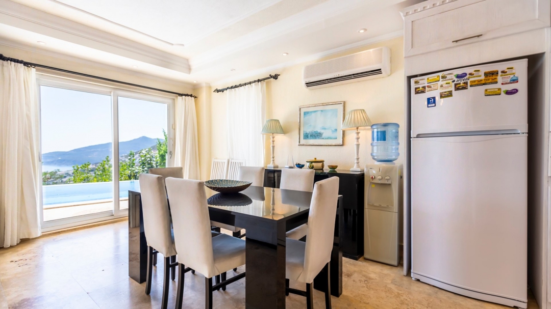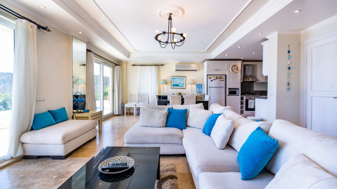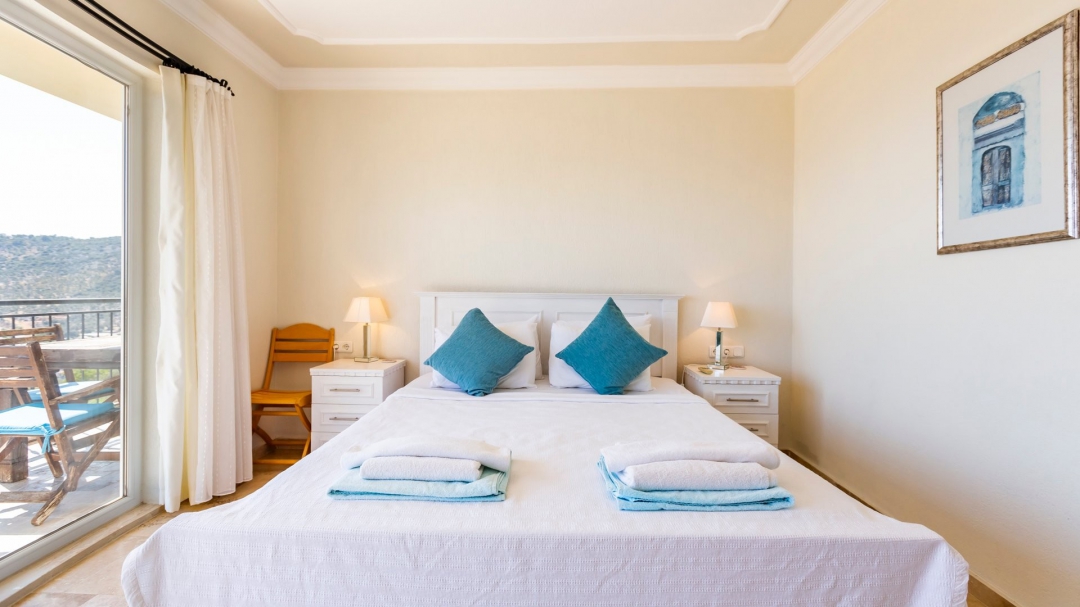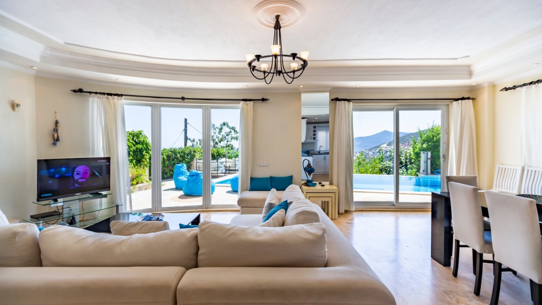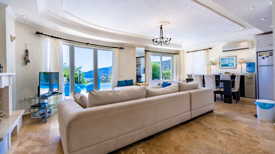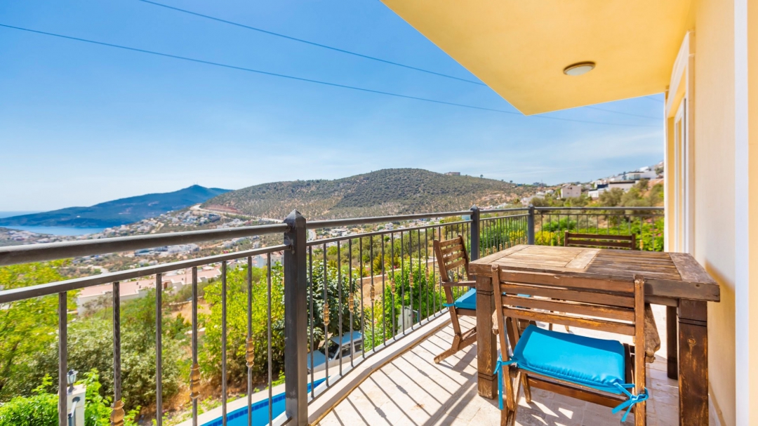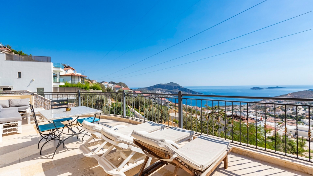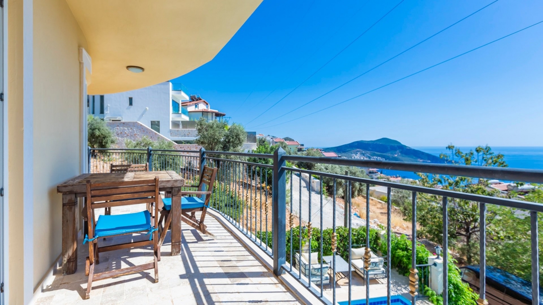 Altında tek araçlık kapalı otoparkı bulunan villa, Kalkan'ın güneye bakan Kızıltaş mevkiinde yer almaktadır. Uzun bir alana yayılmış, kullanımı kolay merdivenler sizi girişe yönlendirir. Misafirleri ilk karşılayan uzun dikdörtgen bir havuz alanıdır.