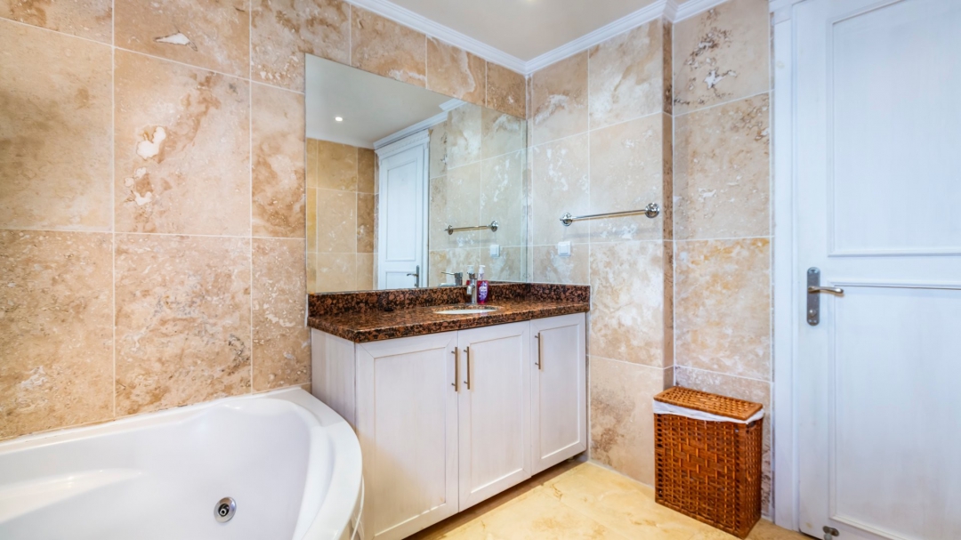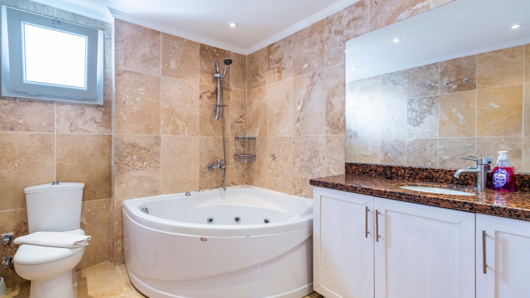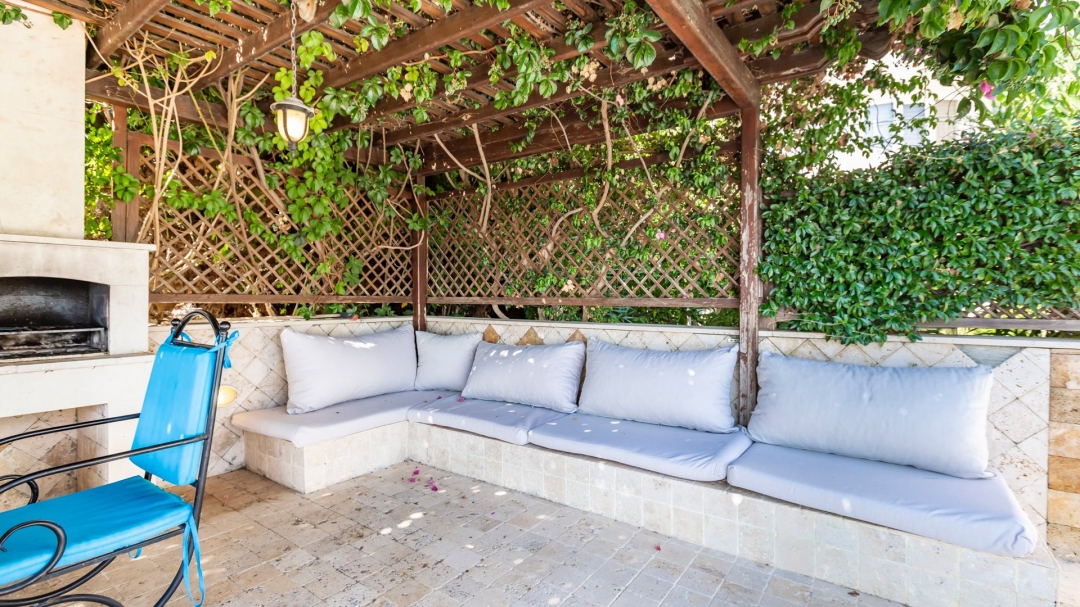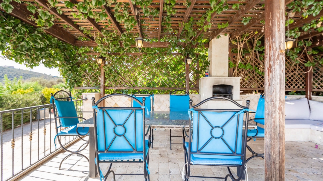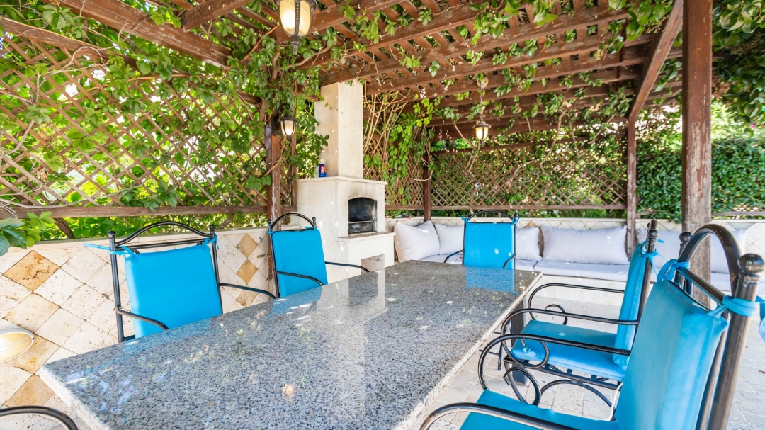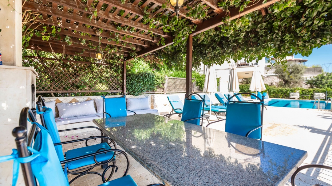 Deniz manzarası sunan bu alanda tatmin edici boyutlarda sonsuzluk havuzu, yeterli şezlong, şemsiye ve sehpa bulunmaktadır. Havuz kenarında küçük bir oturma grubu bulunur. Çardak altına yerleştirilmiş yemek masası, taş barbekü ve sabit dinlenme köşesi havuz alanını dolduran diğer unsurlardır.