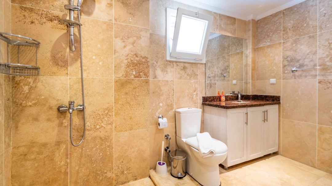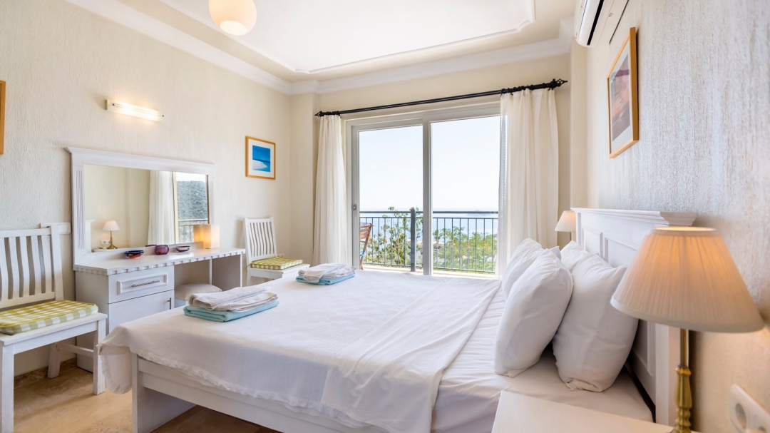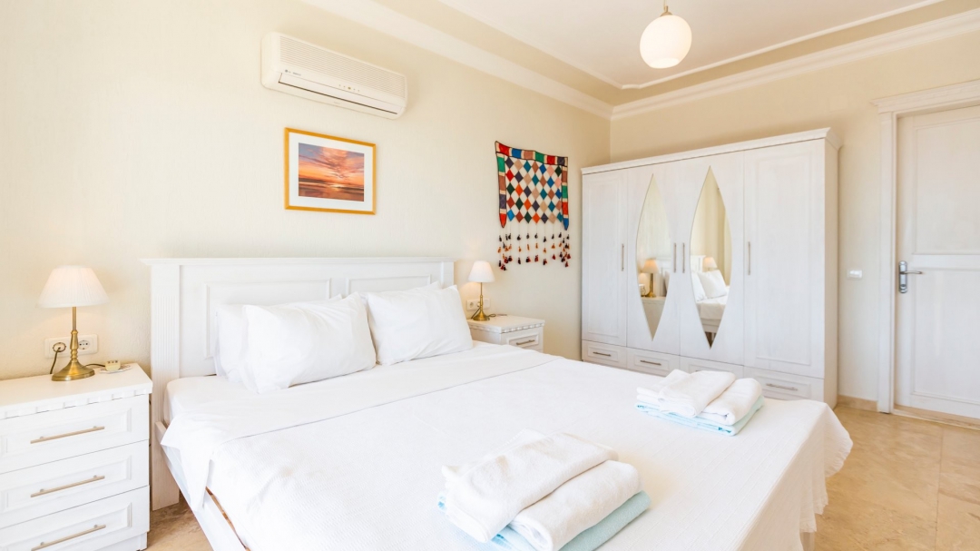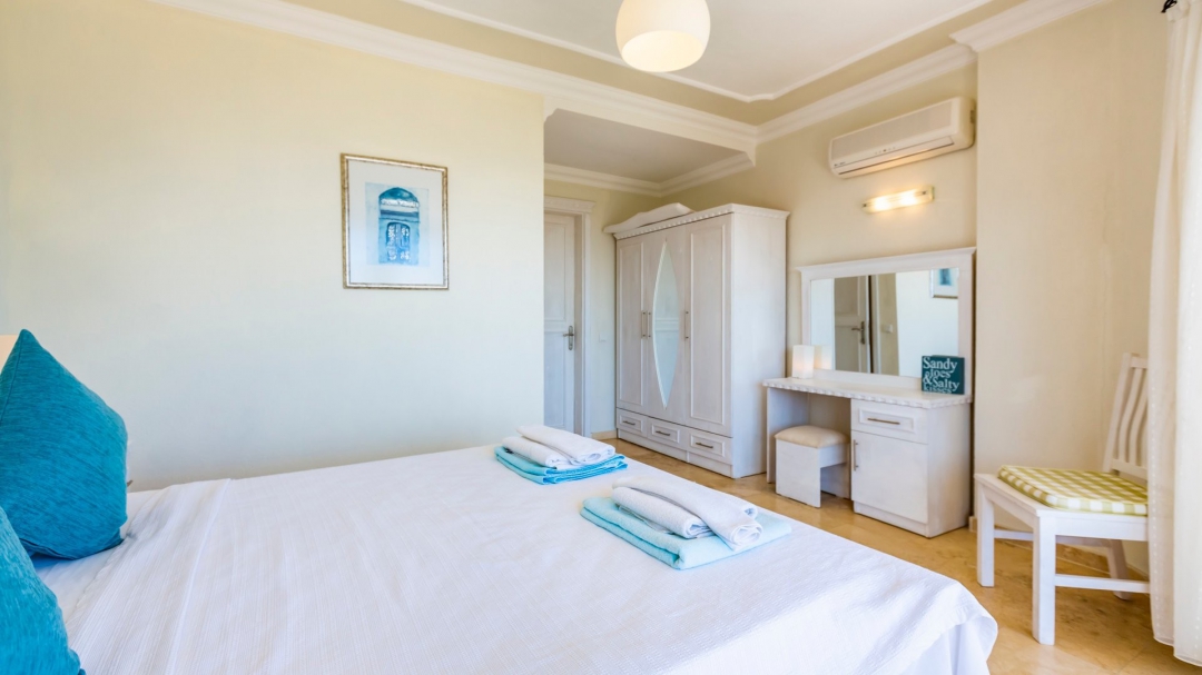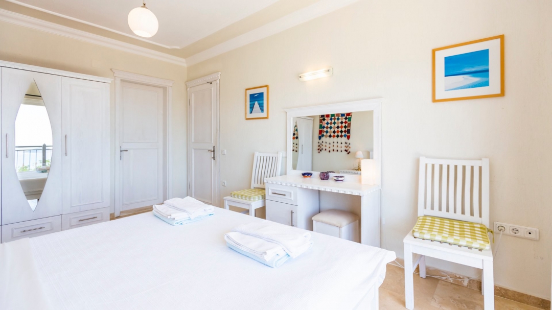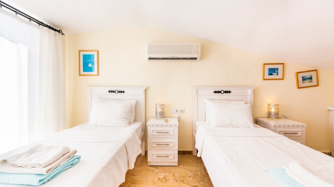 Birinci katta, deniz manzaralı ve çift kişilik yataklı iki oda bulunmaktadır. Komidin, gardırop, makyaj masası ve her oda için banyo ve tuvalet bu odaların donanımıdır.