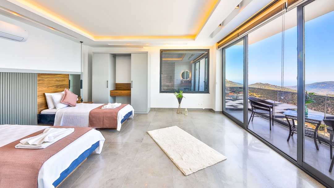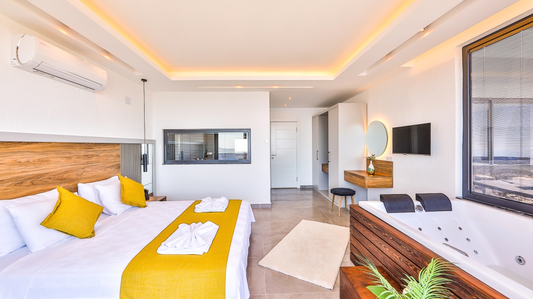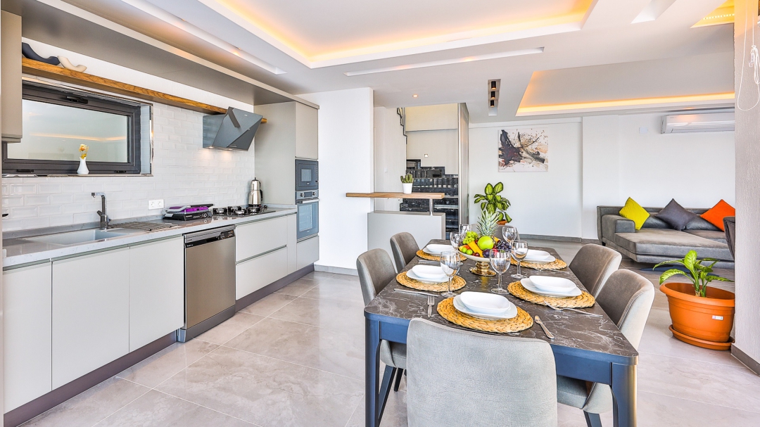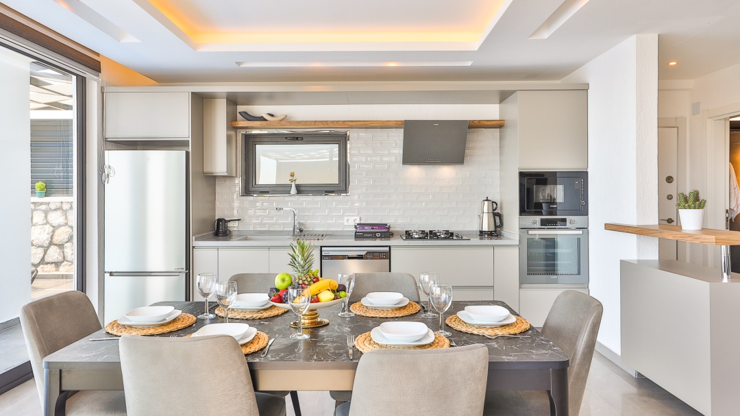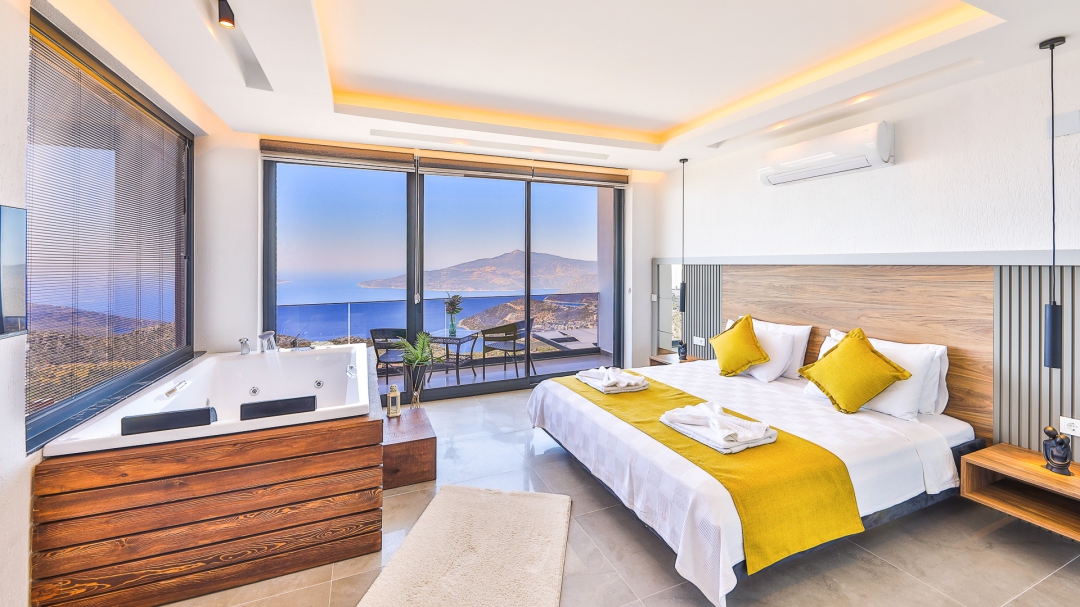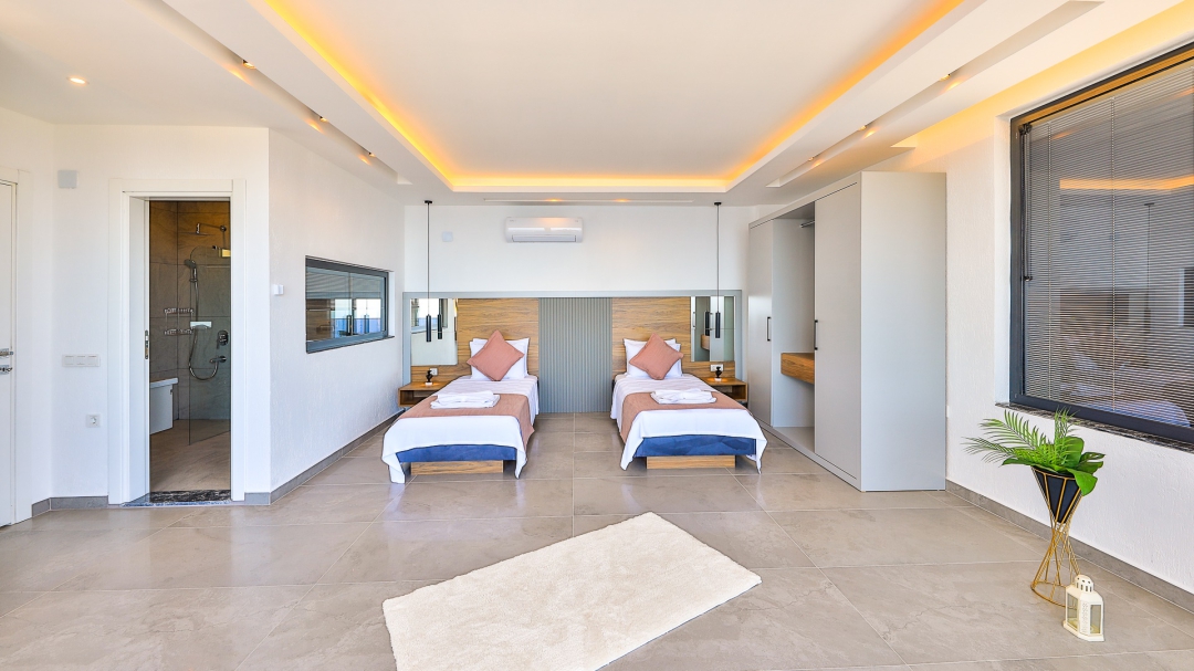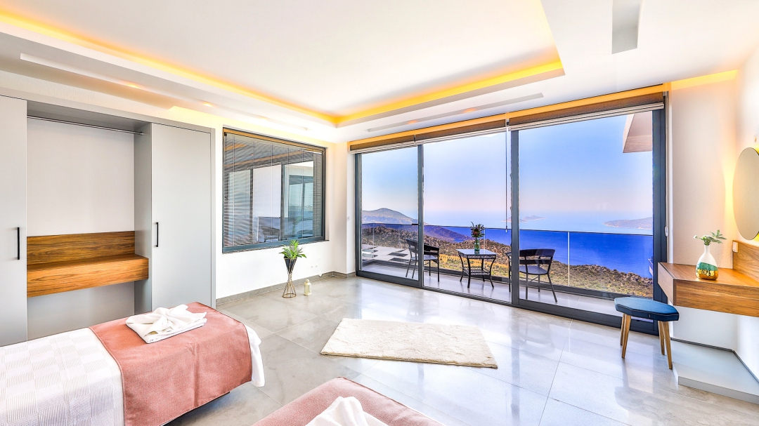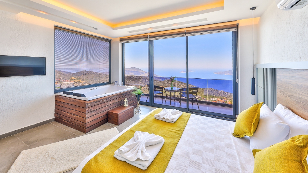2 yatak odasına sahip tatil evi, deniz manzaralıdır. Oldukça zevkli döşenmiştir. Ana yatak odasında jakuzisi mevcuttur. Merkeze yaklaşık 3- 4 kilometrelik uzaklıktadır.