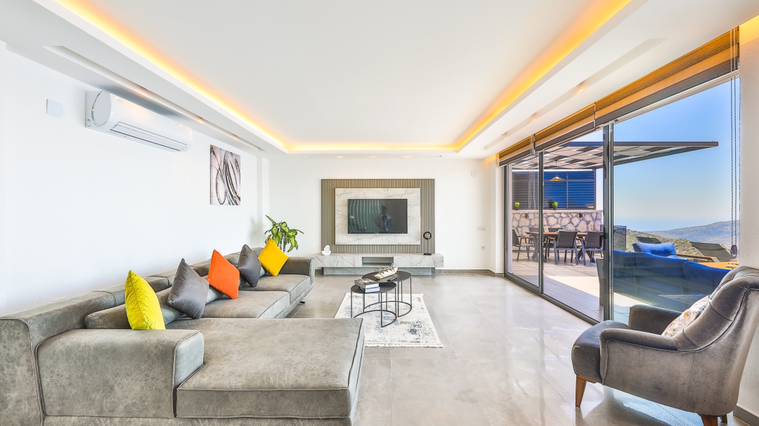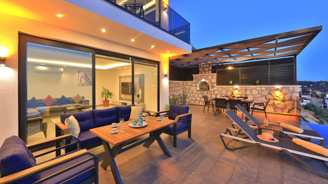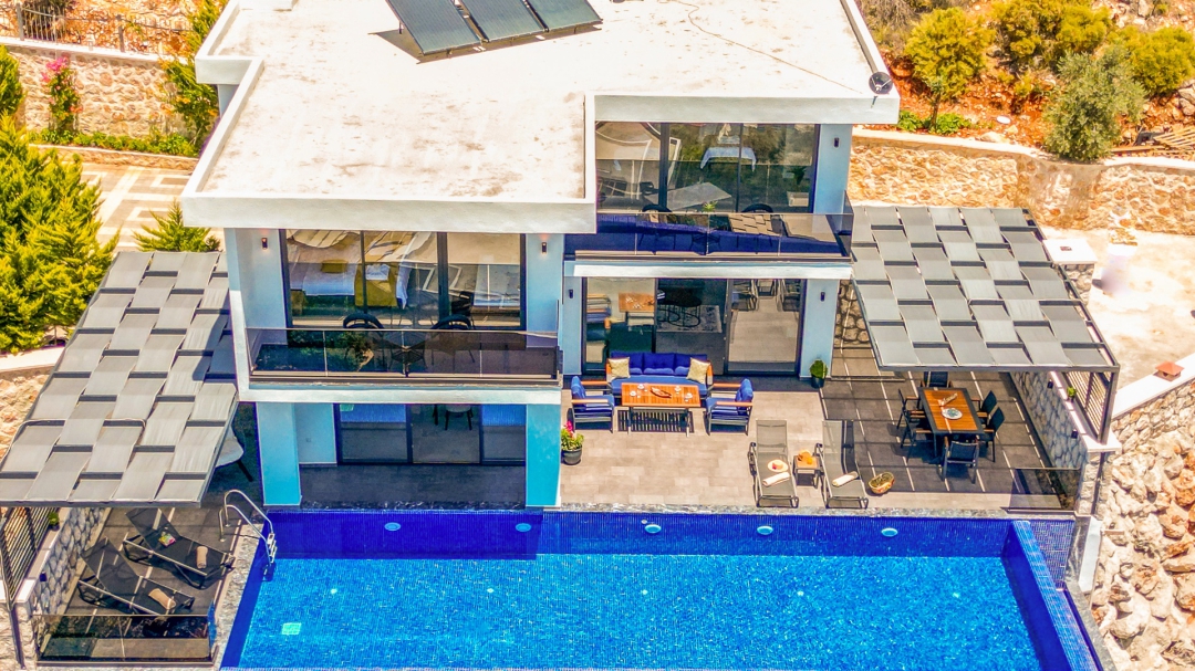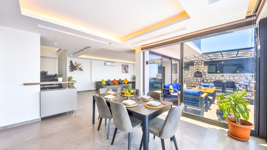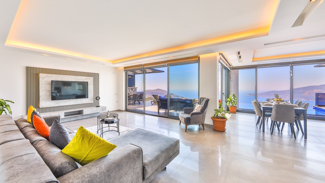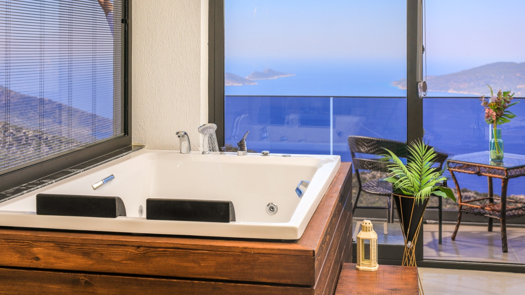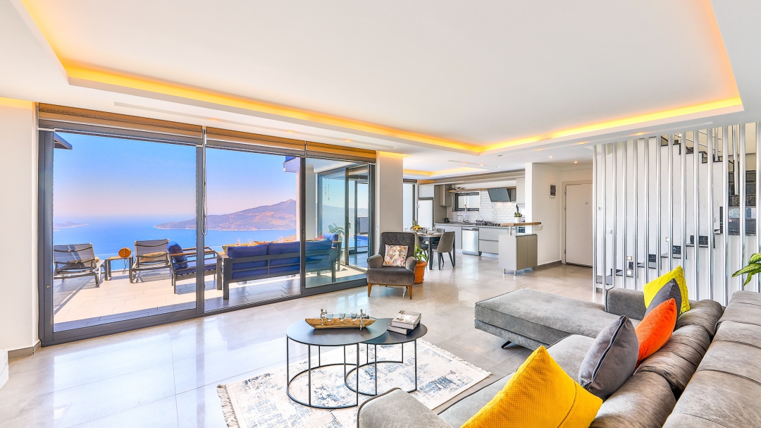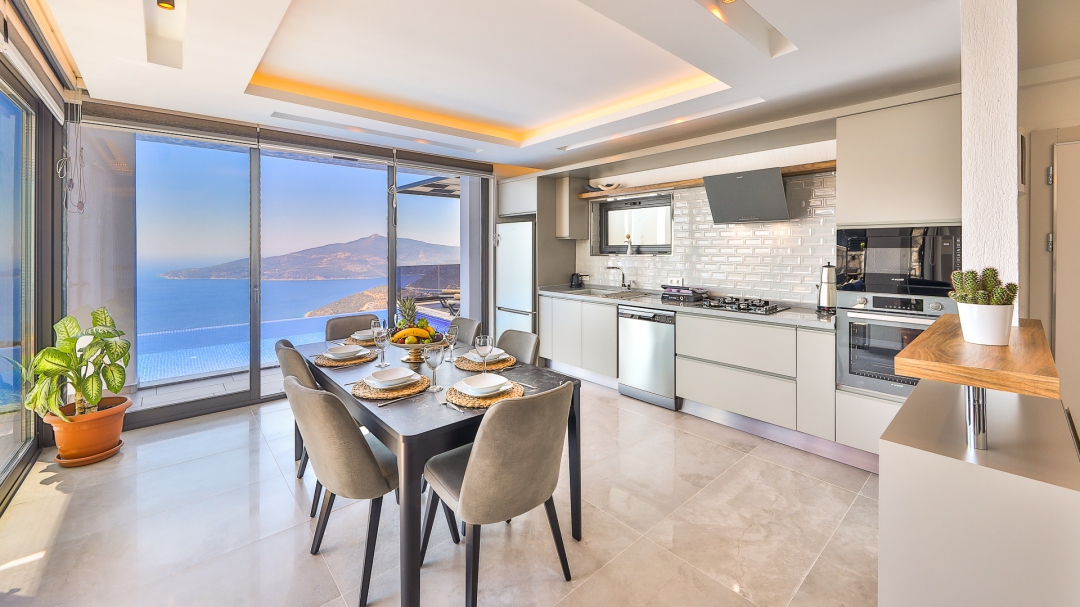 2 yatak odasına sahip tatil evi, deniz manzaralıdır. Oldukça zevkli döşenmiştir. Ana yatak odasında jakuzisi mevcuttur. Merkeze yaklaşık 3- 4 kilometrelik uzaklıktadır.