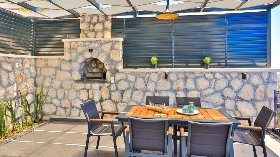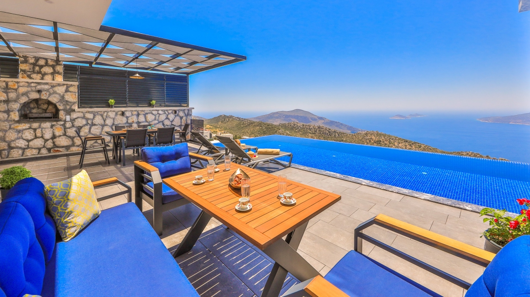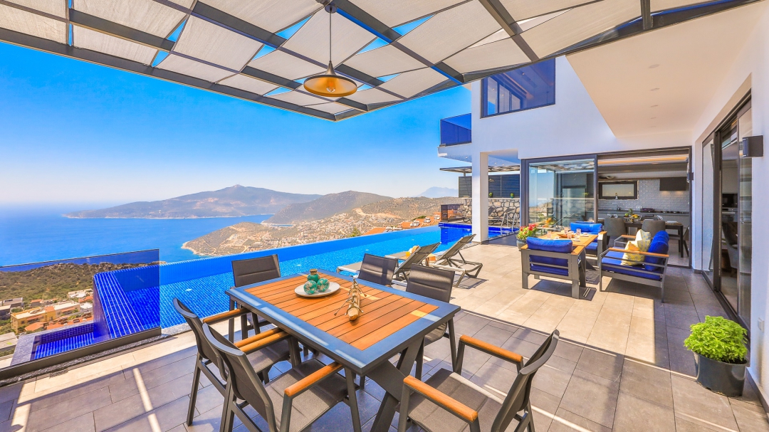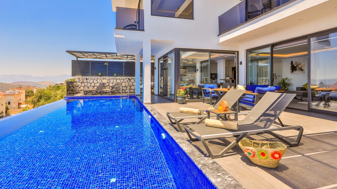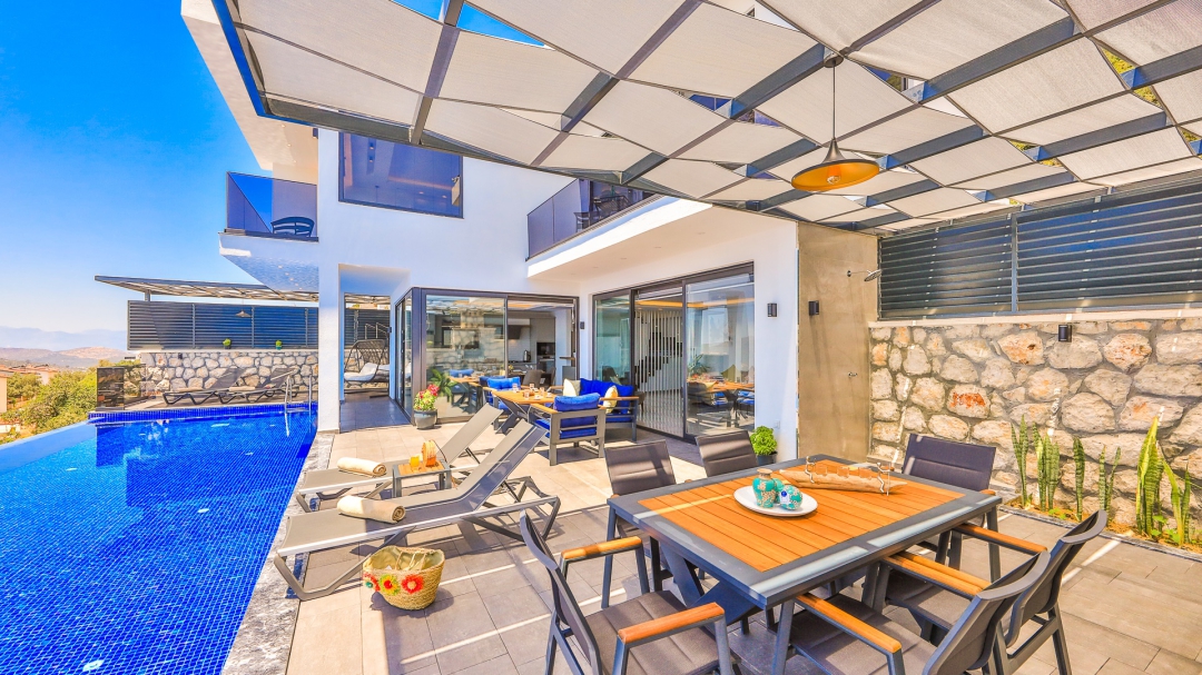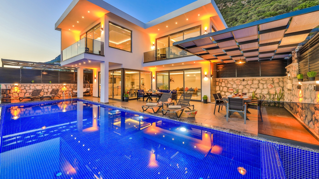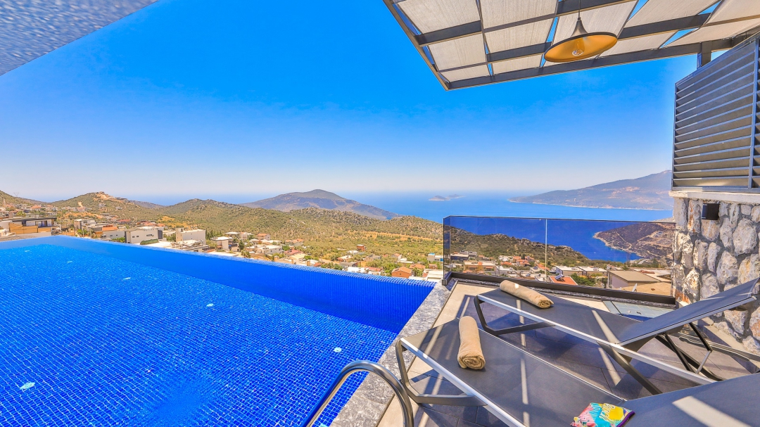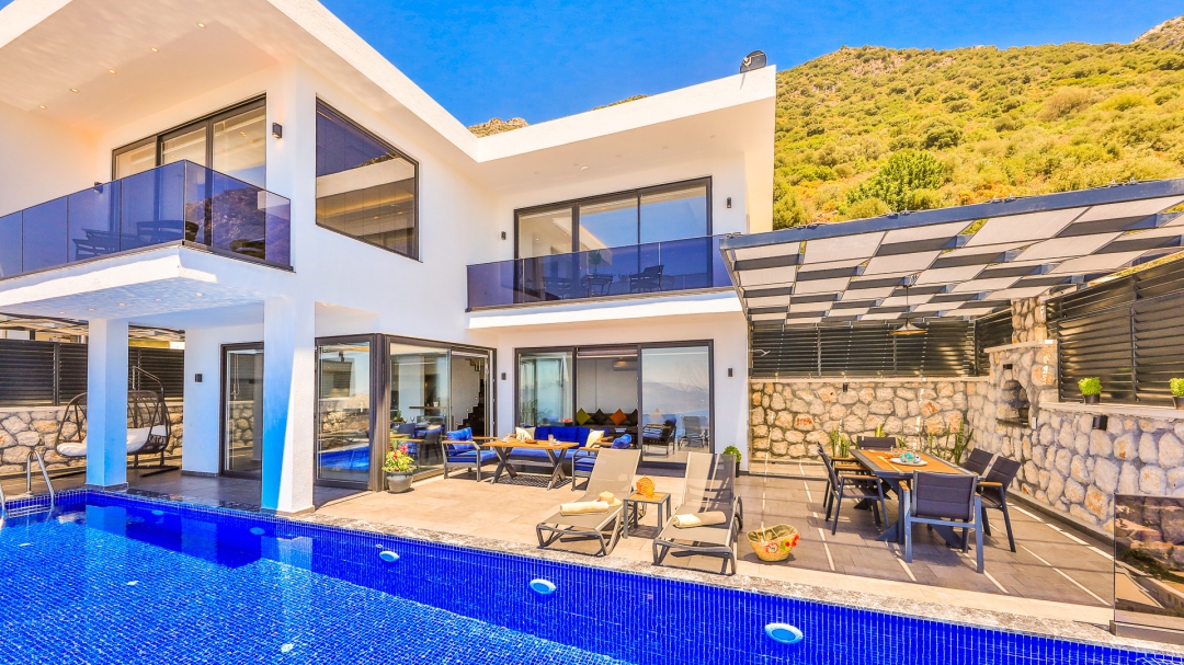2 yatak odasına sahip tatil evi, deniz manzaralıdır. Oldukça zevkli döşenmiştir. Ana yatak odasında jakuzisi mevcuttur. Merkeze yaklaşık 3- 4 kilometrelik uzaklıktadır.