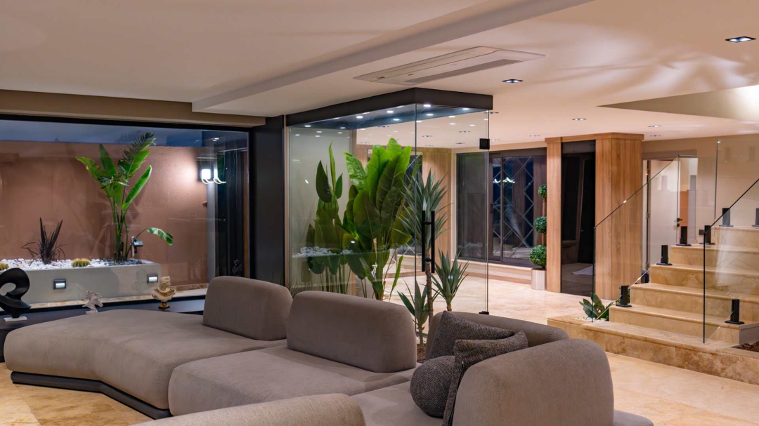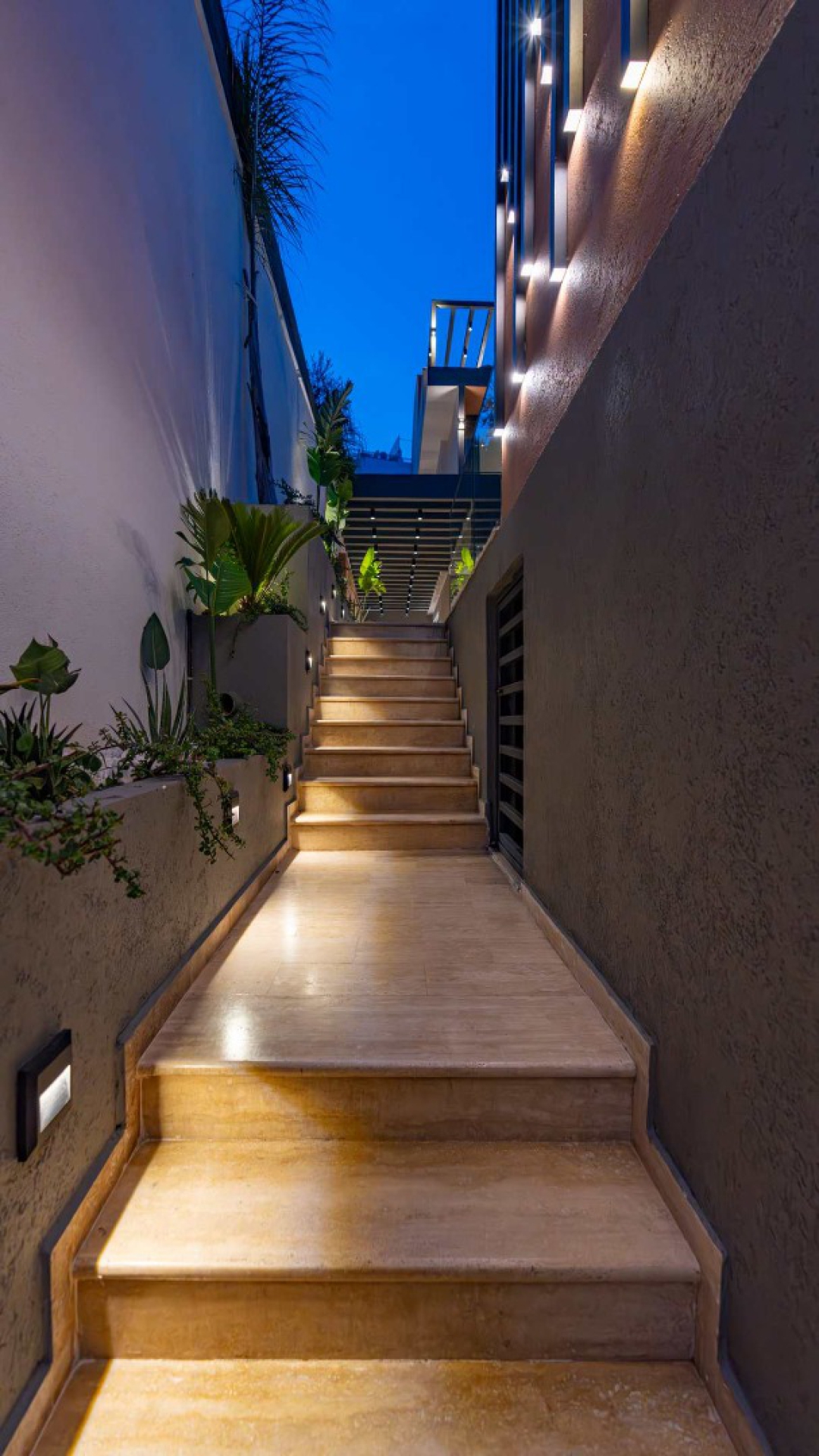 Merdivenleri çıkmaya devam ettiğinizde zemin kata yani havuzun bulunduğu kata ulaşacaksınız. Zemin katta sizi sonsuzluk havuzu karşılıyor. Daha küçük jakuzili bir havuz daha bu havuz ile bir bütün halindedir. Yemek masası, şezlong, şemsiye, barbekü ve köşe koltuk takımı havuz alanını dolduran malzemelerdir. Zamanınızın çoğunu geçireceğiniz bu alanda kullanılabilirlik ön planda tutulmuştur.