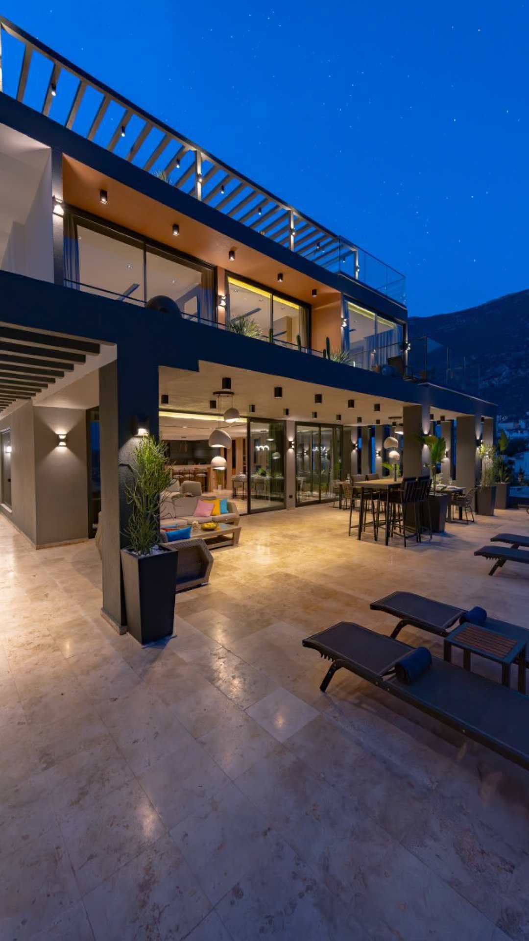 Kalkan'ın Ortaalan mevkiinde bulunan villamız 10 kişilik lüks bir seçenektir. Güneydoğuya bakacak şekilde konumlandırılmıştır. Misafirlerine maksimum deniz ve Kalkan manzarası sunmaktadır. Zemin kat bulunduğu konumda yoldan yaklaşık 1,5 kat daha yüksektir.