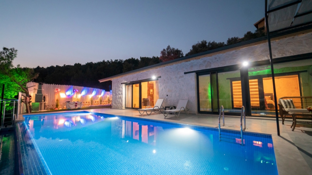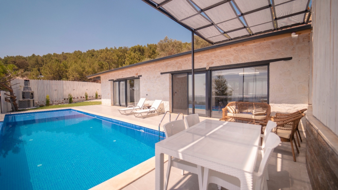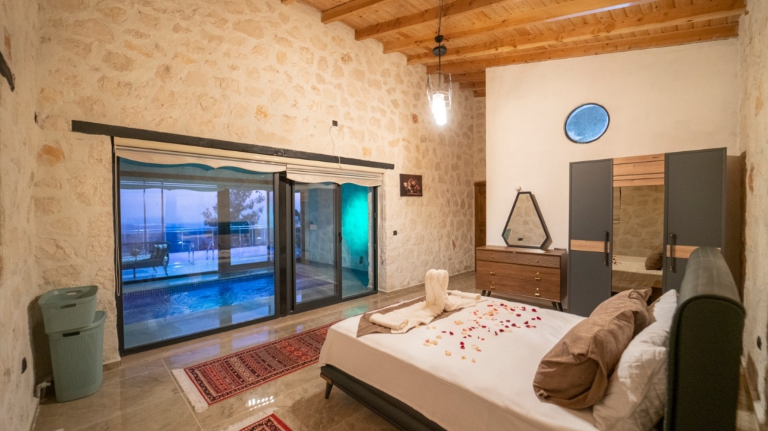Tek yatak odalı yapı, balayı konseptindedir. İslamlar'da doğa ile içiçe yer alır. Serin geçen mevsimler için kapalı havuzu mevcuttur. Havuz alanı korunaklıdır.