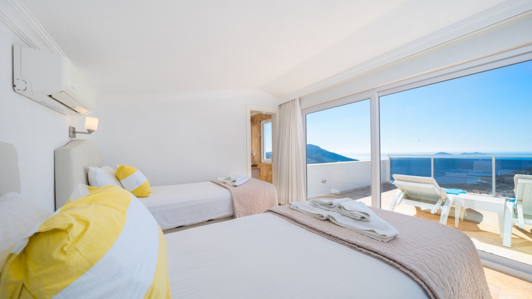 Son iki oda çatı katında yer almaktadır. Birinde 2 adet tek kişilik yatak, diğerinde çift kişilik yatak bulunmaktadır. Yine, bu odalar en-suite banyoludur. Bu odaların önündeki teras villadan en geniş manzarayı sunmaktadır. Bu terasta iki şezlong bulunmaktadır.