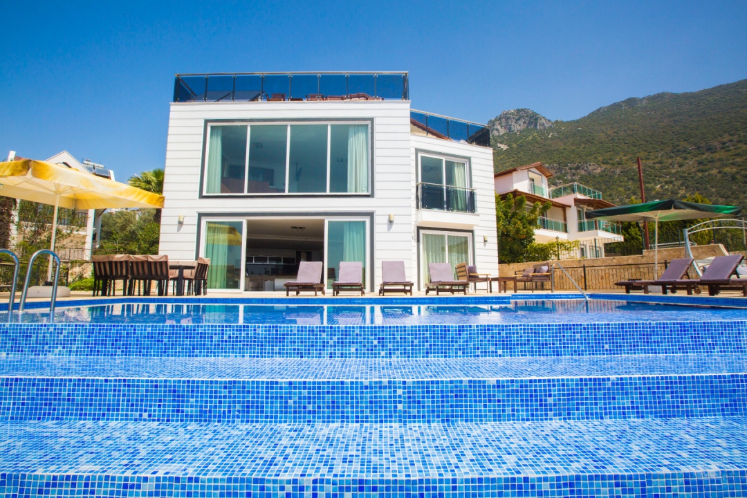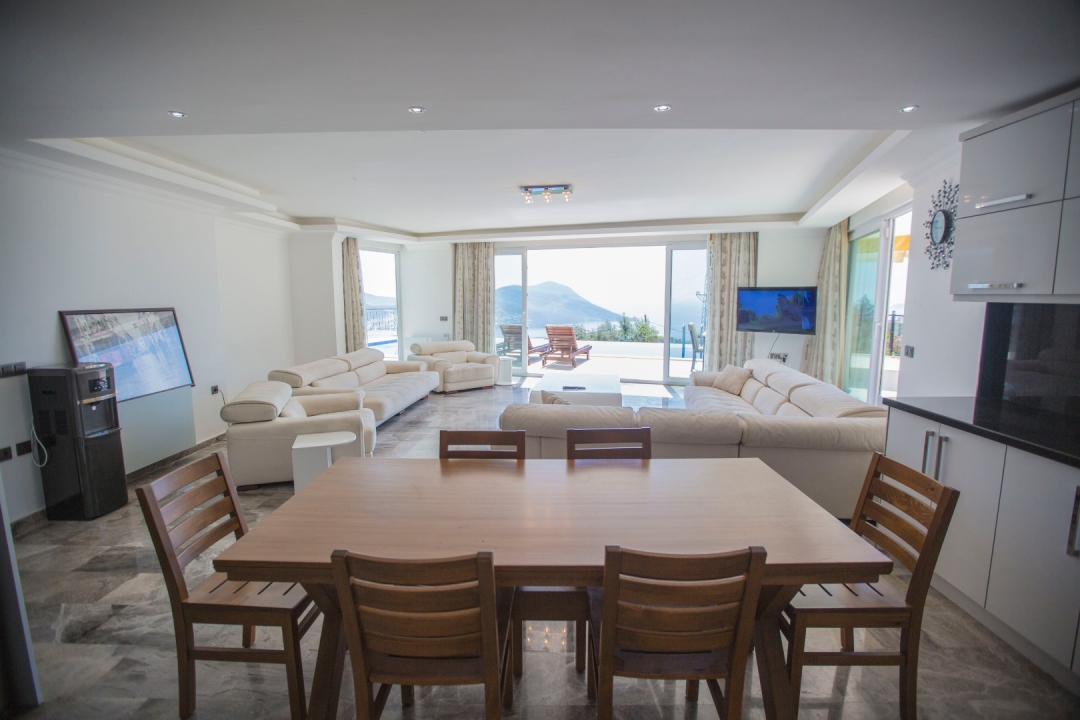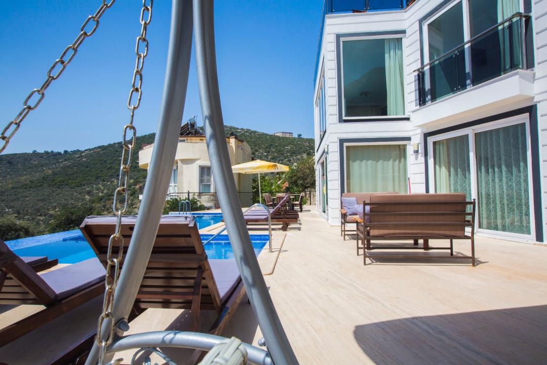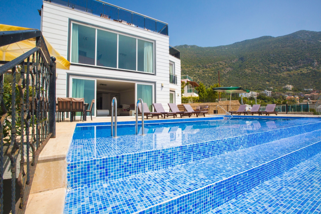 Kalkan merkeze yürüme mesafesinde yer alan villa, 6 yataka odalı, 13 kişiye kadar olan kapasite için ziyadesiyle donanımlı bir seçenektir. Açık alanda havuz, çocuk havuzu ve havuz jakuzisi, şezlonglar, şemsiyeler, yemek masası, oturma grubu, masa tenisi, barbekü gibi donanımlara yer verilmiştir. Amerikan açık modern mutfaktır. Konforlu salonunda modern oturma grubu, orta sehpa, tv, tv ünitesi, klima havuz terasına çıkış bulunmaktadır.