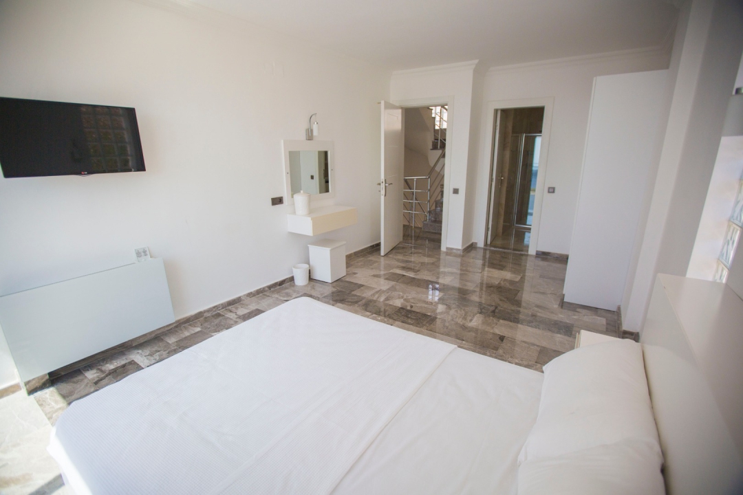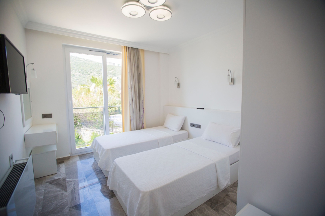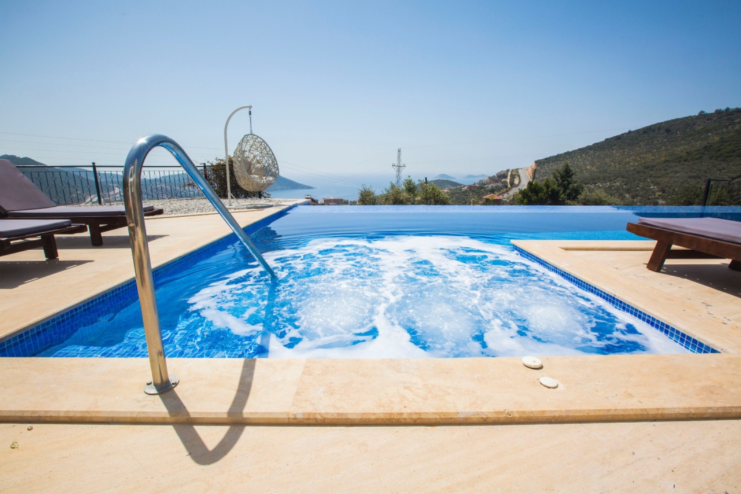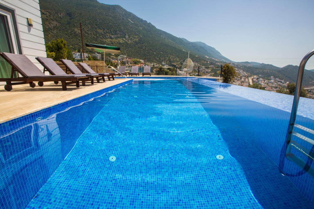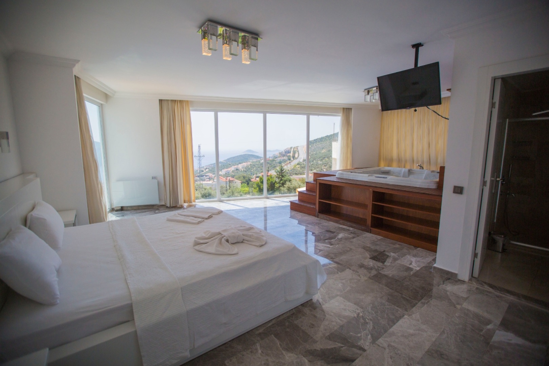 Kalkan merkeze yürüme mesafesinde yer alan villa, 6 yataka odalı, 13 kişiye kadar olan kapasite için ziyadesiyle donanımlı bir seçenektir. Açık alanda havuz, çocuk havuzu ve havuz jakuzisi, şezlonglar, şemsiyeler, yemek masası, oturma grubu, masa tenisi, barbekü gibi donanımlara yer verilmiştir. Amerikan açık modern mutfaktır. Konforlu salonunda modern oturma grubu, orta sehpa, tv, tv ünitesi, klima havuz terasına çıkış bulunmaktadır.