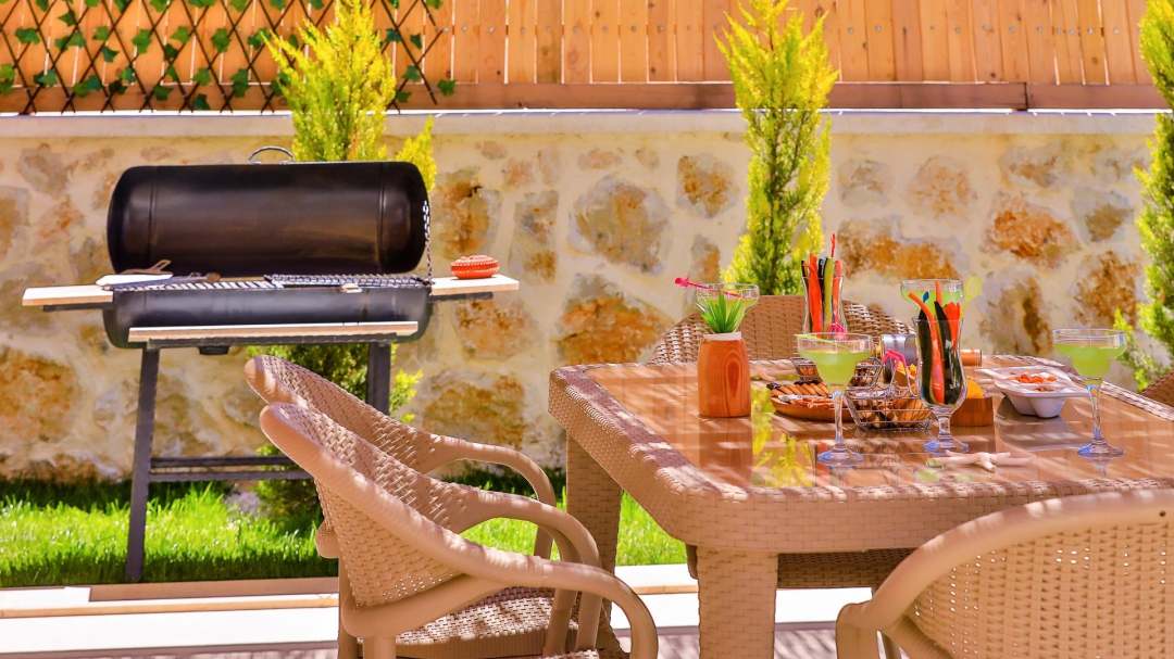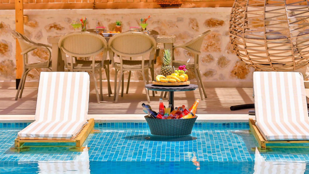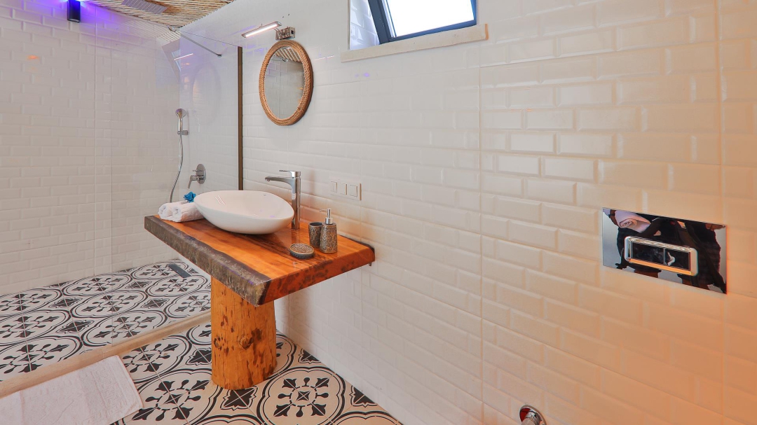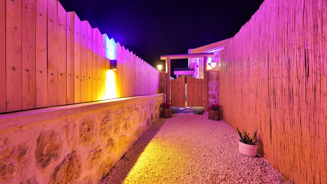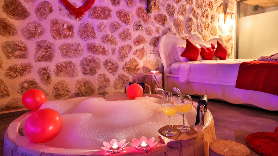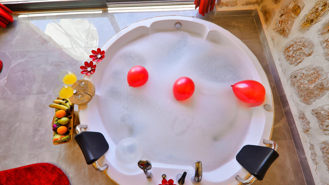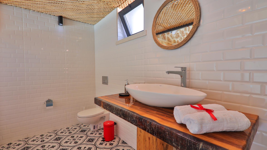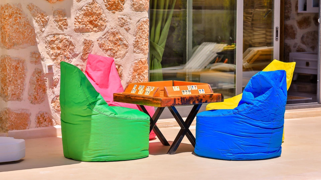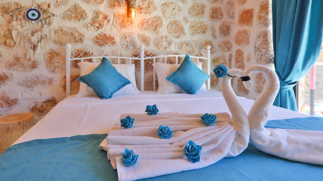 Ana yatak odasında bir adet çift kişilik yatak, diğer odasında bir çift kişilik bir adet tek kişilik yatak bulunan villa 5 kişiye kadar konaklama kapasitesi sunar. Hoş bir peyzaj tarafından sarılan havuz terası oldukça keyiflidir. Havuzun yanında bir de havuz jakuzisi yer alır. Aynı zamanda çocuk havuzu olarak kullanmak için uygundur. Bolca zaman geçireceğiniz bu alanın yabancı gözlerden mahremiyeti sağlanmıştır. Yapının dışı gibi içi de ferahtır. Salonda ferah bir yüksek tavan detayı bulunur. İnşasında kullanılan taş ve ahşap gibi doğal malzemeler yapıyı bir şehir evi havasından dışarı sürükler. İliklerinize kadar hoş anılar biriktireceğiniz yapı balayı çiftleri ve çekirdek ailelere yetecek kapasiteyi sağlar.