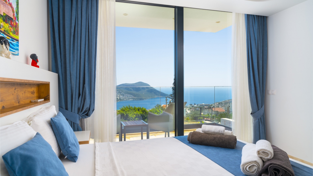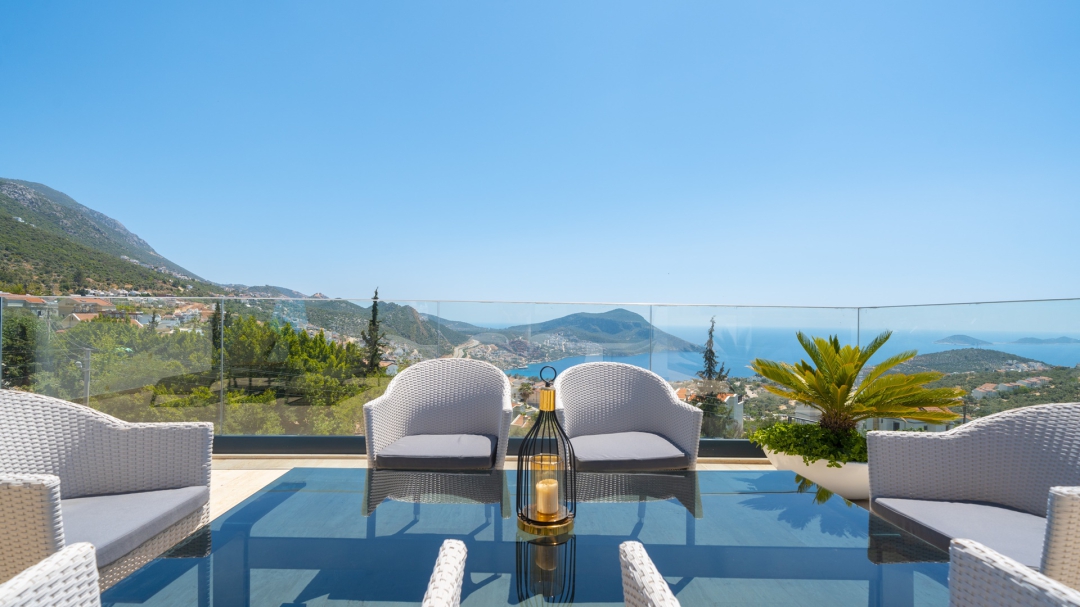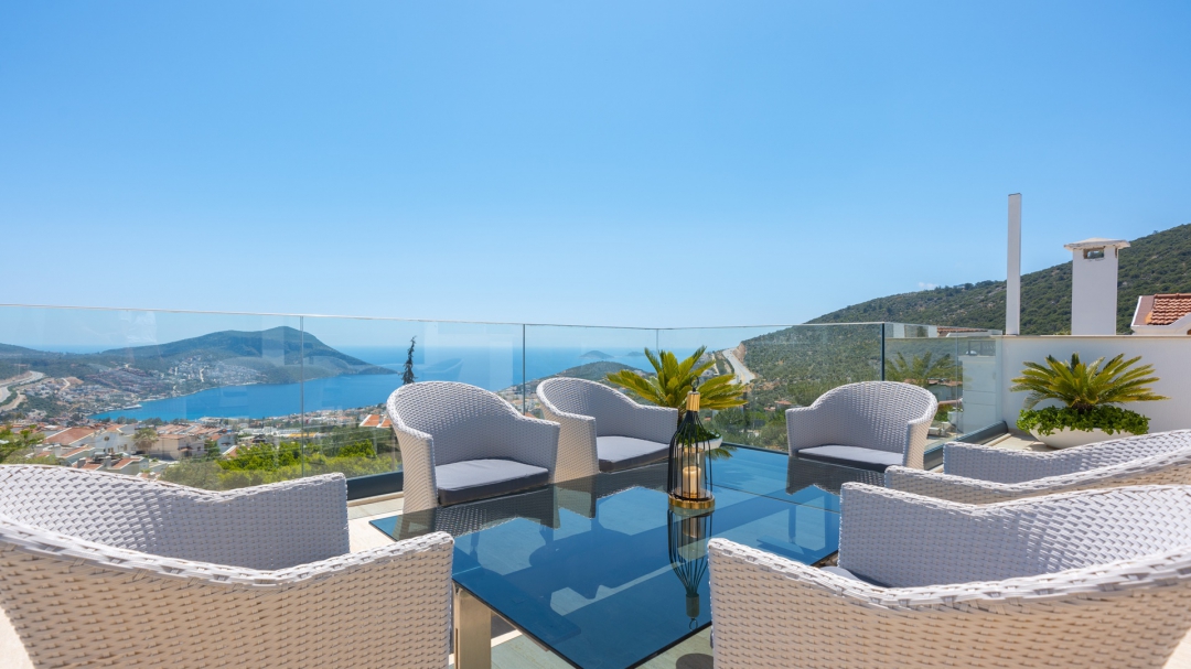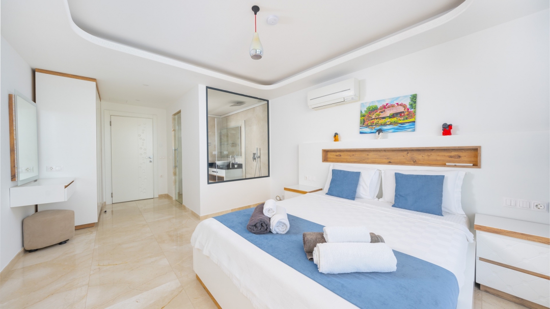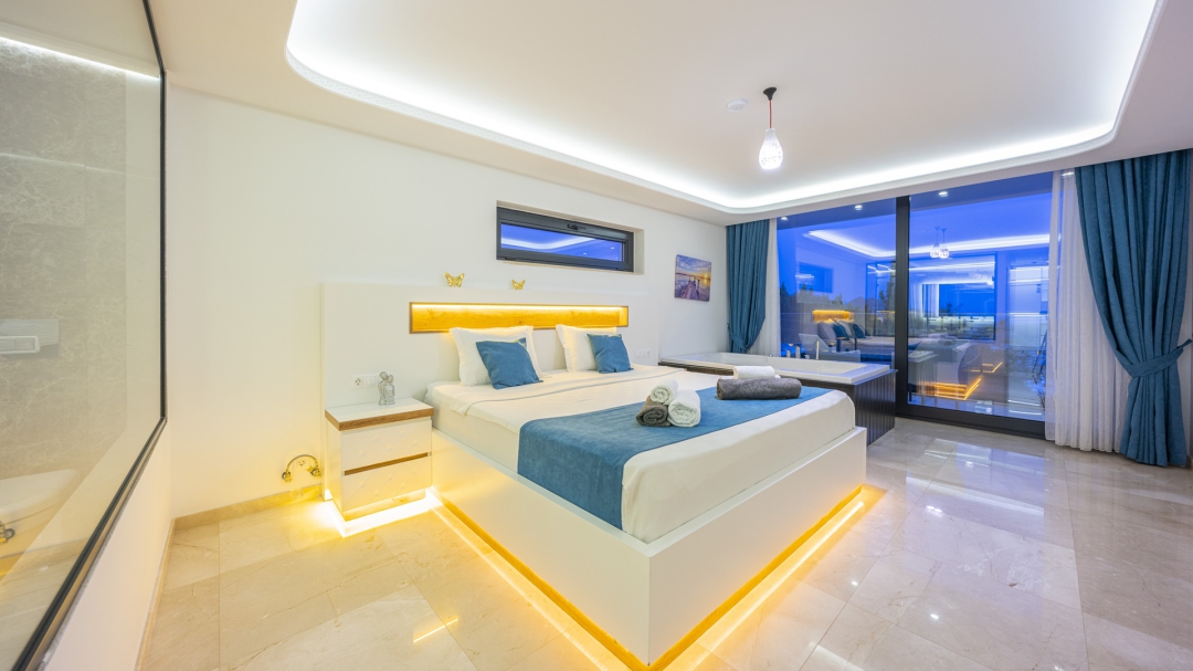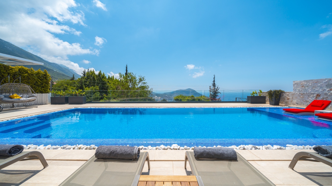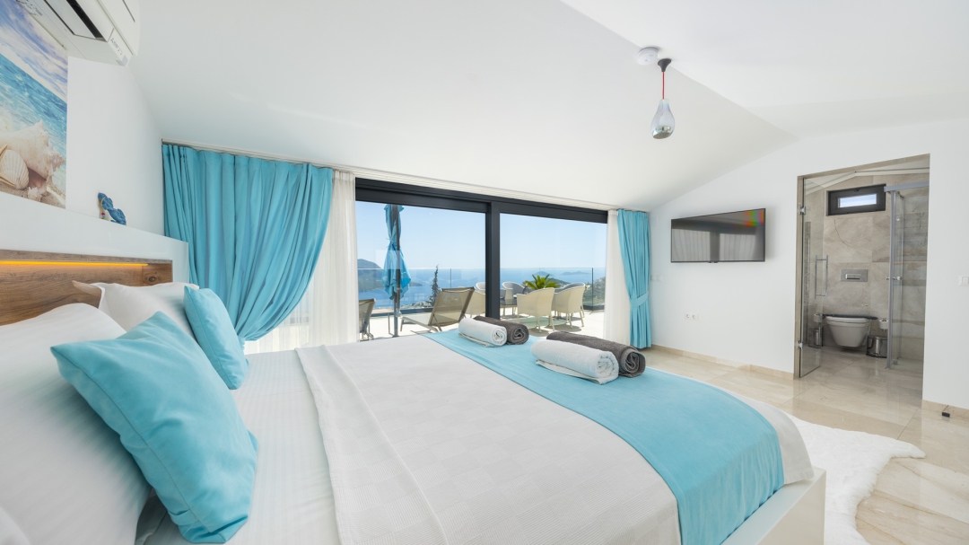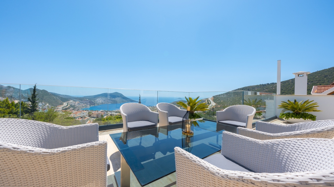 Eğer tatilinizde de lüksü seviyorsanız, bu seçeneğimiz size göre. Kalkan merkeze yakın bir lokasyonda yer alan bu villa, 10 kişilik konaklama kapasitesine sahip, donanım açısından oldukça zengin bir tercihtir. Deniz manzarasının yanında sauna, tük hamamı, çatı katında, serin geçen dönemler için ısıtmalı ve deniz manzaralı küçük bir havuz, sunduğu donanımlar arasında yer alır. Tatilde bile spor tutkusundan vazgeçemeyenler için fitness alanı vardır. Tüm yatak odaları en-suittir. Kalkan ve deniz manzarası sunan jakuzisi de, misafirlerine sunduğu bir başka opsiyondur. Anayoldan sadece 10 metre mesafedeki girişi, bu villa için ulaşımı da kolaylaştırır. Her detayı ile tamamen misafirlerinin lüksü ve rahatı düşünülerek dizayn edilmiştir. Kızıltaş bölgesinde yer alır.  Ana yol üzerindedir. Oda düzeni; zemin katta 1 adet, 1. katta 3 adet ve çatı katında 1 adet olmak üzere 5 oda şeklindedir.