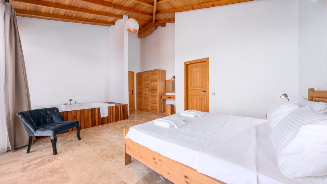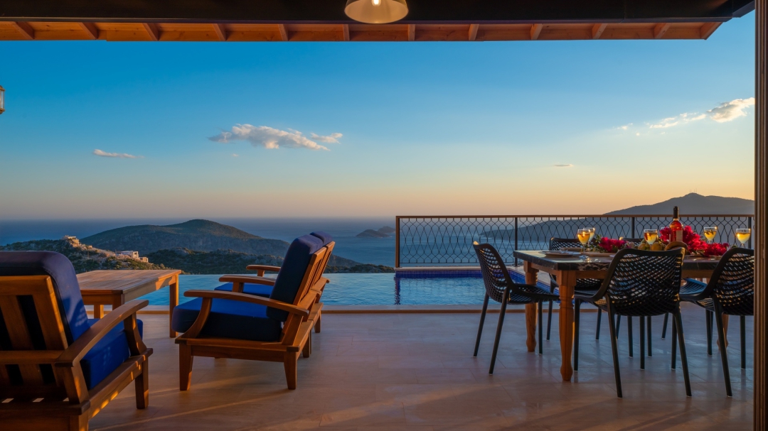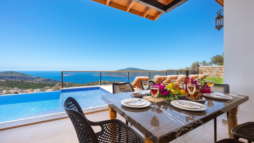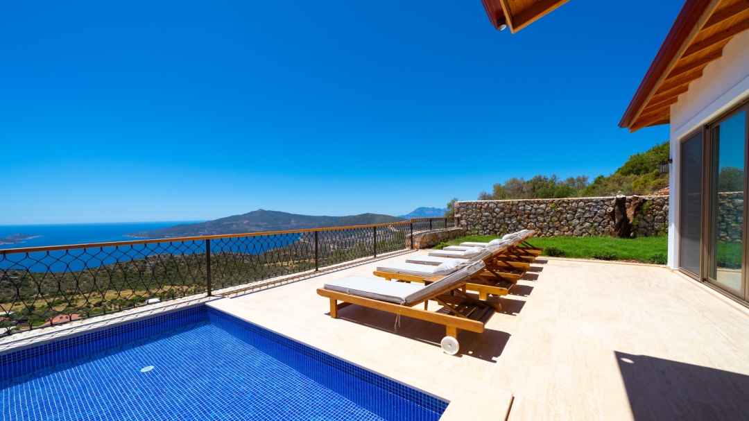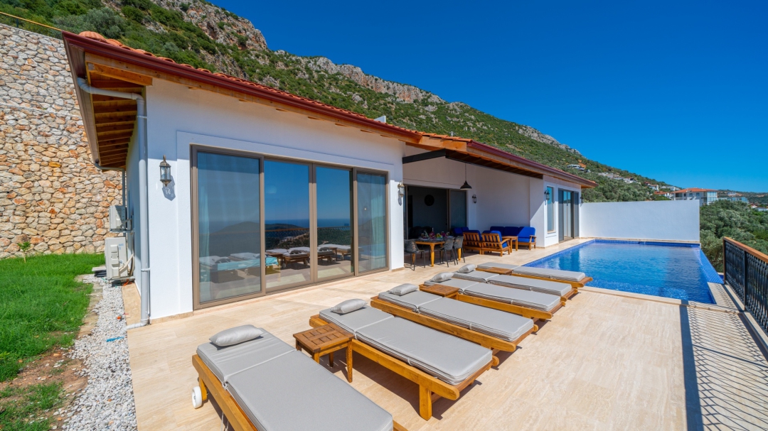 Villa, Kalkan yakınlarındaki Kördere mevkiinde konumlanır. Bulunduğu alanda birebir aynı iki yapı daha vardır. Merdiven basamağı benzeri bir şekilde konumlanmış binalardan ortada yer alan yapıdır. Tatminkar deniz manzarası vardır. 6 kişi konaklamaya imkan sağlayan villa 3 yatak odası ve 3 banyo barındırmaktadır. Sade ve ferah bir yapıdadır. Yoğun olarak ahşap ve taş malzemelerden oluşan yapı, tatilinize eşlik etmek için siz misafirlerini bekler.