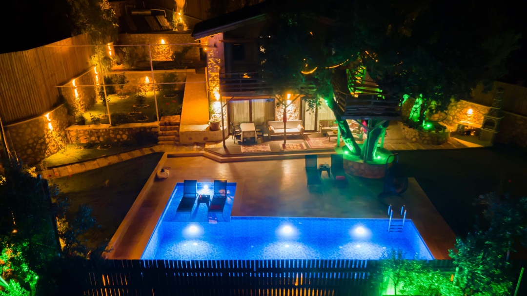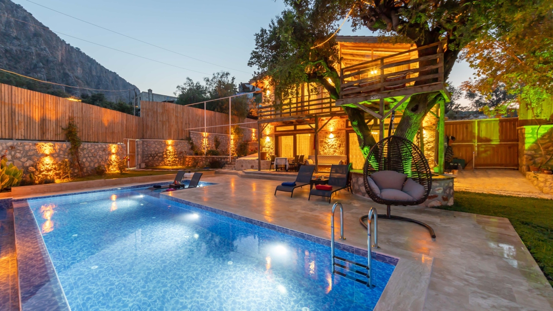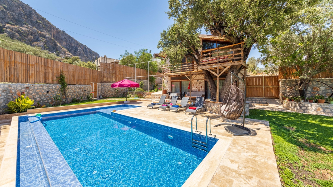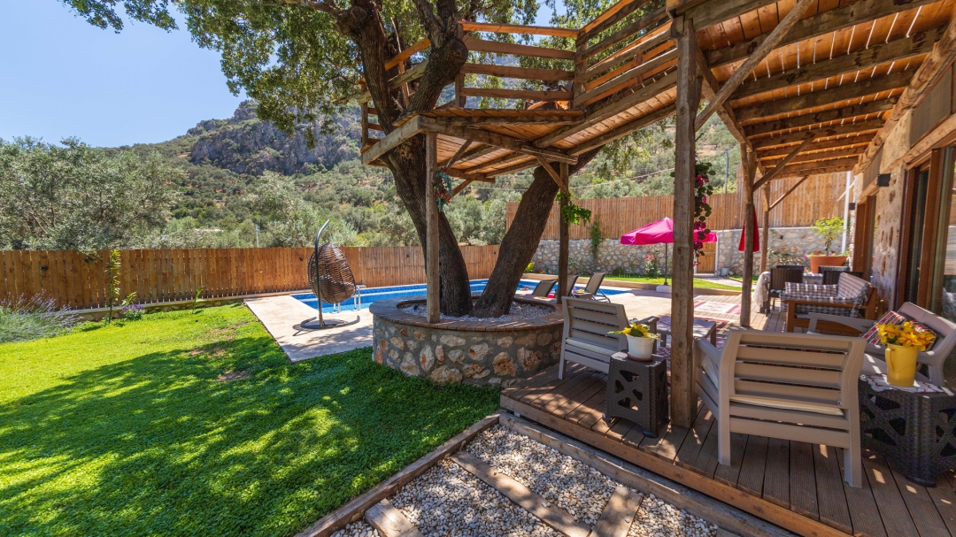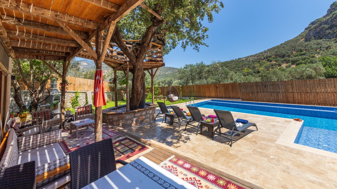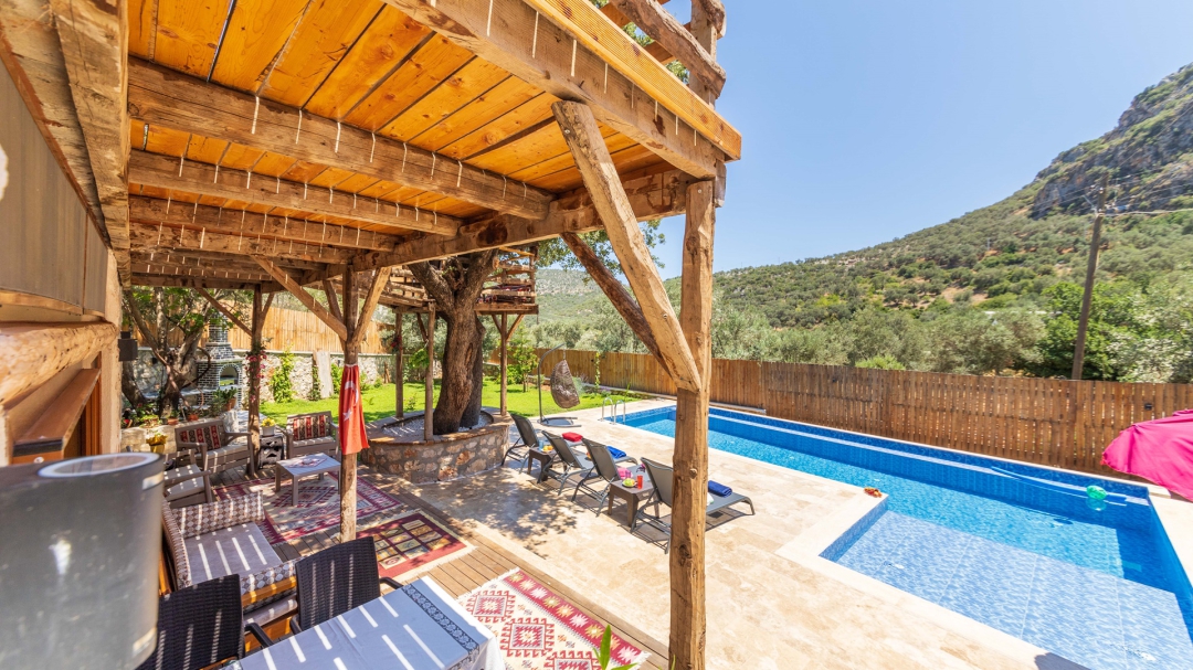 Ulugöl'de yer alan kiralık, ahşap tatil evi, 2 yatak odalıdır. 4 kişilik konakalama kapasitesine sahiptir. Havuz alanı yabancı gözlerden izoledir. Doğa içinde yer alır. Sahip olduğu yeşil alan ile bahçeli villalar arasında yer alır.