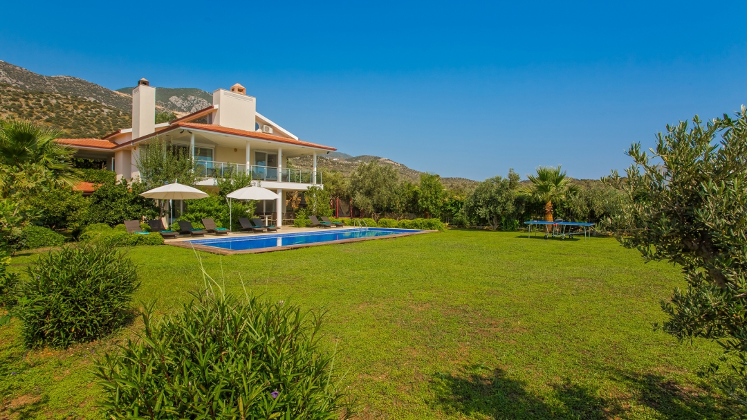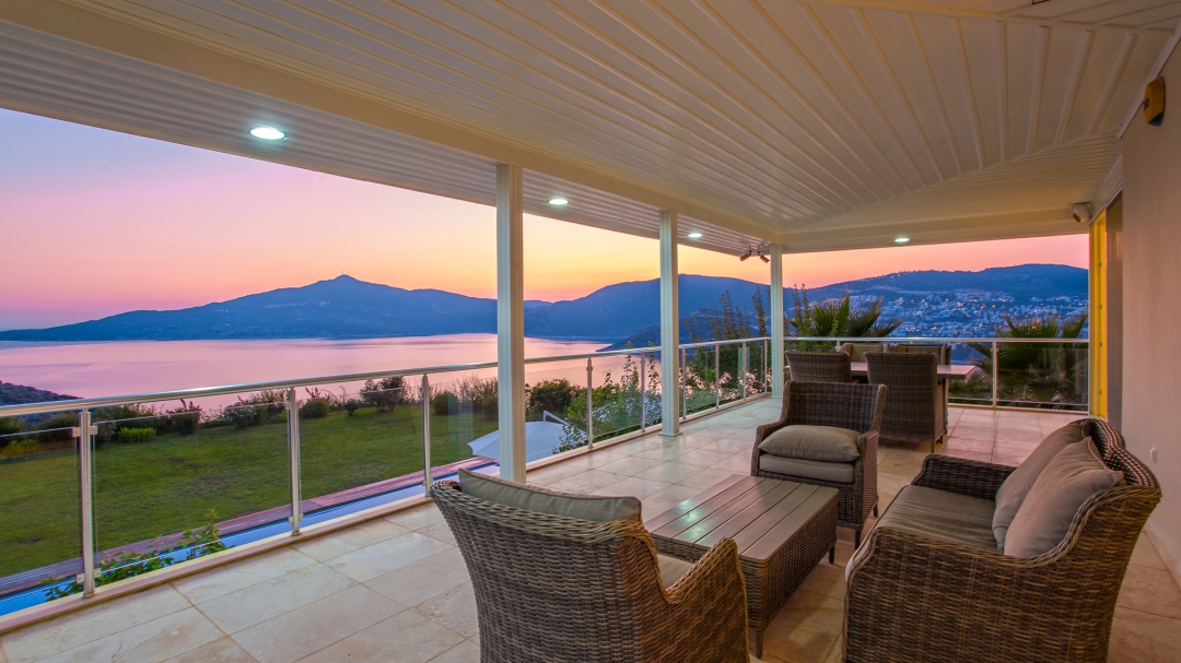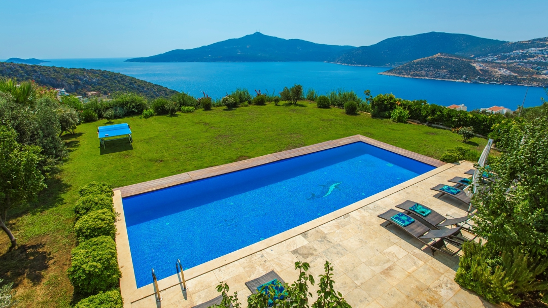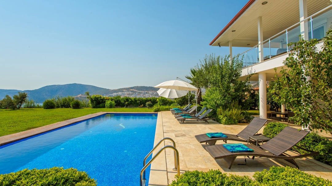 Kalkan'ın Kışla mevkiinde yer alan seçenekte 5 yatak odası bulunuyor. Denize yakın bir konumdadır. Geniş bir bahçe alanına sahiptir. Havuz alanının büyüklüğü mahremiyete önem veren misafirler için kolaylık sağlamaktadır. Alan geniş olduğu için dışarıdan görünmüyor. Deniz manzarası villanın diğer özelliklerinden biridir. Binanın ana girişi birinci kattandır.