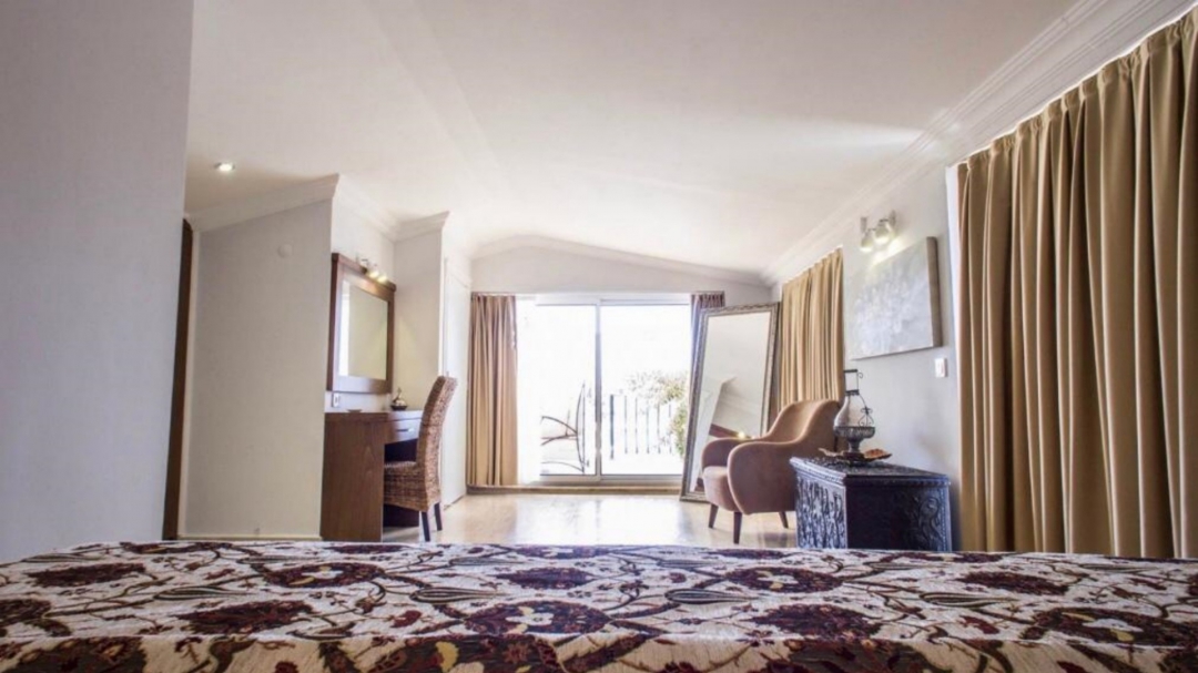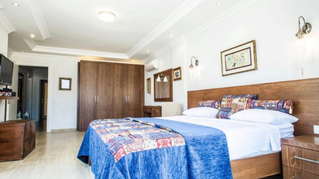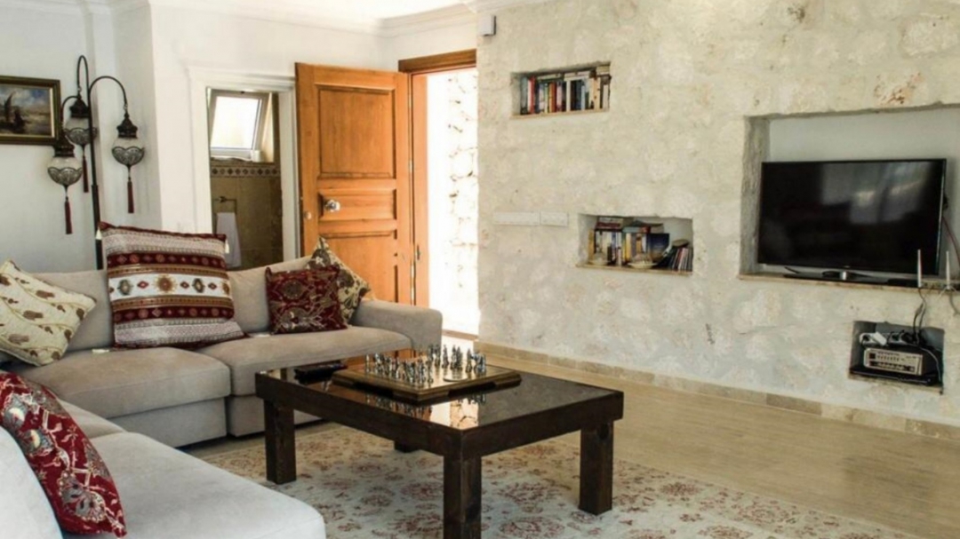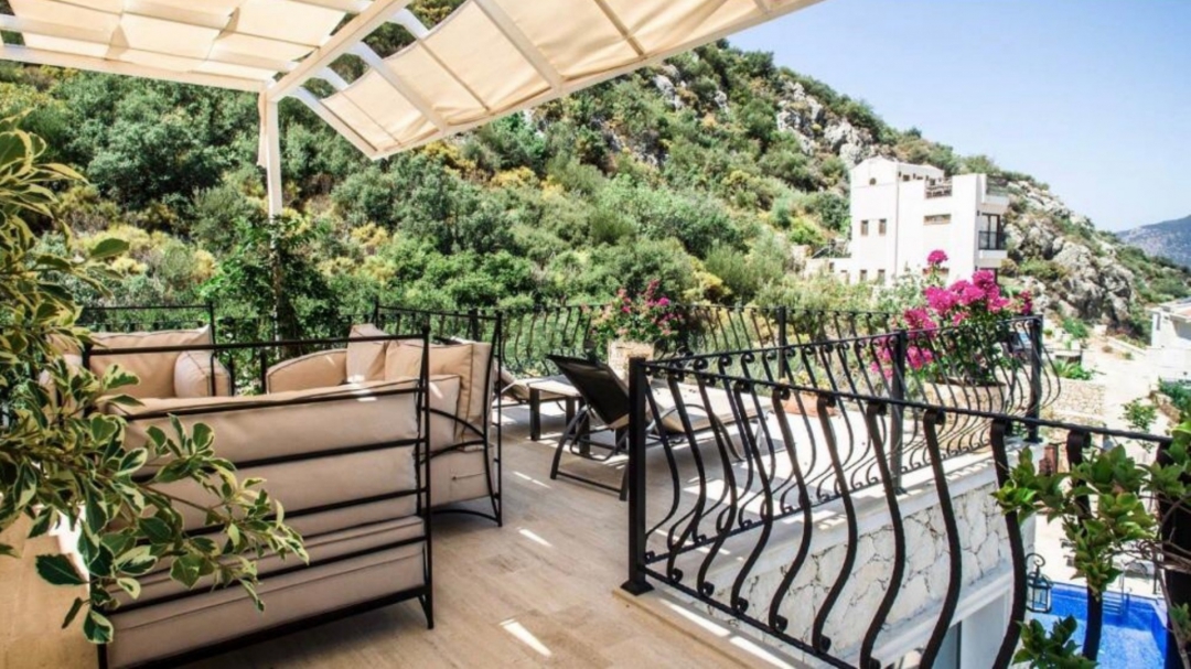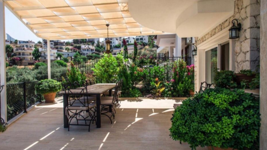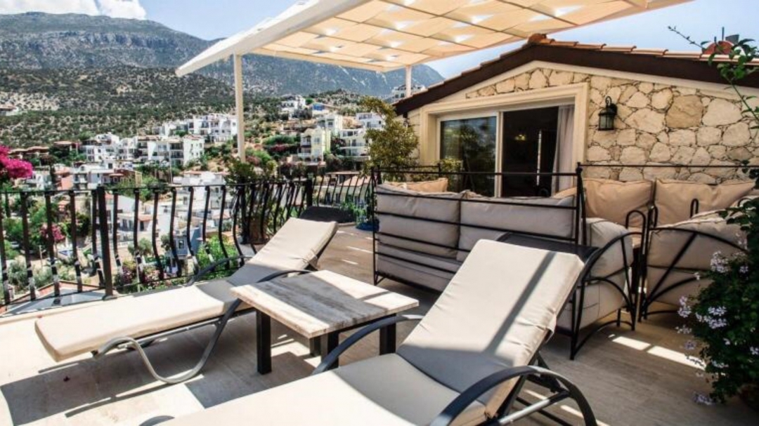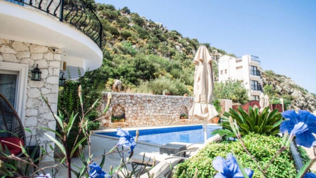 Her iki balkonu ve havuz terası deniz manzarasına bakan villanın mimarisinde doğal taş malzeme kullanılmıştır.Villa beş yatak odalı olup hepsi en suittir ve on kişiye kadar konaklama kapasitesi vardır.Kışla'da bulunan villa Kalkan'a yaklaşık 2,5 km uzaklıkta bulunmaktadır.