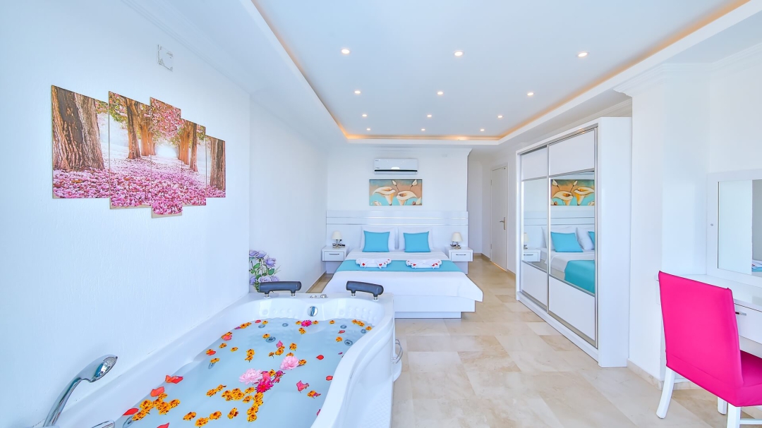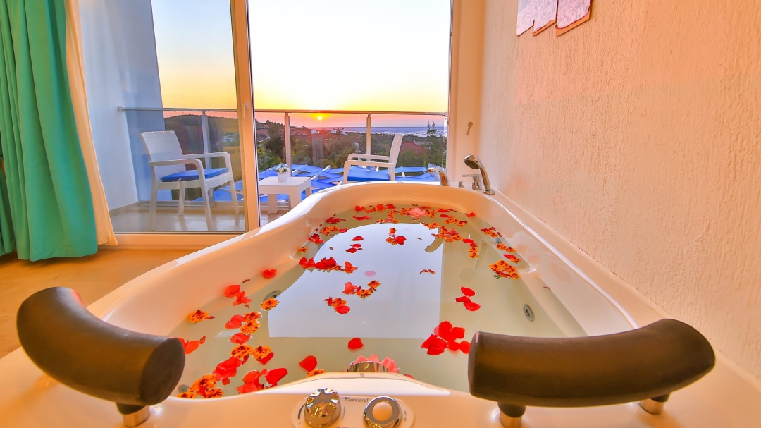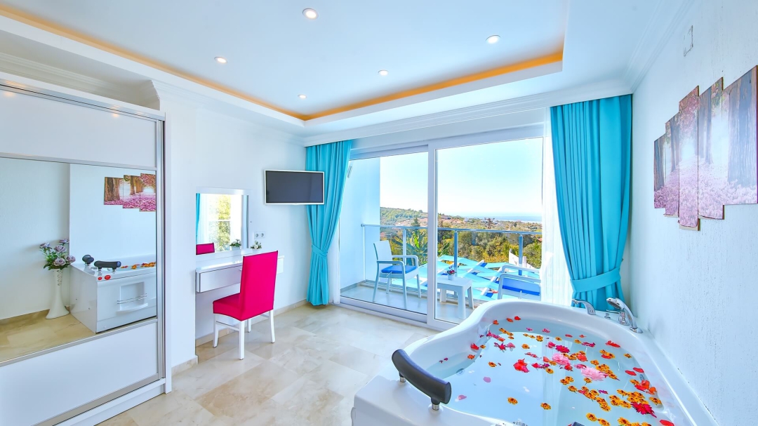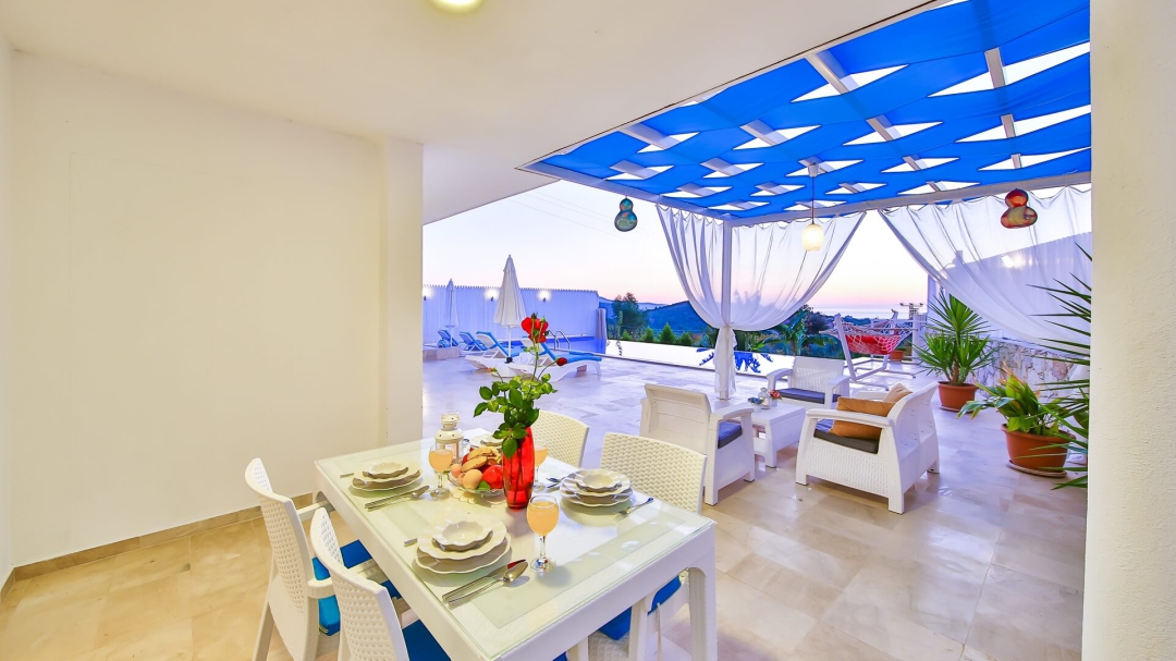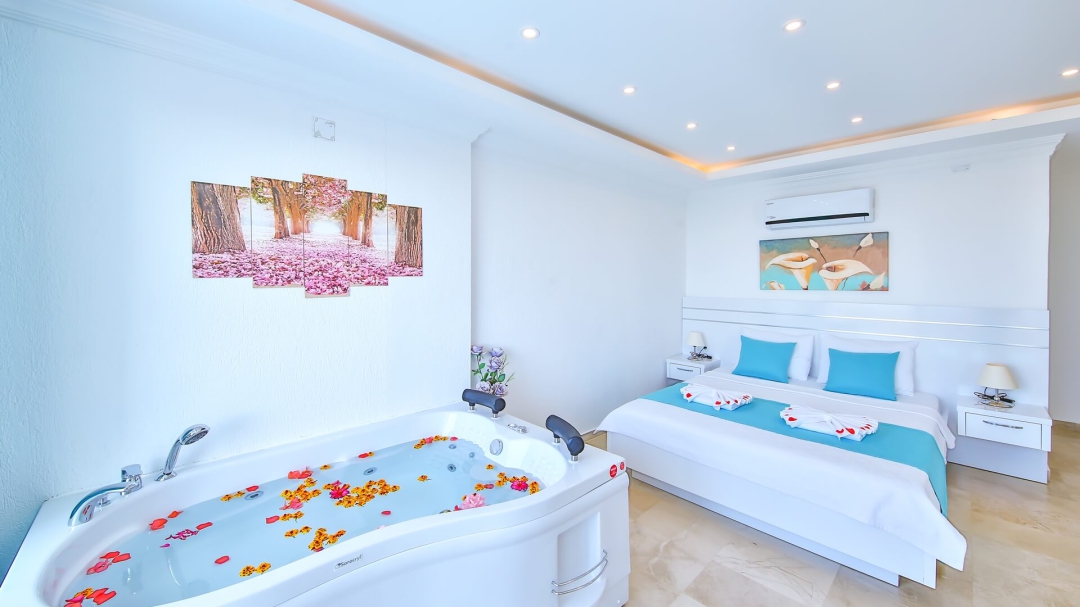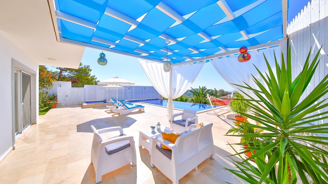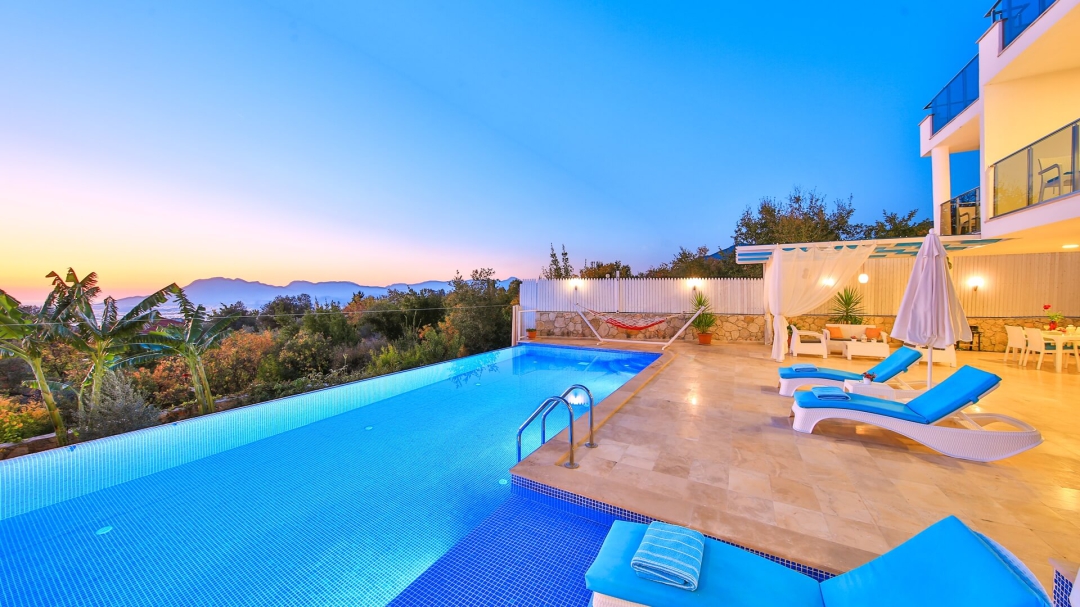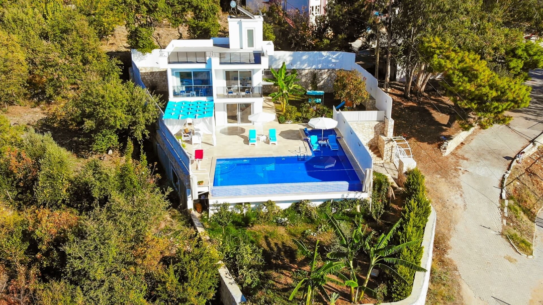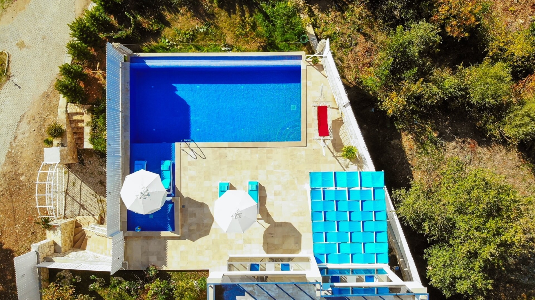 Üzümlü köy merkezine oldukça yakın bir lokasyonda yer alan villa, çekirdek aile ve balayı çiftleri için uygundur. Havuz alanı korunaklıdır. Ana yatak odasında jakuzi vardır. Havuz terasında yeşil alana da yer verilmiş villada küçükler için çocuk oyun grubu bulunur. Köy merkezinde yer alan Restoran, market, kahvaltı yerleri, eczane ve sağlık ocağına yürüme mesafesindedir.
