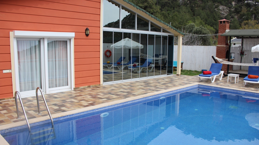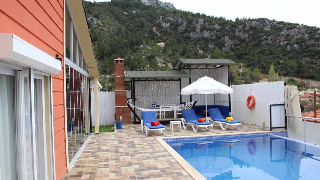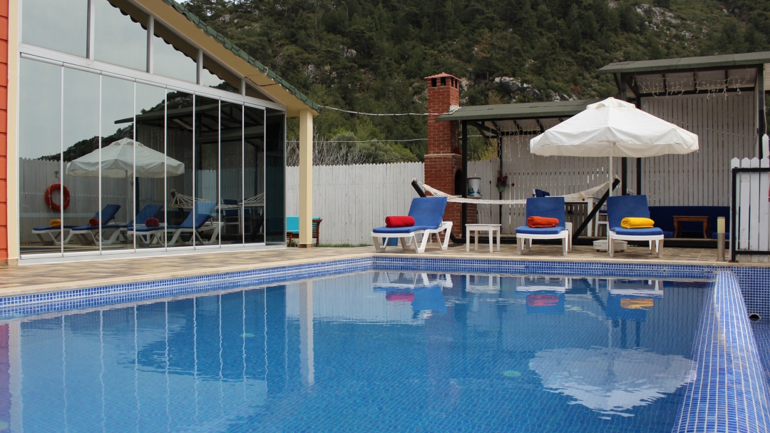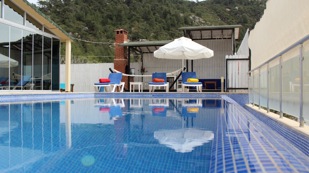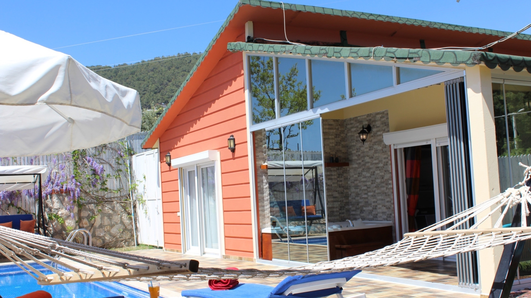 Kalkan, İslamlar mevkiinde konumlanan özel havuzlu villa, 2 kişilik kapasiteye sahiptir. Havuz alanı korunaklı olan yapı, balayı çiftleri için uygun bir seçimdir. Doğa manzarası ve jakuzi misafirlerine sunduğu diğer unsurlardır.