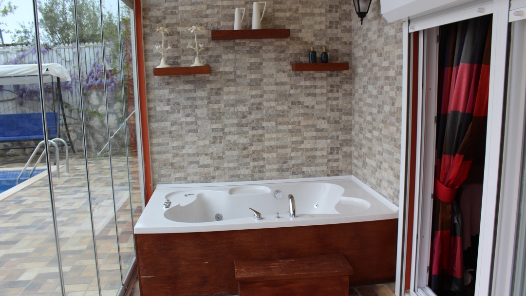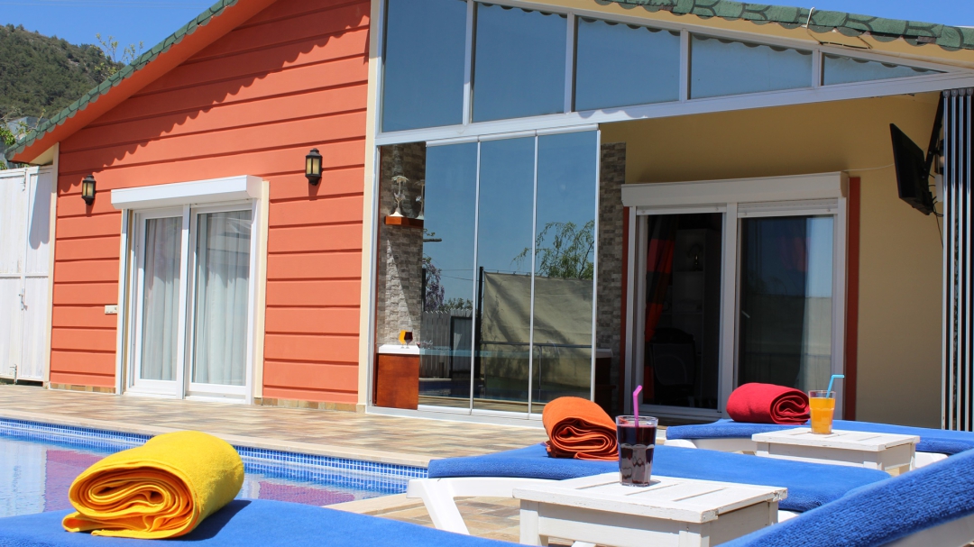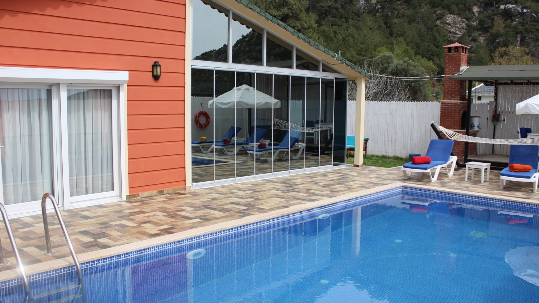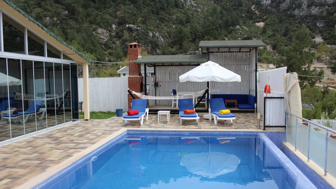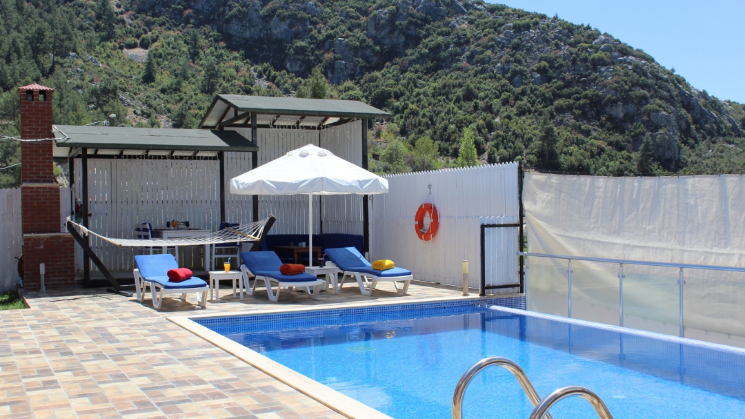 Kalkan, İslamlar mevkiinde konumlanan özel havuzlu villa, 2 kişilik kapasiteye sahiptir. Havuz alanı korunaklı olan yapı, balayı çiftleri için uygun bir seçimdir. Doğa manzarası ve jakuzi misafirlerine sunduğu diğer unsurlardır.