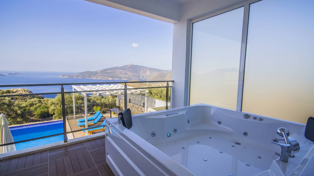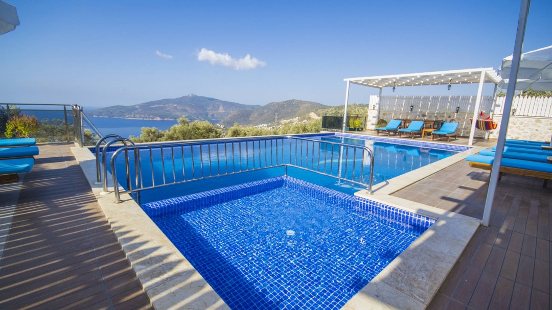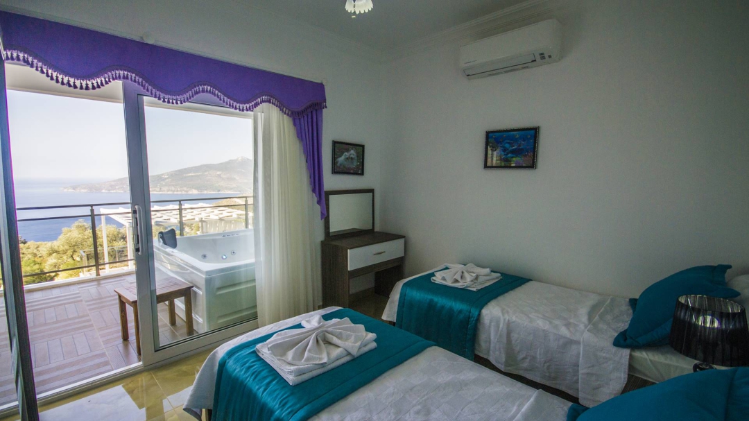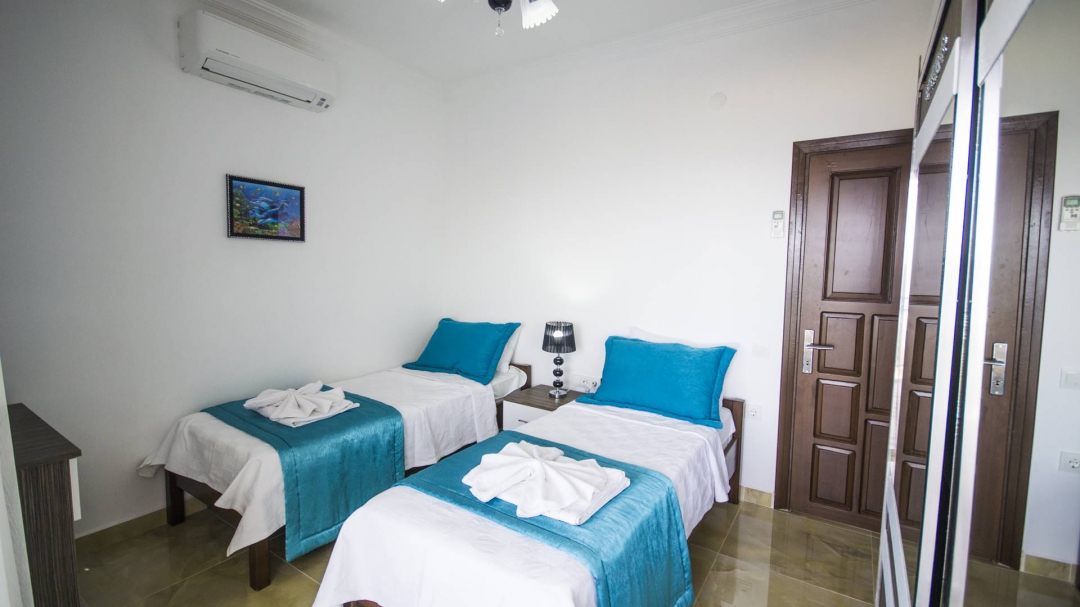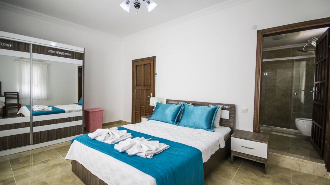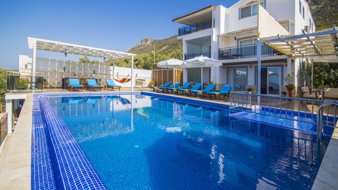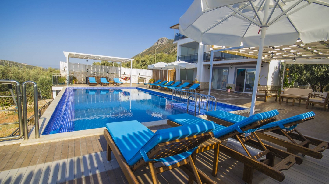 Kördere mevkiinde yer alan yedi yatak odalı villa, deniz manzaralı, geniş aile ve gruplar için uygun ve ekonomik bir seçenektir. Havuz alanı korunaklıdır. Merkeze 3 - 4 kilometre uzaklıktadır. Çocuk havuz, kapalı havuz, jakuzi gibi donanımları vardır. Mütevazi tutlmuş villa 14 kişilik grubun ihtiyaçlarına cevap verebilecek donanıma sahiptir. Odalarının beşi özel banyoludur. İkisinin bonyosu ise odaların hemen dışında yer alır. En suit beş odada çift kişilik yataklar yer alır. Diğer iki odada ise tek kişilik ikişer adet yatak bulunur.  Makyaj masası, elbise dolabı, komodinler, klimalar odaların standart donanımlarıdır. Villanın sahip olduğu jakuzilerden biri ana yatak odasında, diğeri ise genç yatak odasının önünde yer alan balkonda yer alır. Havuz terasında, yemek masası, oturma grubu, barbekü, şezlonglar şemsiyeler gibi dış mekan mobilyaları yer alır. Kapalı havuzda aynı zamanda, havanın serin olduğu dönemlerde aktif edilen havuz ısıtma sistemi vardır.
