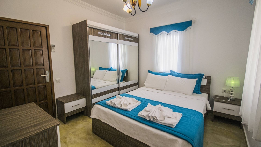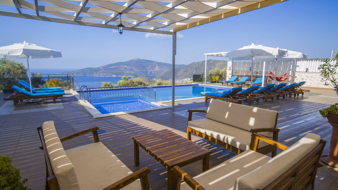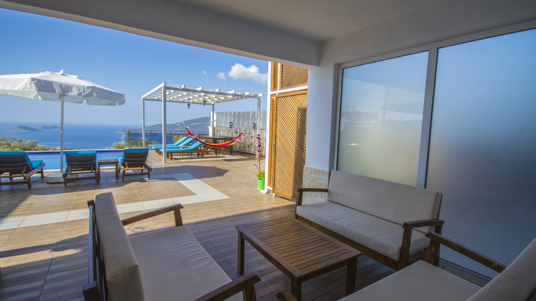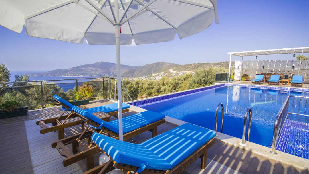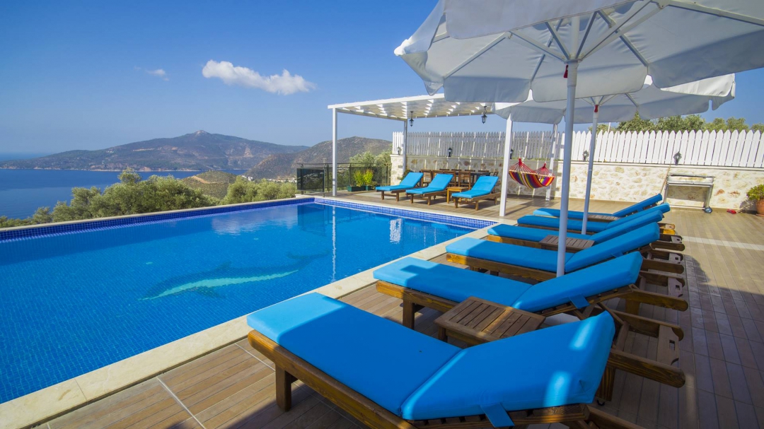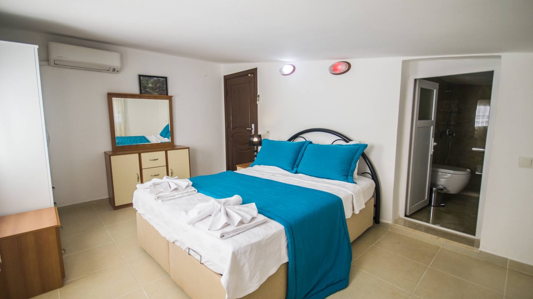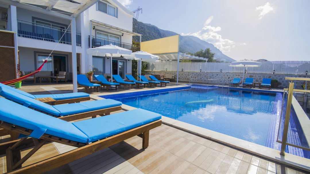 Kördere mevkiinde yer alan yedi yatak odalı villa, deniz manzaralı, geniş aile ve gruplar için uygun ve ekonomik bir seçenektir. Havuz alanı korunaklıdır. Merkeze 3 - 4 kilometre uzaklıktadır. Çocuk havuz, kapalı havuz, jakuzi gibi donanımları vardır. Mütevazi tutlmuş villa 14 kişilik grubun ihtiyaçlarına cevap verebilecek donanıma sahiptir. Odalarının beşi özel banyoludur. İkisinin bonyosu ise odaların hemen dışında yer alır. En suit beş odada çift kişilik yataklar yer alır. Diğer iki odada ise tek kişilik ikişer adet yatak bulunur.  Makyaj masası, elbise dolabı, komodinler, klimalar odaların standart donanımlarıdır. Villanın sahip olduğu jakuzilerden biri ana yatak odasında, diğeri ise genç yatak odasının önünde yer alan balkonda yer alır. Havuz terasında, yemek masası, oturma grubu, barbekü, şezlonglar şemsiyeler gibi dış mekan mobilyaları yer alır. Kapalı havuzda aynı zamanda, havanın serin olduğu dönemlerde aktif edilen havuz ısıtma sistemi vardır.