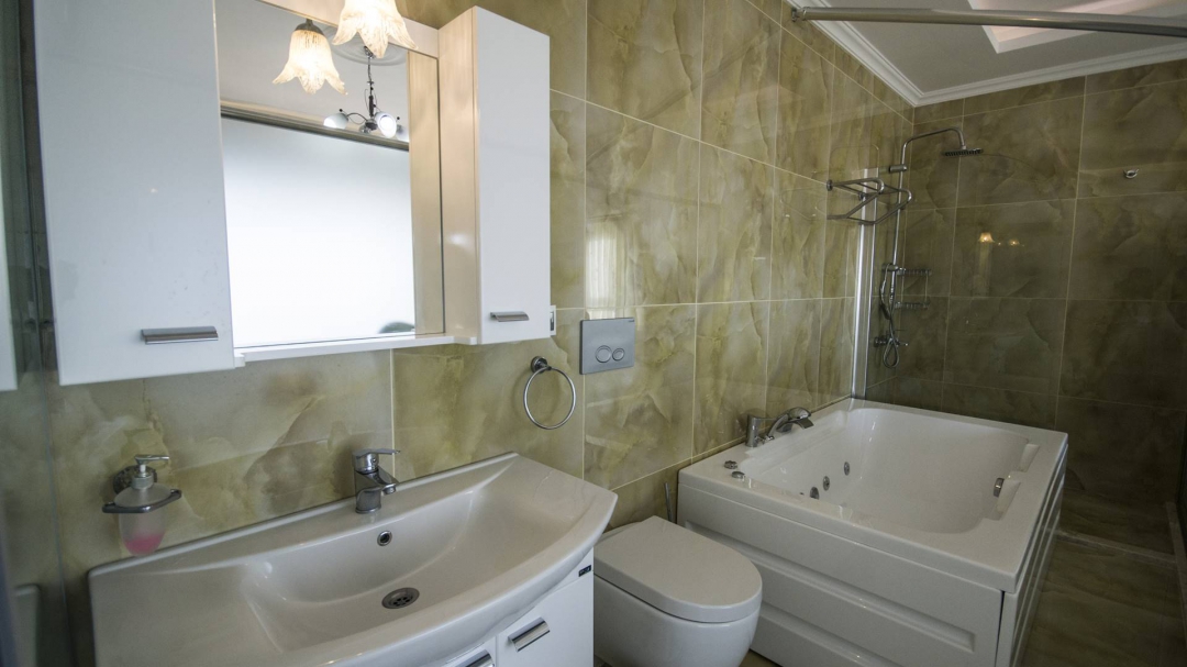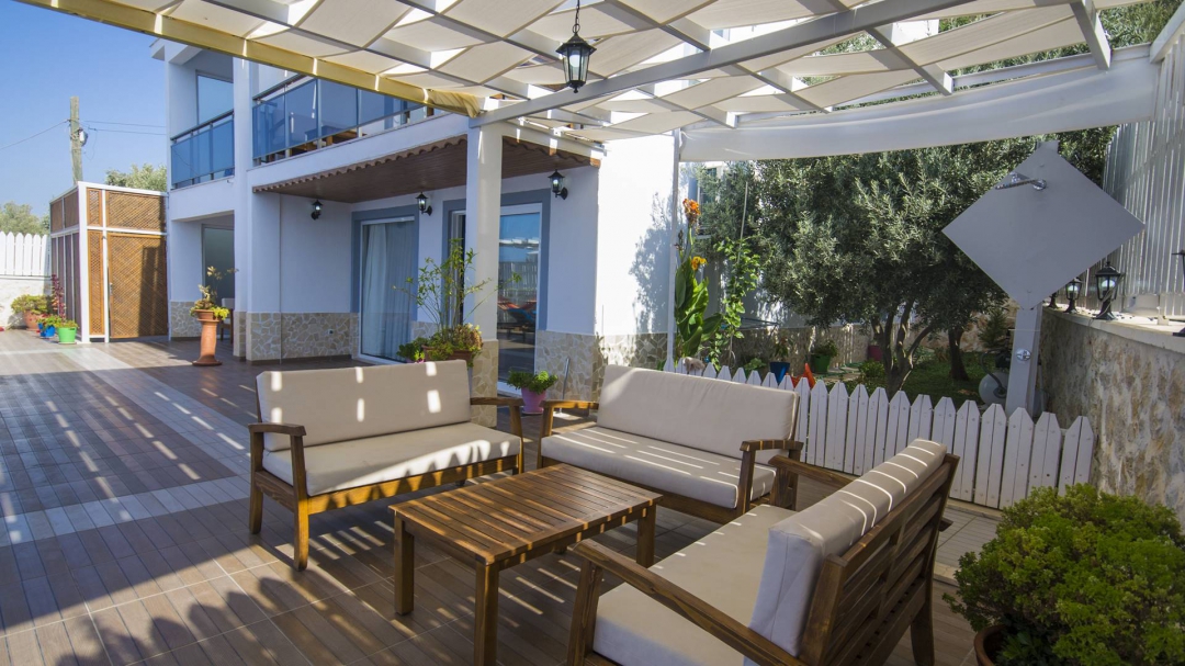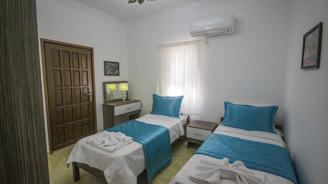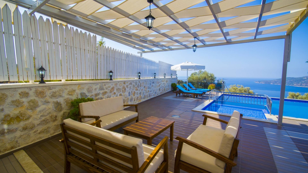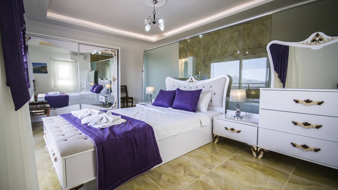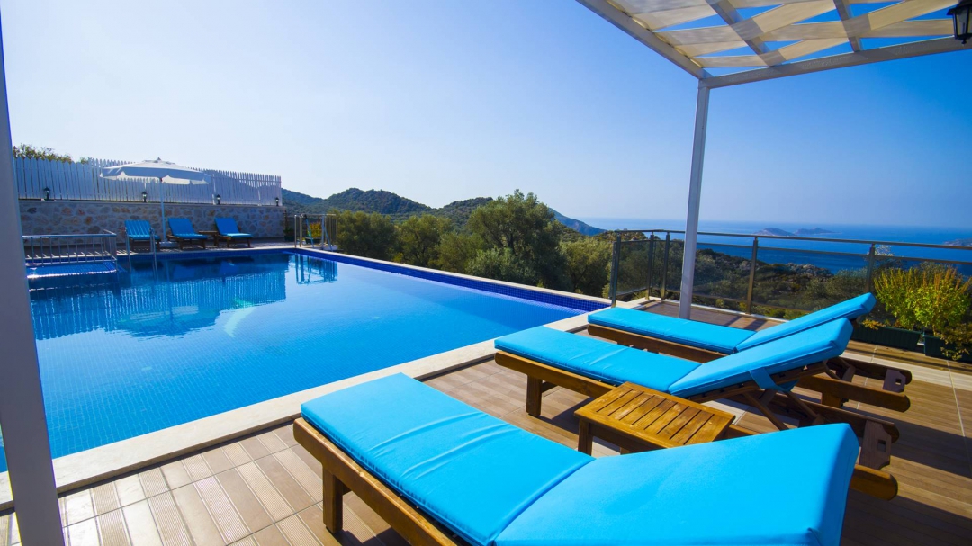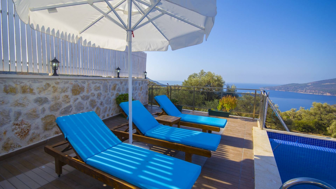 Kördere mevkiinde yer alan yedi yatak odalı villa, deniz manzaralı, geniş aile ve gruplar için uygun ve ekonomik bir seçenektir. Havuz alanı korunaklıdır. Merkeze 3 - 4 kilometre uzaklıktadır. Çocuk havuz, kapalı havuz, jakuzi gibi donanımları vardır. Mütevazi tutlmuş villa 14 kişilik grubun ihtiyaçlarına cevap verebilecek donanıma sahiptir. Odalarının beşi özel banyoludur. İkisinin bonyosu ise odaların hemen dışında yer alır. En suit beş odada çift kişilik yataklar yer alır. Diğer iki odada ise tek kişilik ikişer adet yatak bulunur.  Makyaj masası, elbise dolabı, komodinler, klimalar odaların standart donanımlarıdır. Villanın sahip olduğu jakuzilerden biri ana yatak odasında, diğeri ise genç yatak odasının önünde yer alan balkonda yer alır. Havuz terasında, yemek masası, oturma grubu, barbekü, şezlonglar şemsiyeler gibi dış mekan mobilyaları yer alır. Kapalı havuzda aynı zamanda, havanın serin olduğu dönemlerde aktif edilen havuz ısıtma sistemi vardır.