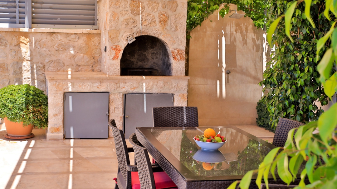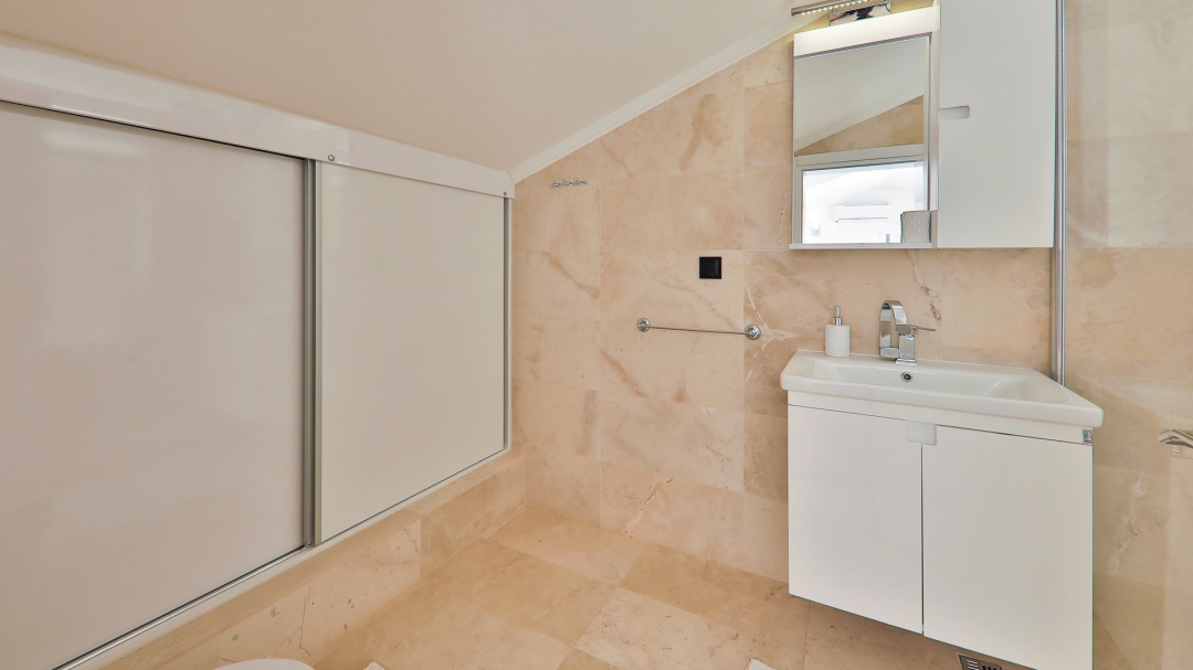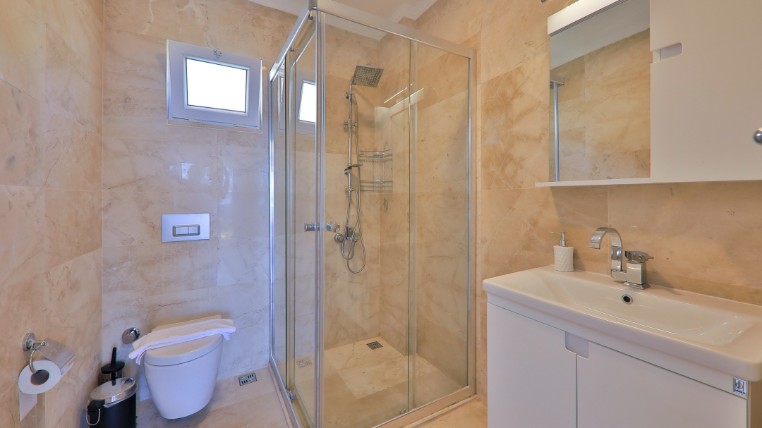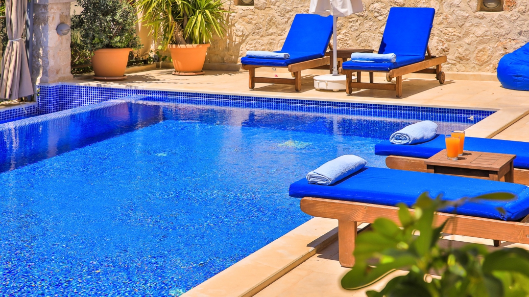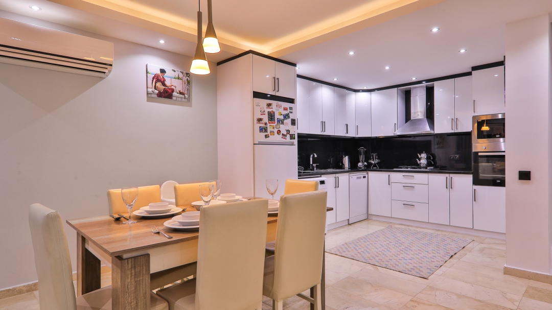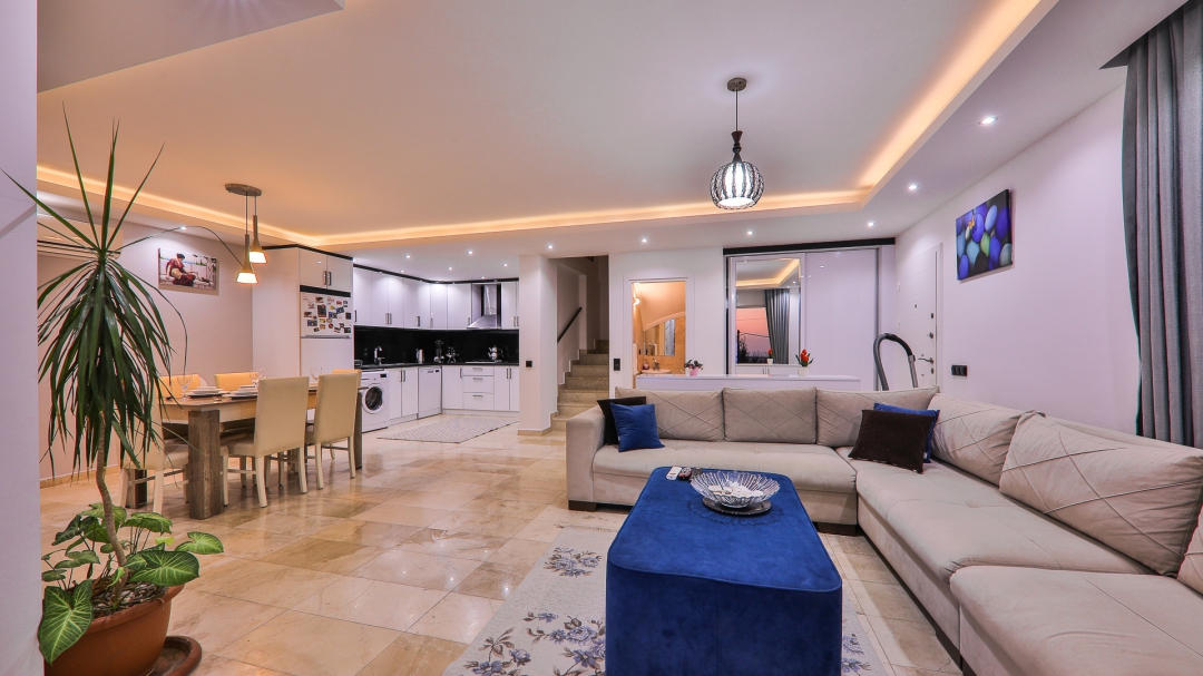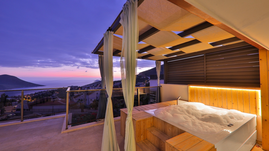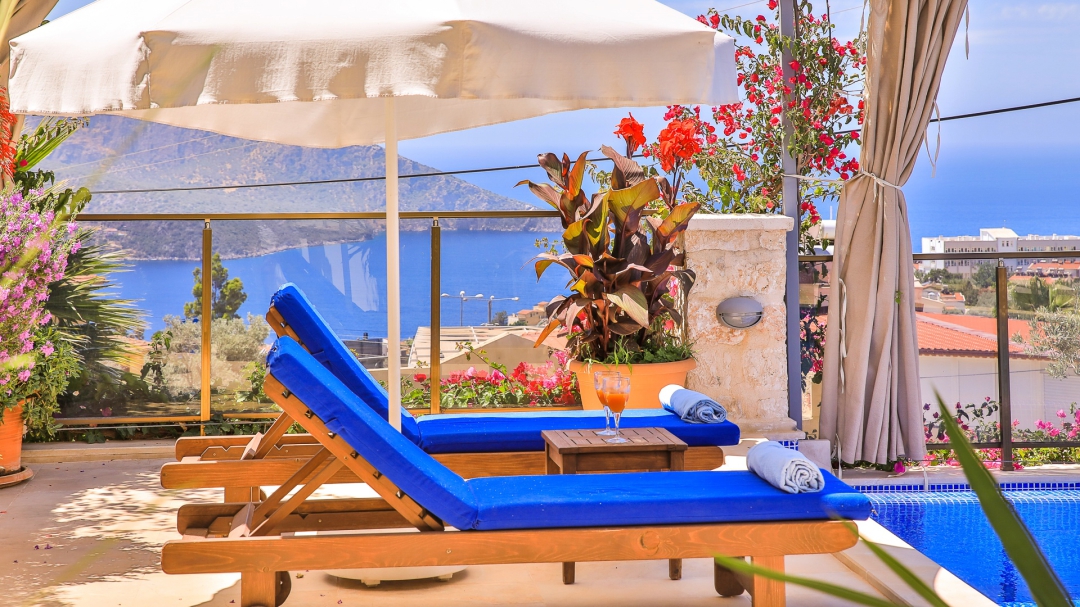 3 adet en suit odasının ikisinde çift kişilik yatak bulunan villa, Kalkan merkeze araç ile 3-5 dakikalık sürüş mesafesi uzaklıktadır. Havuz alanı yabancı gözlerden izole hale getirilmiştir. Aynı zamanda çocuklar için çocuk havuzu vardır.
