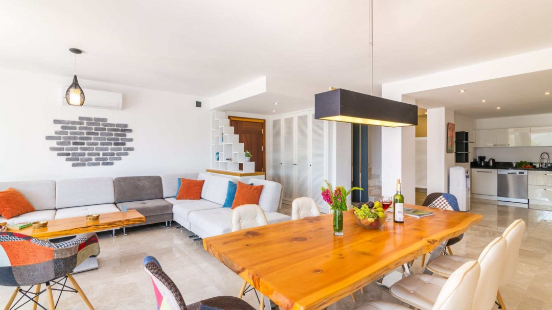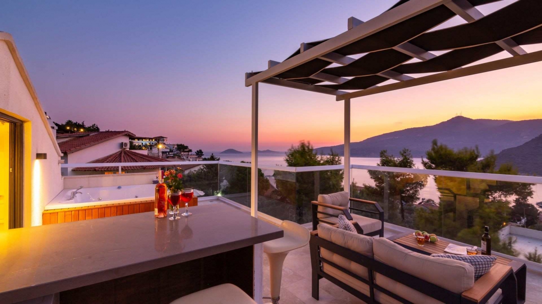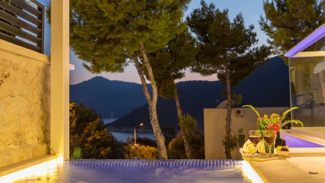 Kalkan, Kalamar mevkiinde konumlandırılmış dört suit yatak odalı, sekiz kişi kapasitelidir. Villa 3 kattan oluşmaktadır. Şık tasarımı ve modern yapısı ile konforlu bir tatil imkanı sunmaktadır. Geniş aileler ve kalabalık arkadaş grupları için unutulmaz bir tatil imkanı sunmaktadır.