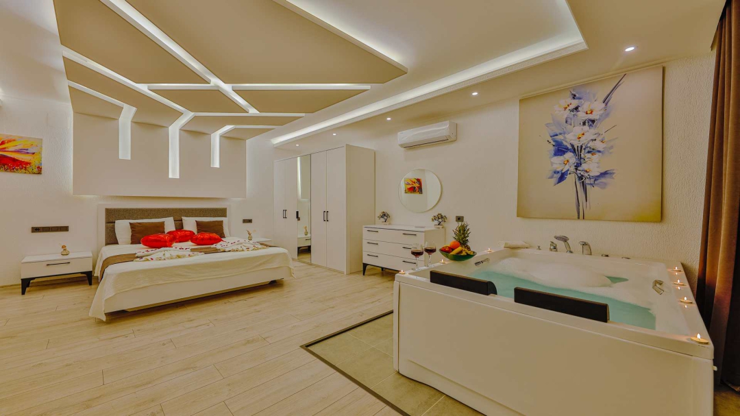 İslamlar bölgesinde, balayı konseptinde yapılmış bir bina olup, havuz alanı korunaklıdır. Yatak odasında jakuzisi mevcuttur.  Villa, 2 kişlik konaklama imkanı sunan, tek yatak odalı tatil evi seçeneğidir.