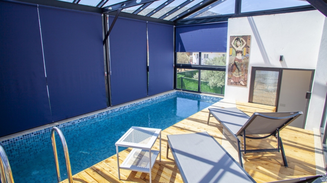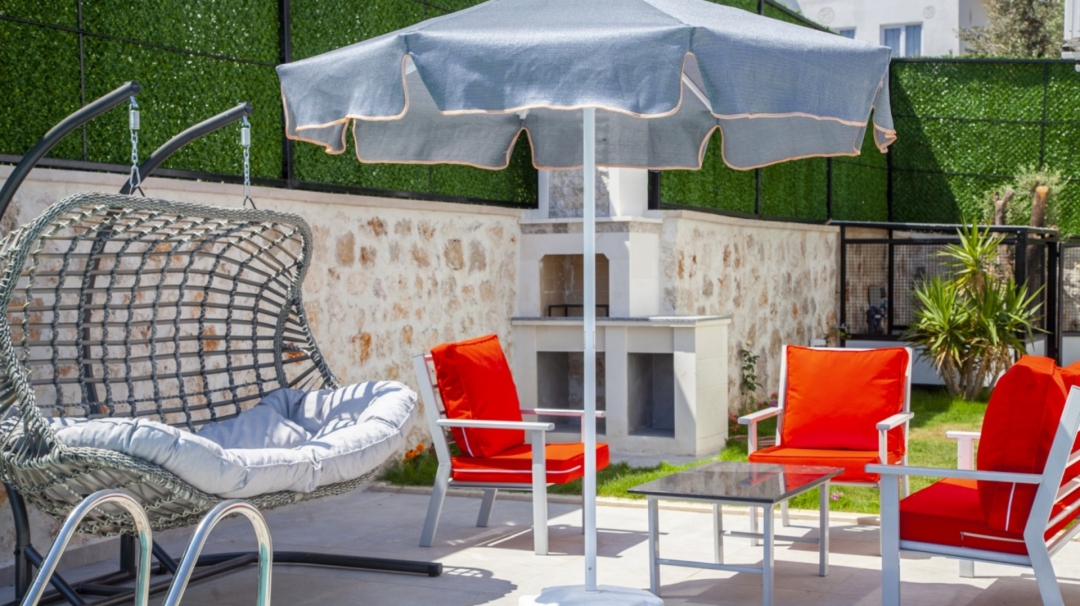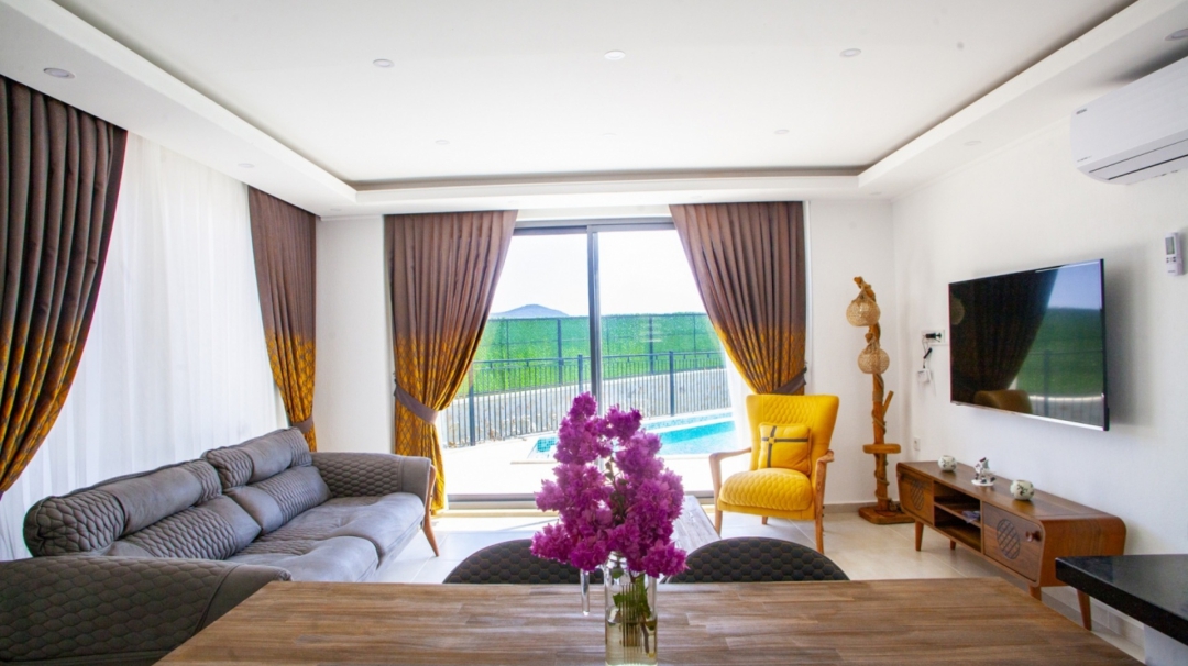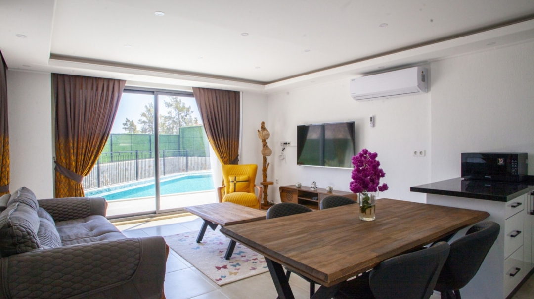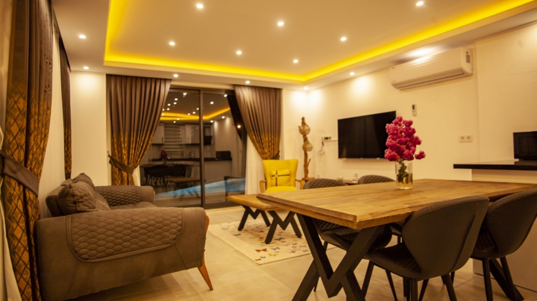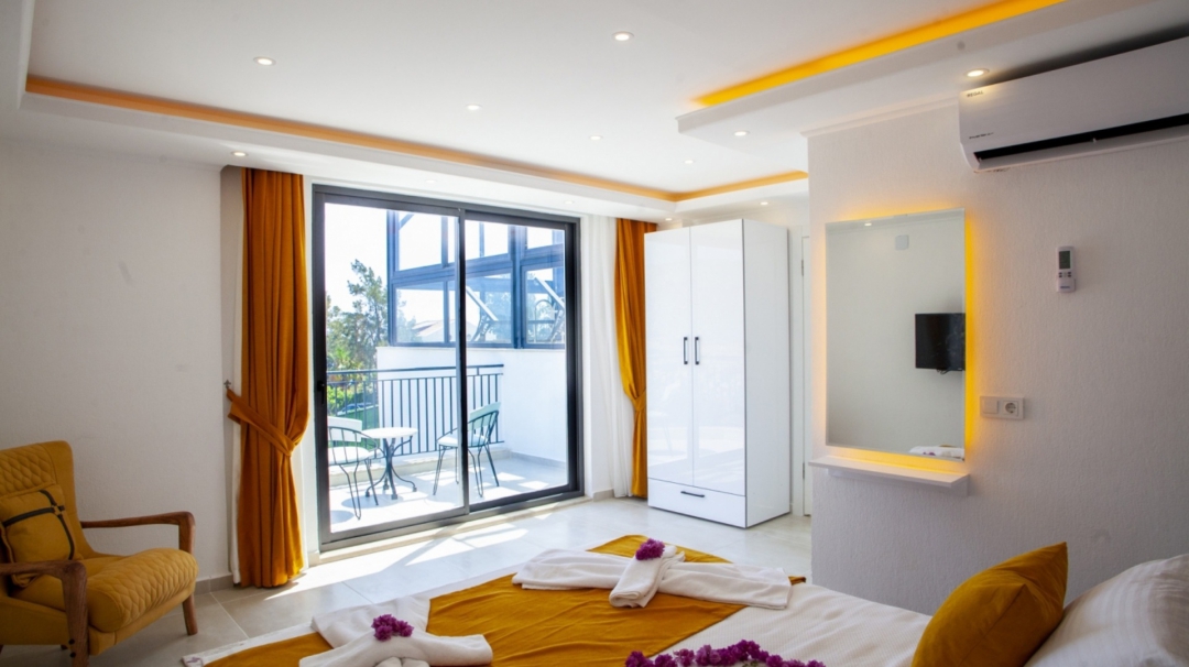 Villa, Kalkan merkezde yer alır. 4'lü grup villadan birisidir. Zemin katında havuz terası, çatı katında ise ısıtmalı havuzu yer alır. 1 kasımdan 1 ekime havuz ısıtma ücreti kiralama ücretine dahildir. 2 odalı yapı beklentilerinizi karşılayacak şekilde ve rahat bir tatil deneyimi sunmak amaçlı dizayn edilmiştir.