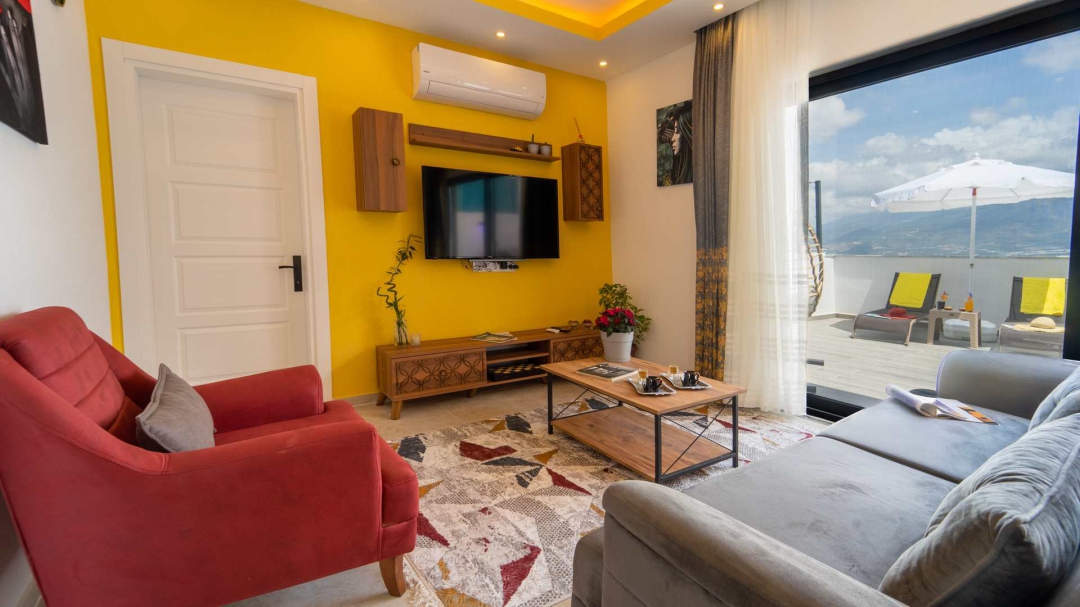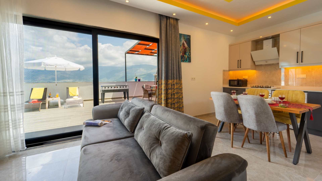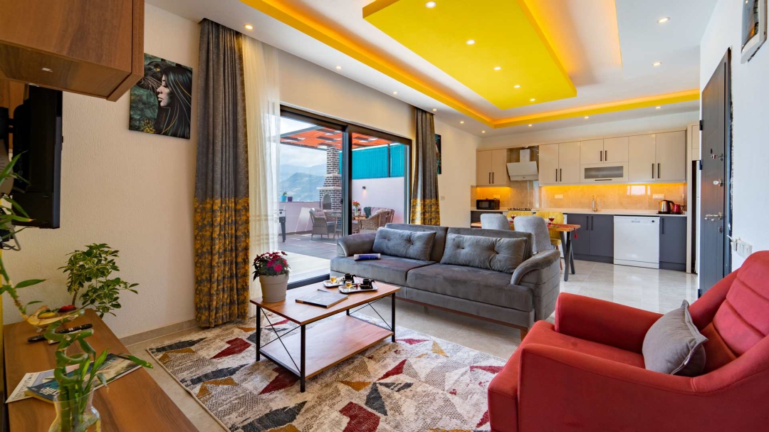 NOT : Villa iki katlı bir binanın üst katında yer almaktadır.Alt katta ise villa sahibi kendisi yaşamaktadır.Giriş ve çıkışlar da dahil iki tarafta birbirinden bağımsızdır.