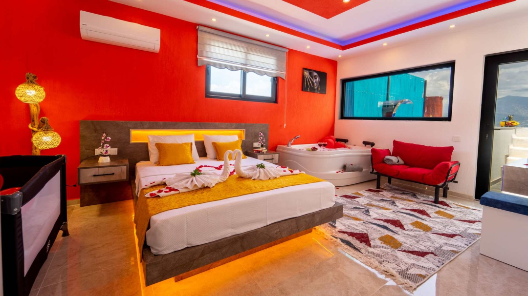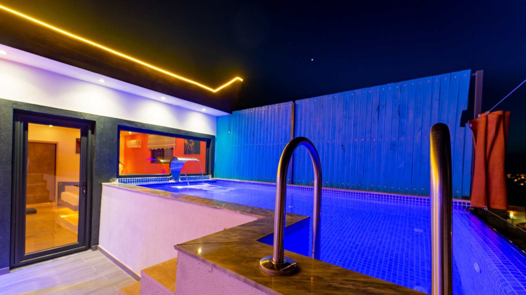 Kalkan, Yeşilköy mevkiinde doğa içerisinde yer alan tek yatak odalı jakuzili kiralık balayı villasıdır. Havuz alanı korunaklı olup dışarıdan gözükmemektedir. Yatak odasında bir adet bebek yatağı bulunmaktadır. Balayı çiftleri ve tek çocuklu aileler için ideal seçimlerden bir tanesi olacaktır.
