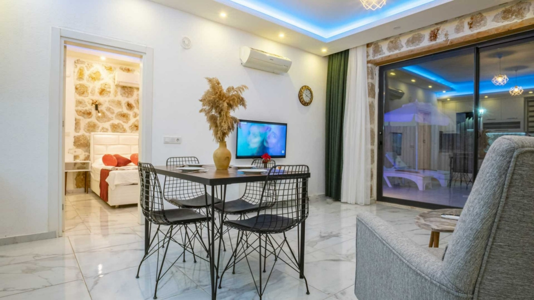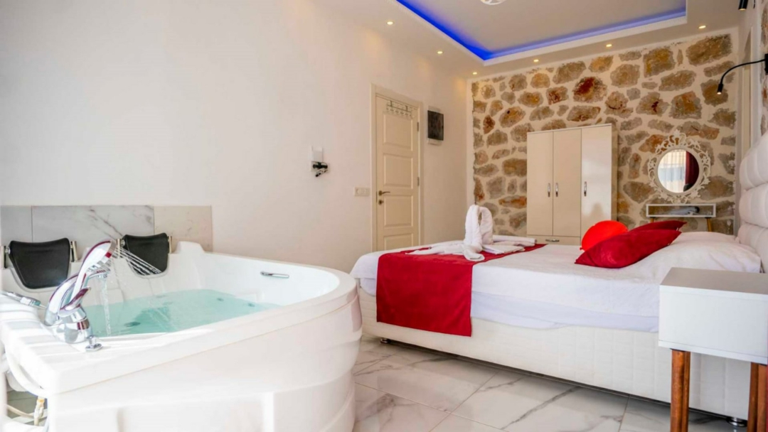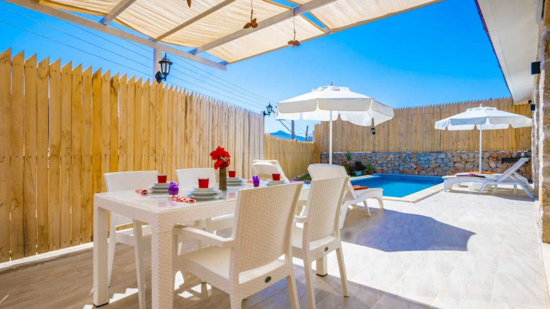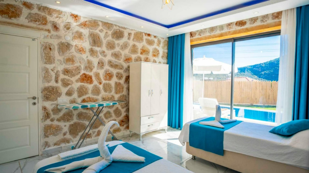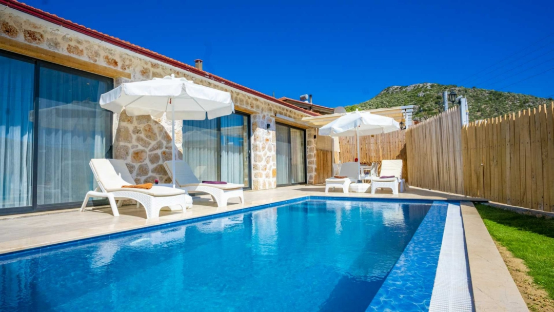 Villa,Kalkan'ın Ulugöl mevkiine konumlandırımış olup, 4 kişilik konaklama kapasitesine sahiptir. Siz de şehrin gürültüsünden uzak da bir yerde tatil istiyorsanız balayı çifleri ve çekirdek aileler için ideal bir seçim olacaktır.
