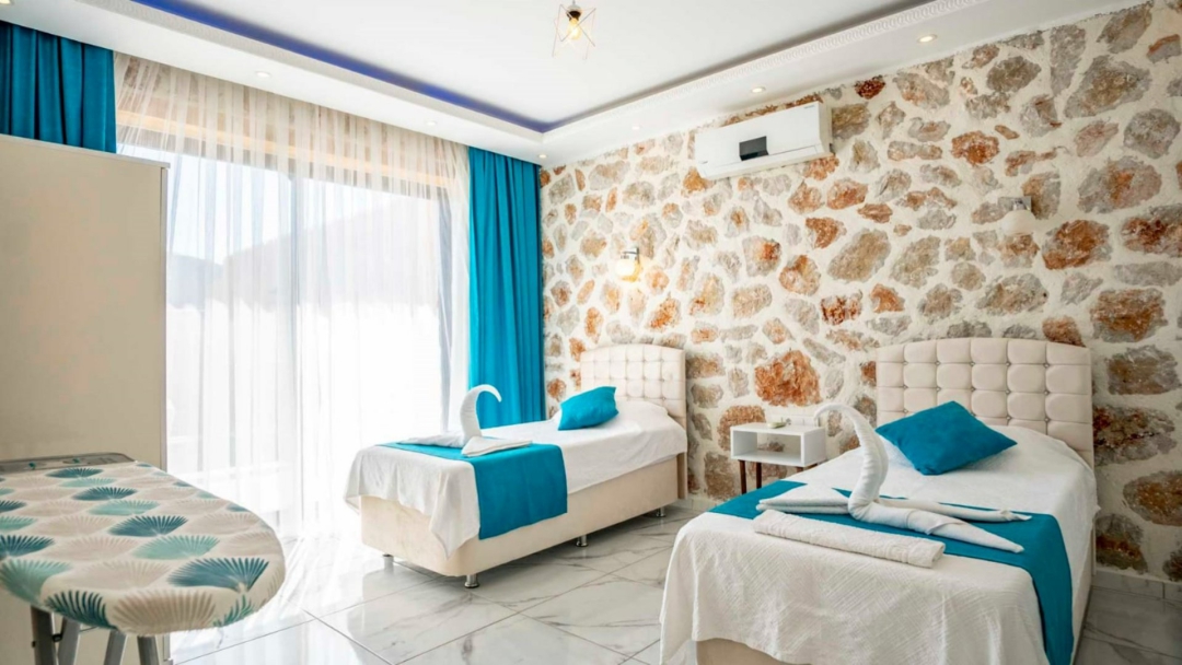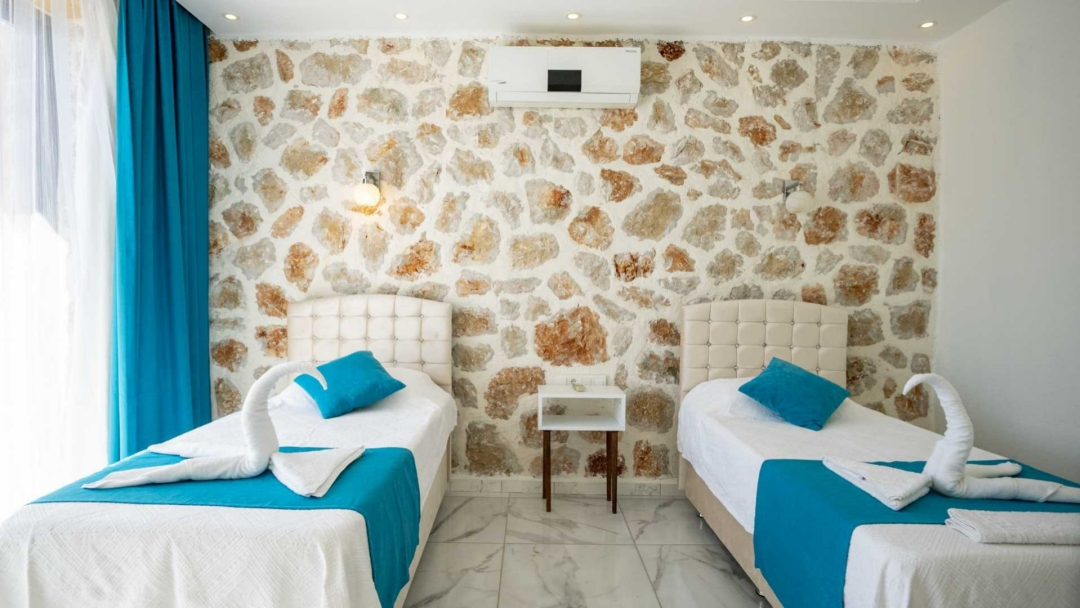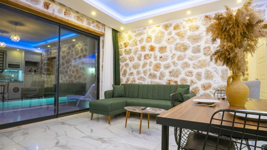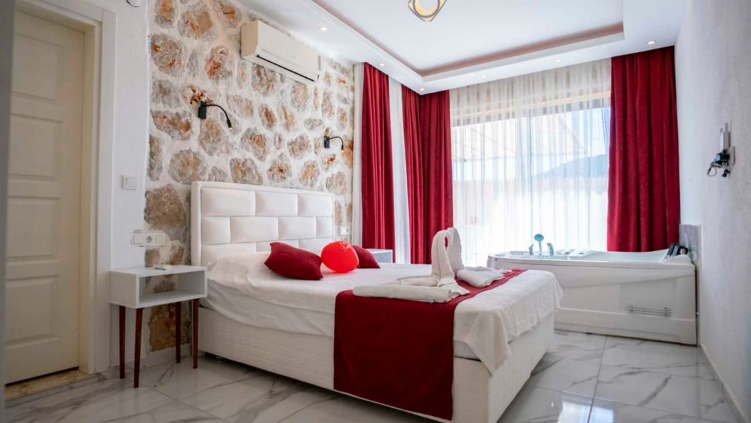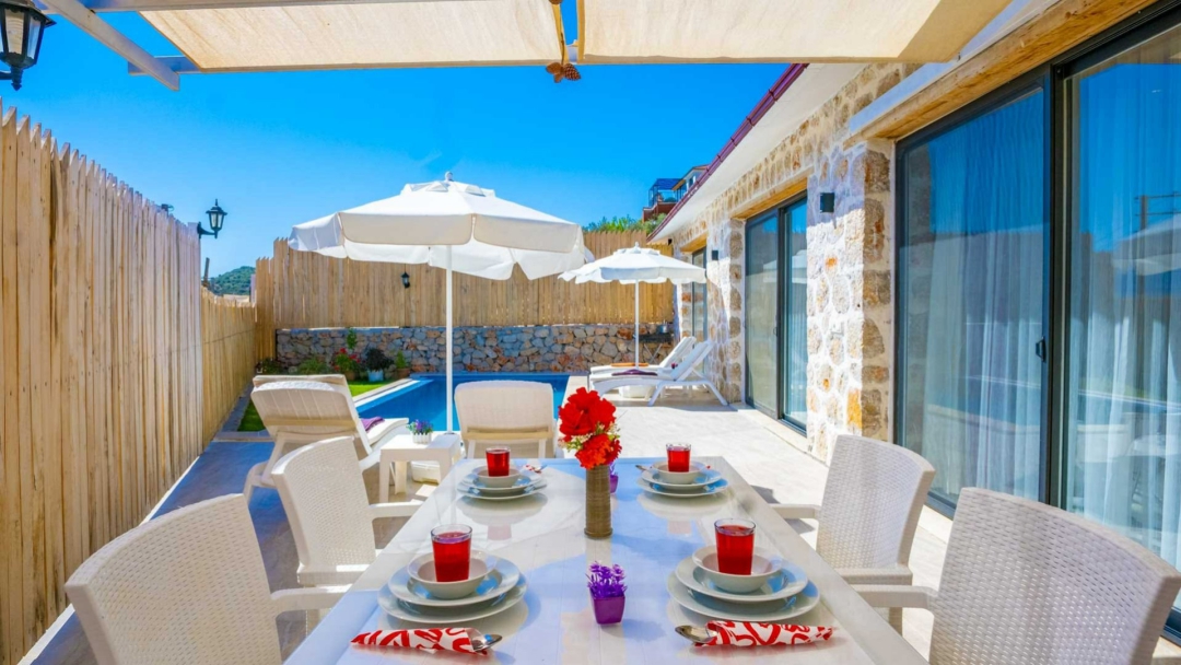 Villa,Kalkan'ın Ulugöl mevkiine konumlandırımış olup, 4 kişilik konaklama kapasitesine sahiptir. Siz de şehrin gürültüsünden uzak da bir yerde tatil istiyorsanız balayı çifleri ve çekirdek aileler için ideal bir seçim olacaktır.