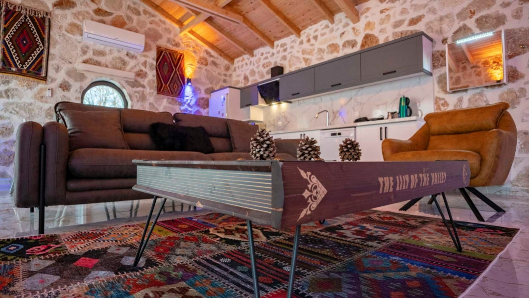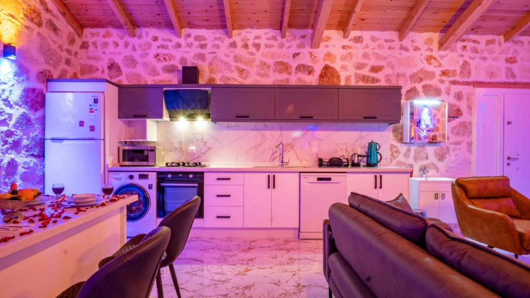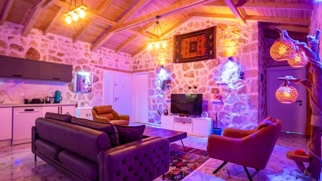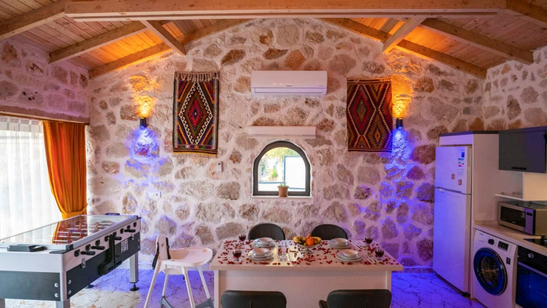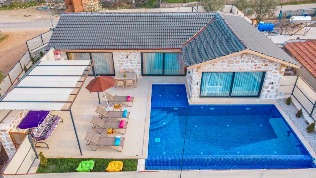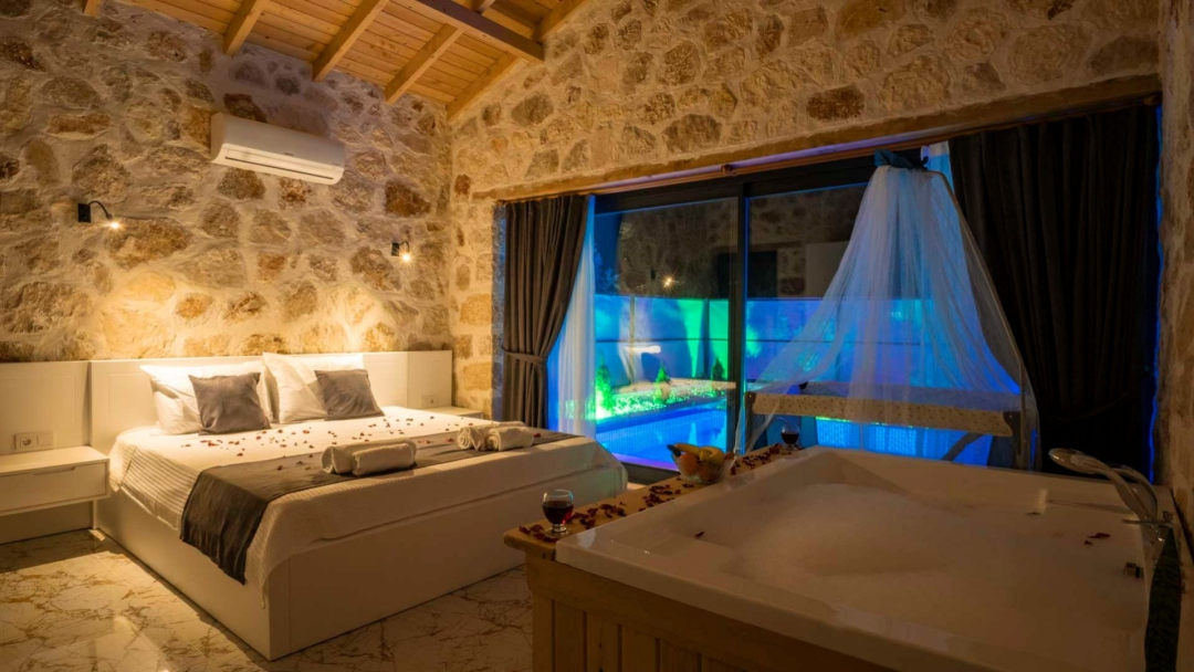 2 yatak odalı Kalkan yakınlarındaki Sarıbelen köyünde yer alır. Taş mimari yapının, havuz alanı korunaklıdır. Ana yatak odasında jakuzi yer alır. Balayı çiftleri ve çekirdek aileler için uygundur. Kalkan merkeze 20 dakikalık sürüş mesafesindedir.