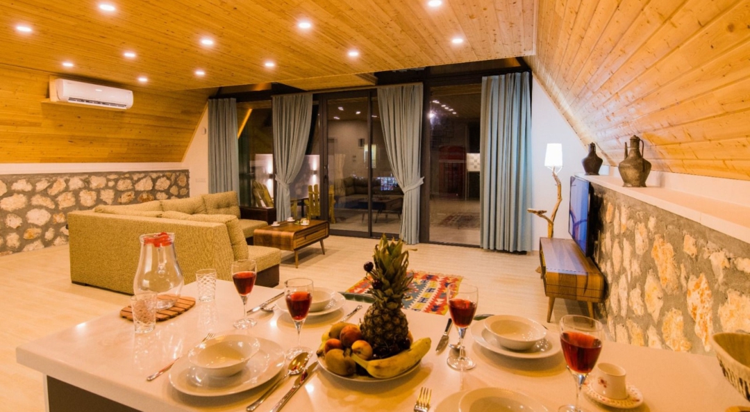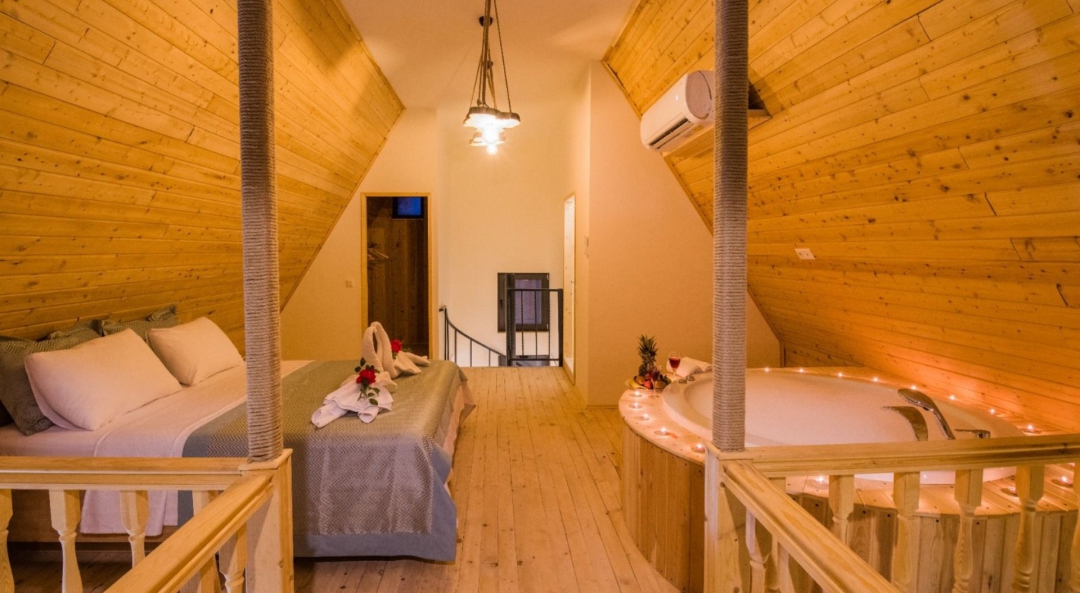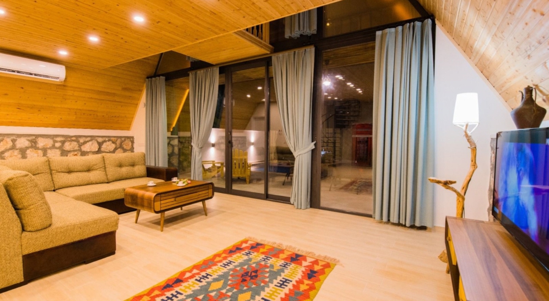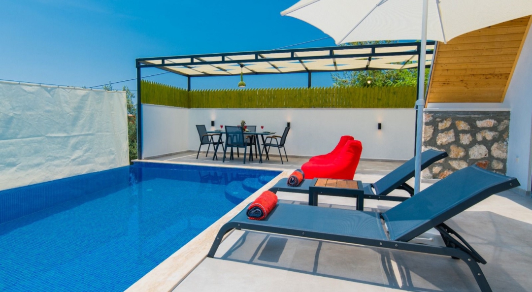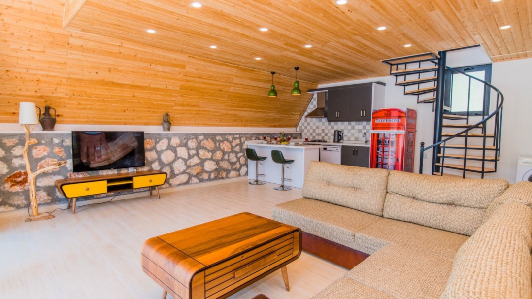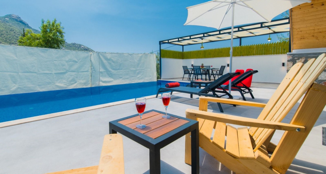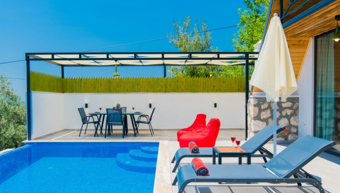 Ahşap bungalov tarzındaki yapı tek yatak odalıdır. İslamlar köy yolu üzerinde yer alır. Havuz alanı korunaklıdır. İki kişilik seçenek balayı konseptindedir. Kalkan merkeze yaklaşık 5 kilometre uzaklıktadır. Doğa içinde yer alır. Zemin kat; salon, mutfak ve havuz terasından oluşur. Yatak odası asma kat şeklindedir. Yatak odasında jakuzi de mevcuttur.