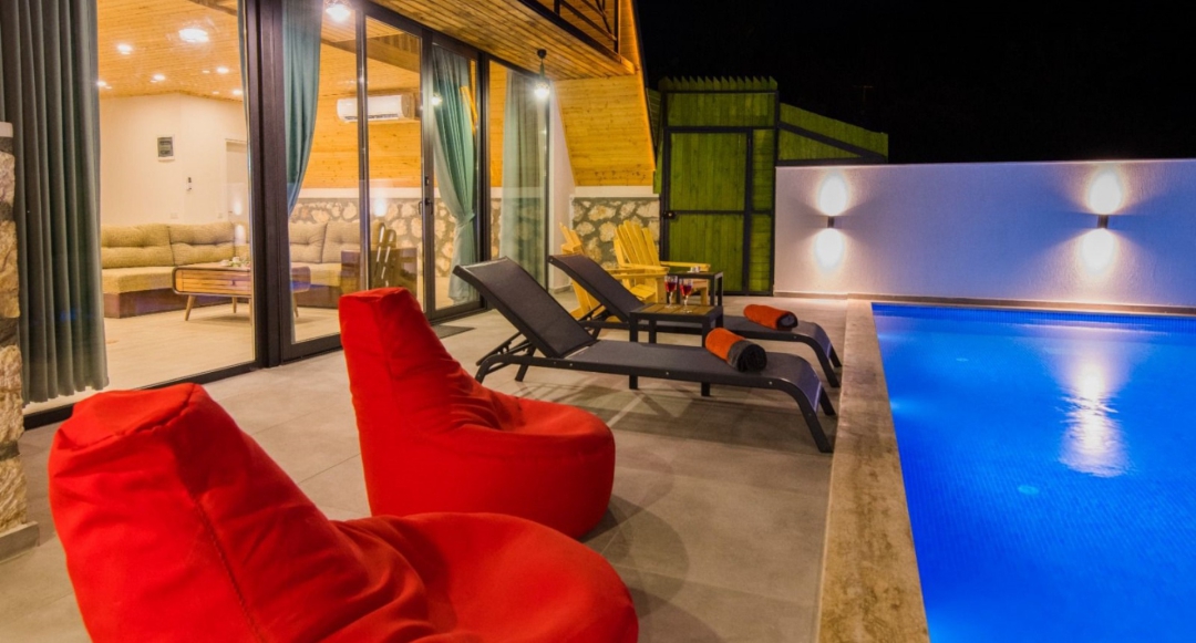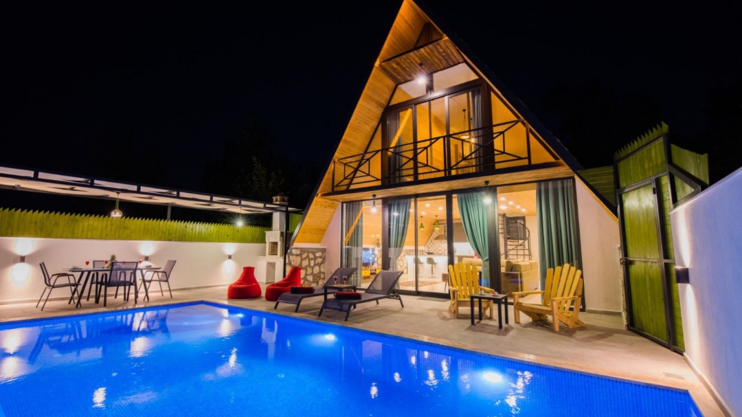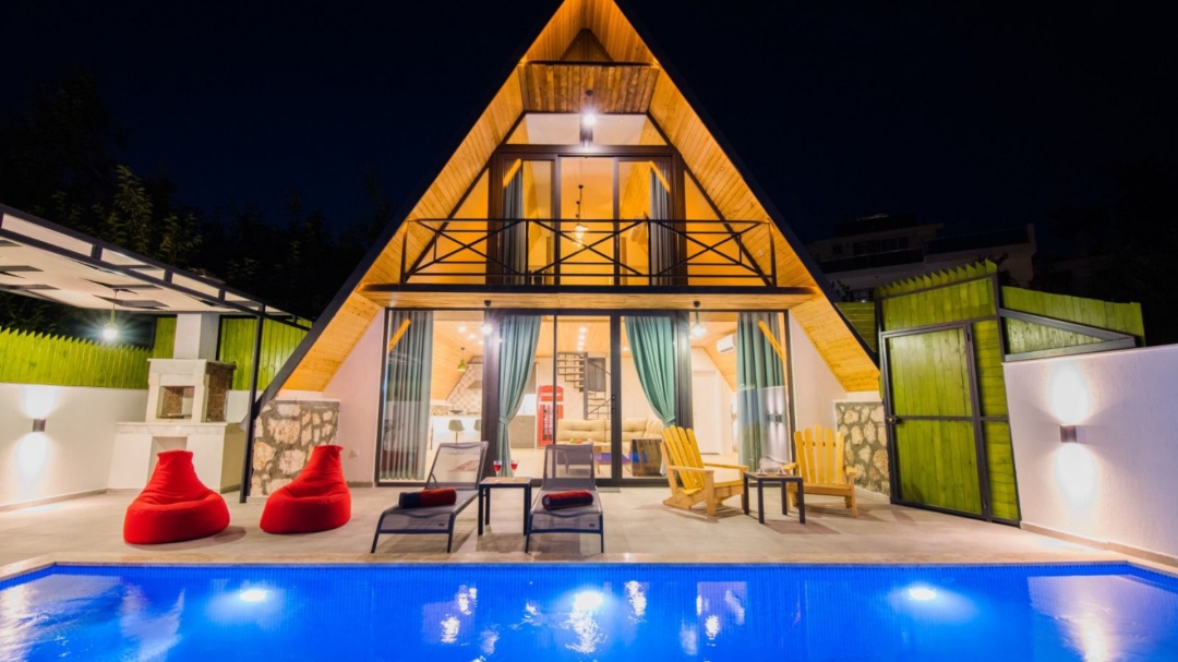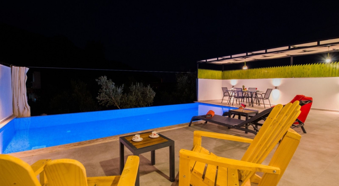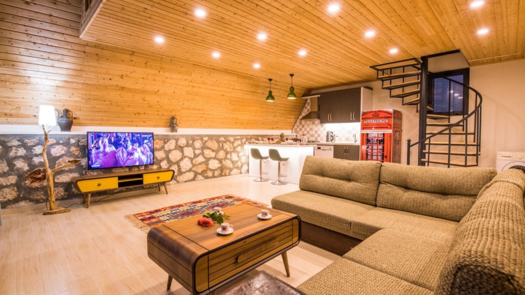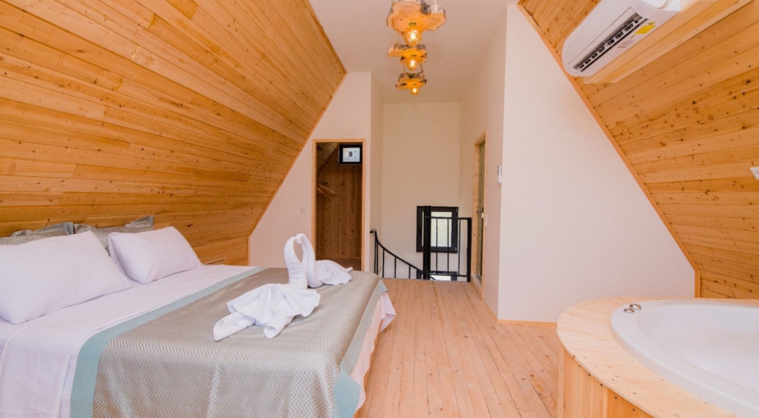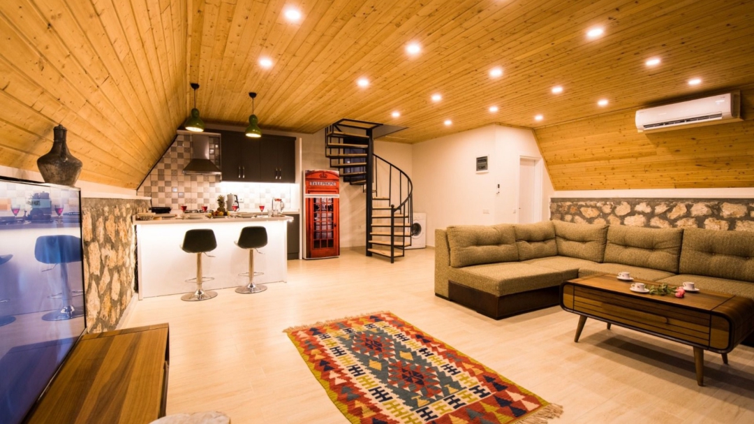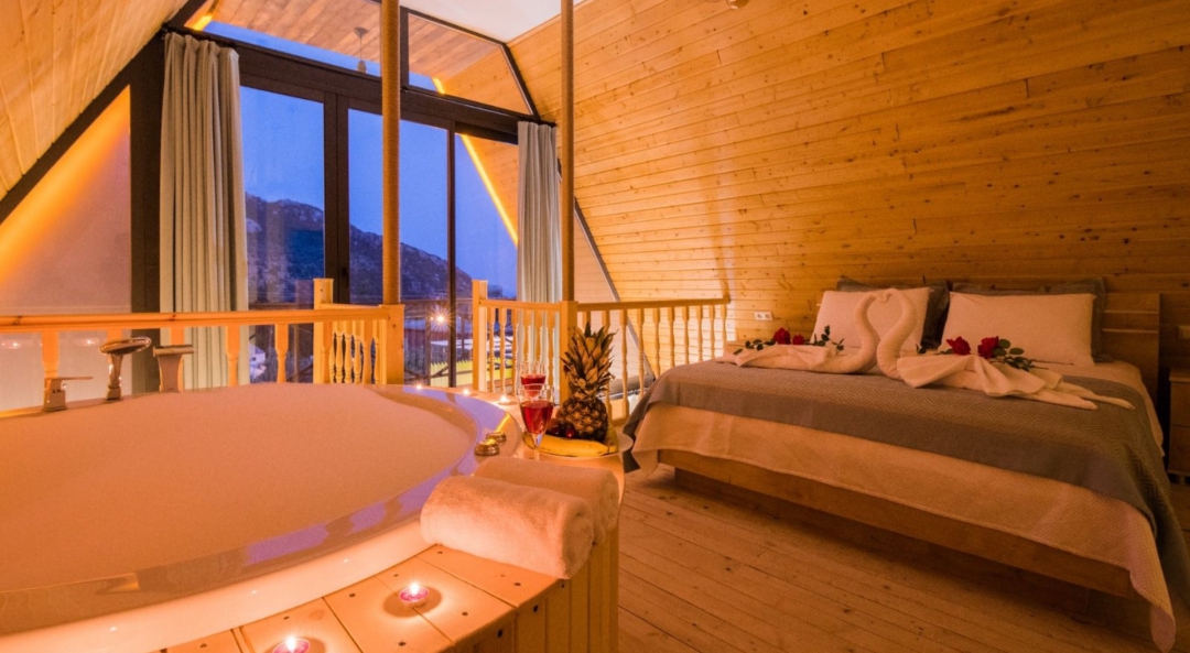Ahşap bungalov tarzındaki yapı tek yatak odalıdır. İslamlar köy yolu üzerinde yer alır. Havuz alanı korunaklıdır. İki kişilik seçenek balayı konseptindedir. Kalkan merkeze yaklaşık 5 kilometre uzaklıktadır. Doğa içinde yer alır. Zemin kat; salon, mutfak ve havuz terasından oluşur. Yatak odası asma kat şeklindedir. Yatak odasında jakuzi de mevcuttur.
