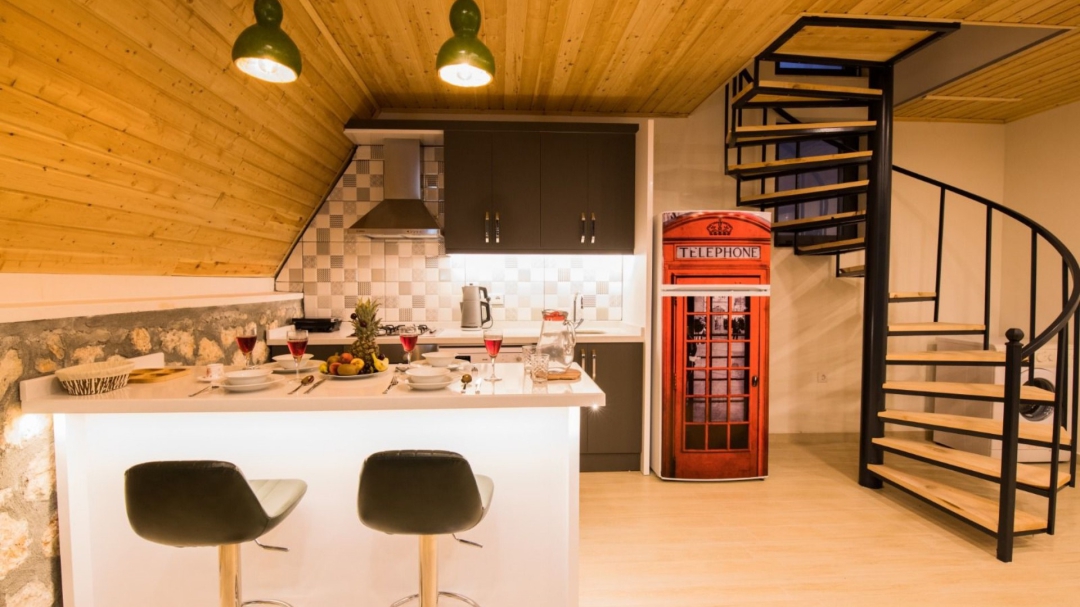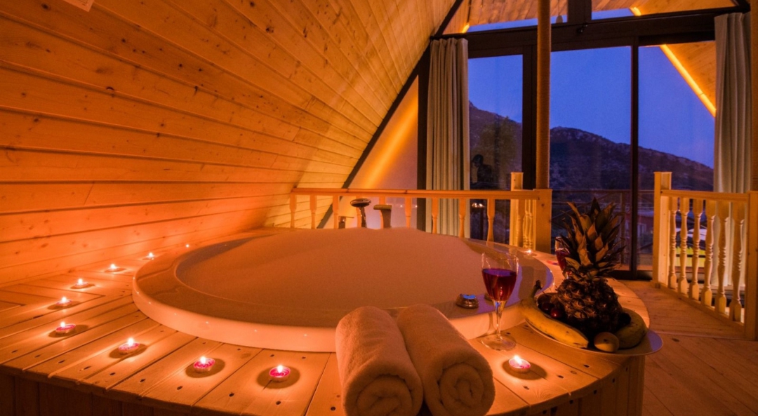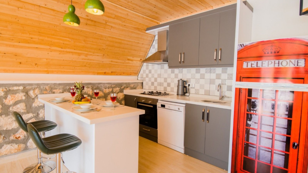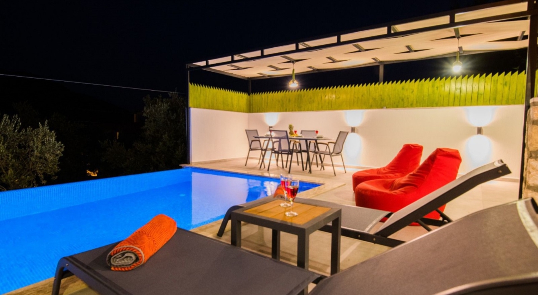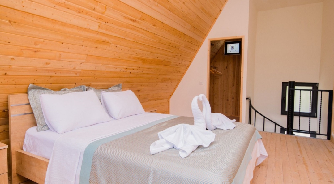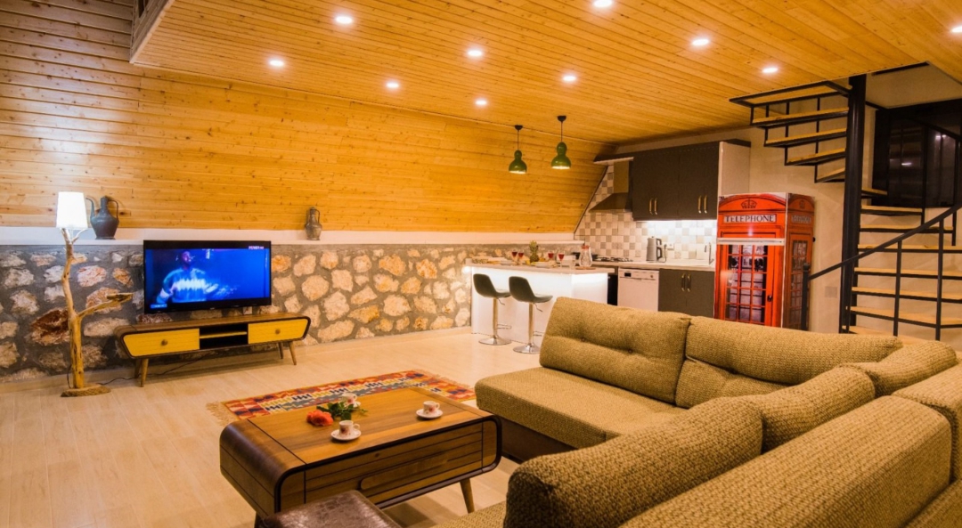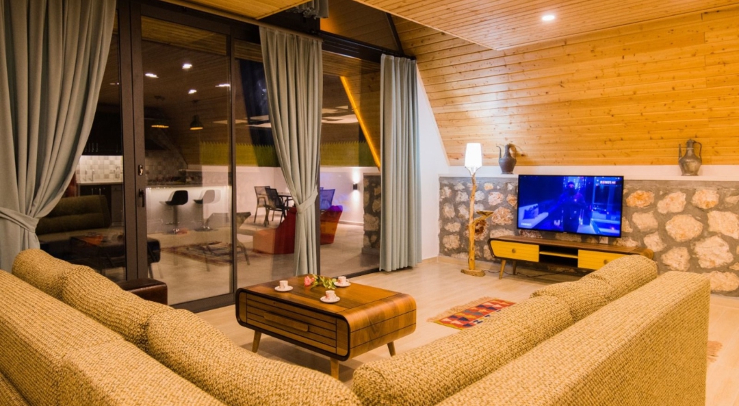 Ahşap bungalov tarzındaki yapı tek yatak odalıdır. İslamlar köy yolu üzerinde yer alır. Havuz alanı korunaklıdır. İki kişilik seçenek balayı konseptindedir. Kalkan merkeze yaklaşık 5 kilometre uzaklıktadır. Doğa içinde yer alır. Zemin kat; salon, mutfak ve havuz terasından oluşur. Yatak odası asma kat şeklindedir. Yatak odasında jakuzi de mevcuttur.